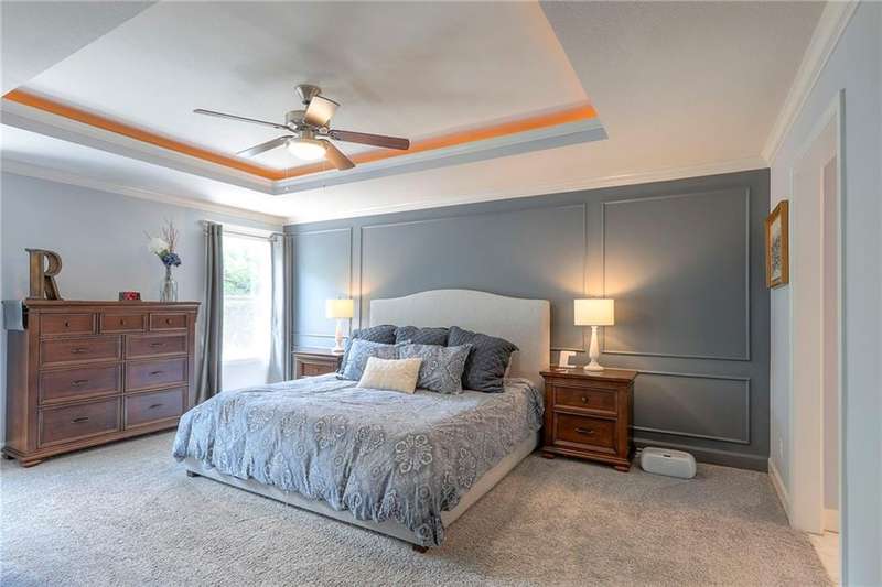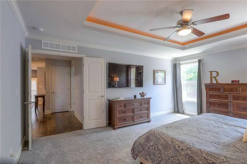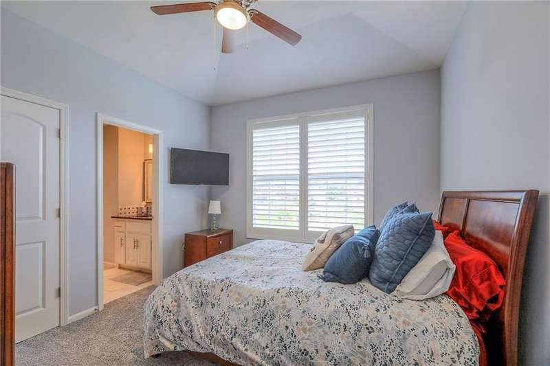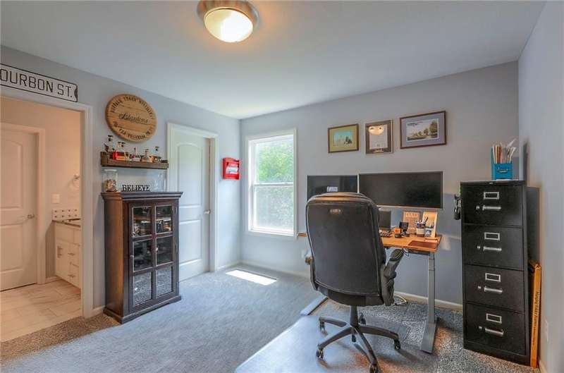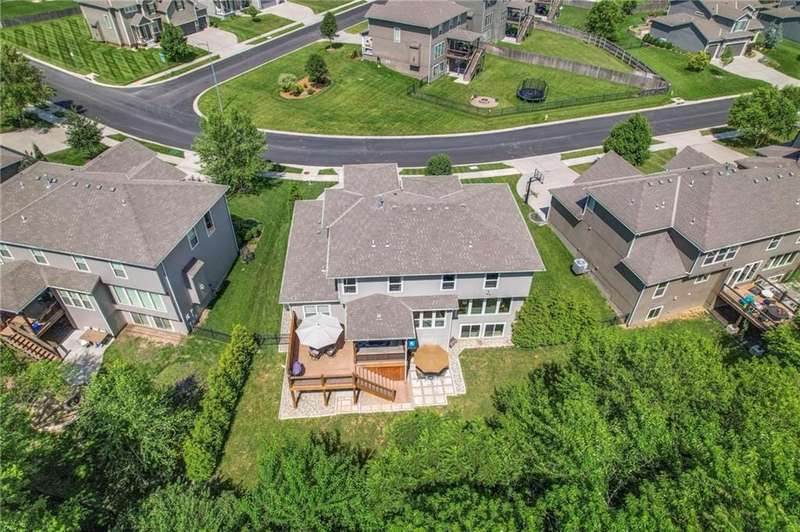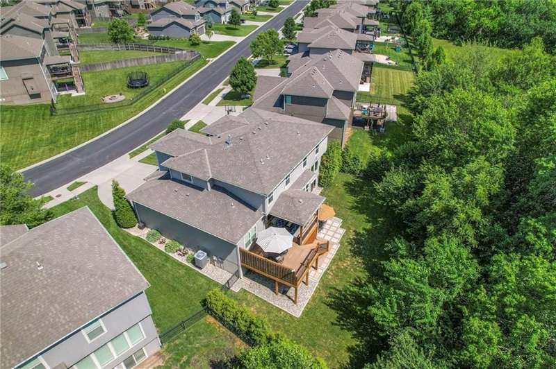 Super 2 story home located in a nice community while also offering a location with privacy. The open layout is ready for new owners to move right in. The Great Room features tilework around the gas fireplace along with rich hardwoods that continue into dining, kitchen and breakfast areas. The kitchen is a dream with all stainless appliances staying including a wine refrigerator. Large open island for prep and extra seating. Sizable walk-in pantry steps away. In a convenient yet private area behind the kitchen area is the main floor bedroom. Right next to it is a fully accessible bath with walk-in shower.The breakfast room looks out over the private backyard. 4 ft iron fencing allows you to enjoy the greenspace behind. A huge deck offers plenty of space for entertaining or just relaxing! The L shape allows for a stairway to the yard. Owners even had concrete poured underneath the deck for a super, enclosed storage area.Upstairs features 4 bedrooms. Two are connected by a full bath with shower/tub. They each have walk-in closets. The third private bedroom upstairs has it's own bath with shower. The main bedroom is spacious and the ensuite features tiled shower, free-standing tub, double vanities and a phenomenal walk-in closet. The laundry room is accessible from this bath or right off the hall. A spacious hardwood hallway leads to all of the upstairs rooms.The basement is unfinished and has great storage area. There are large daylight windows in place if someone wanted to add more finished space to this nice home.