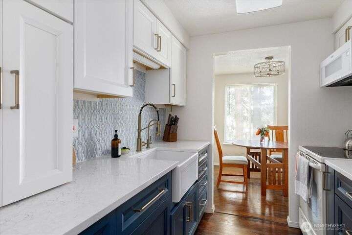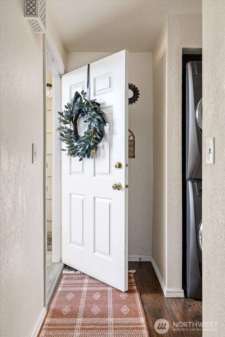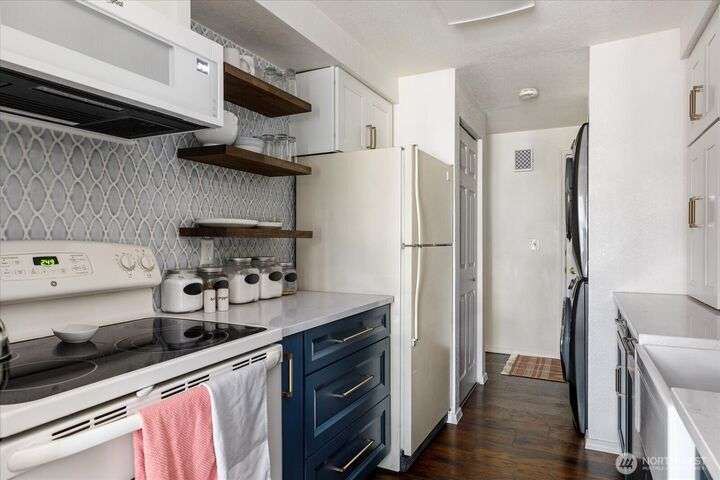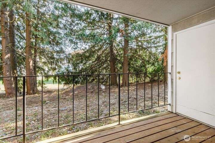 Cute as a button! This condo is VA and Conventional Loan approved! Look at that kitchen! And guess what, the dishwasher is hiding as it blends with the cabinets. Kitchen remodeled in 2020 and perfectly maintained since. This condo feels roomy with good bedroom sizes and walk in closet in the primary. Tons of storage with closets as well as locked storage on the deck. Trees give this unit natural privacy while still being across the street from Haggen, 1 block to Walmart, Downtown, and Post Office. 2 blocks from City Beach with it's splash pad, concerts, and 4th of July celebrations. HOA dues cover water/sewer/garbage, insurance, exterior mait(new roof 2025 and more exterior mait is scheduled for 2026). 2 dedicated parking spots. Come see!!
