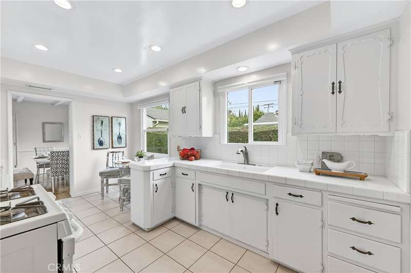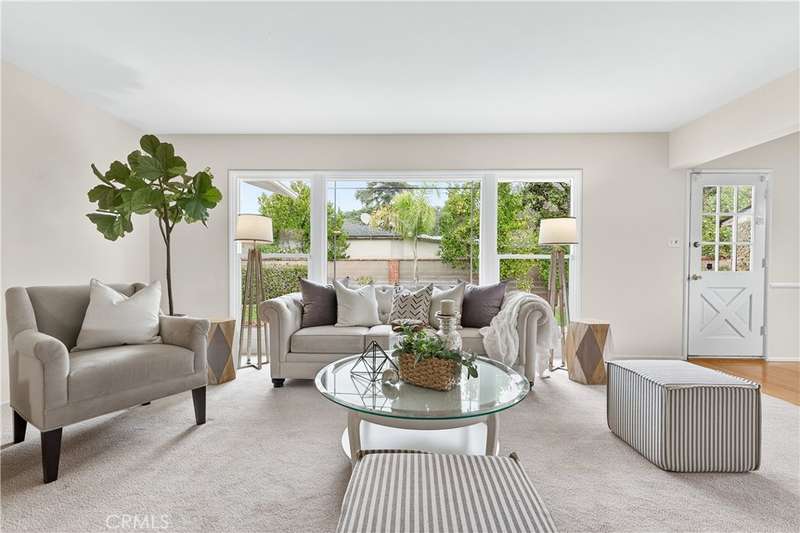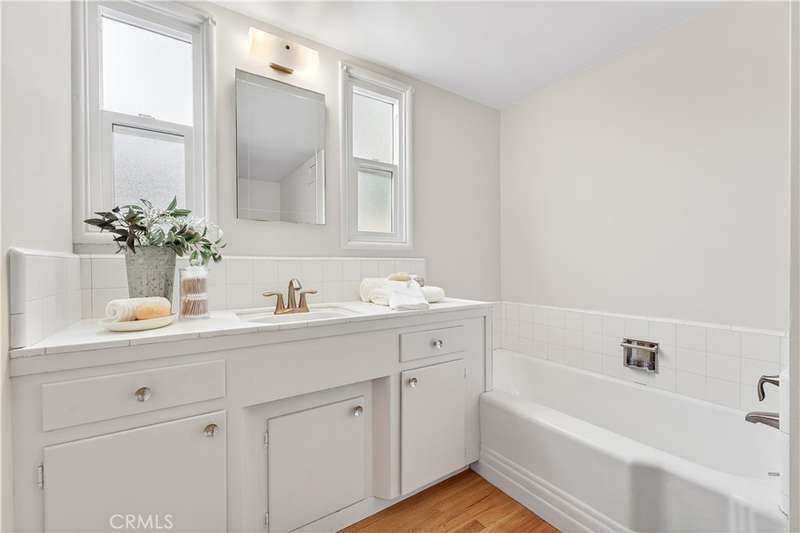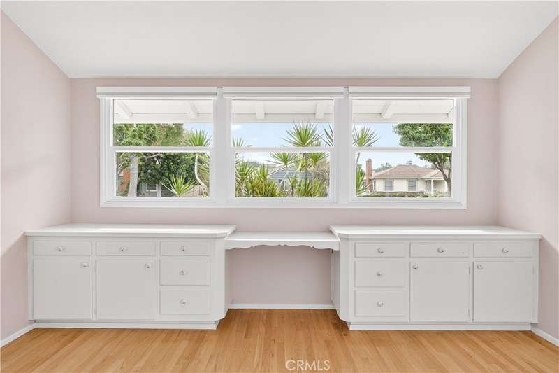 Nestled on a fall-colored tree lined street in the highly sought-after West Floral Park neighborhood, this 1952 home is simply a classic with traditional style, charm and an abundance of light. An entry will greet you at the front door with original hardwood flooring and a built-in cabinet with scalloped design shelving. An expansive Living room with a cozy brick fireplace with traditional accent molding and mantle stands across from a wall of windows looking out onto the private backyard. A designated dining area at the end of the room shares views of the backyard as well. The kitchen is sunny and bright with white tiled counters, a farm sink, original cabinets with scalloped design and a cozy sitting nook. Both bathrooms display original white tiled countertops, mirrors and light fixtures with the main bathroom hosting a separate shower and separate tub. A corner bedroom features a wall of built-ins with drawers and desk area with the same scalloped design. The second bedroom has wainscoting and could easily be converted to a den. The master bedroom is spacious and light with custom louvered doors to the closet. The home boasts newer windows throughout. The backyard has a open pavered patio area that would be the perfect spot to land at the end of the day among the citrus tree, camelias and plumeria.