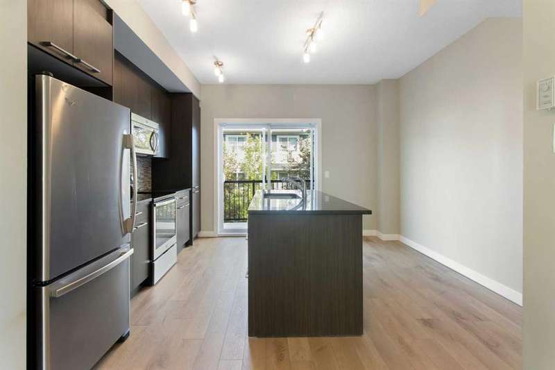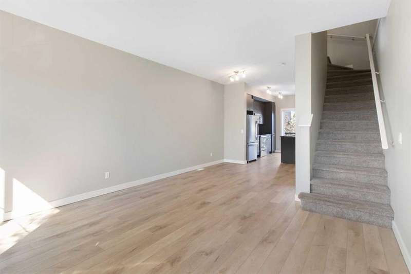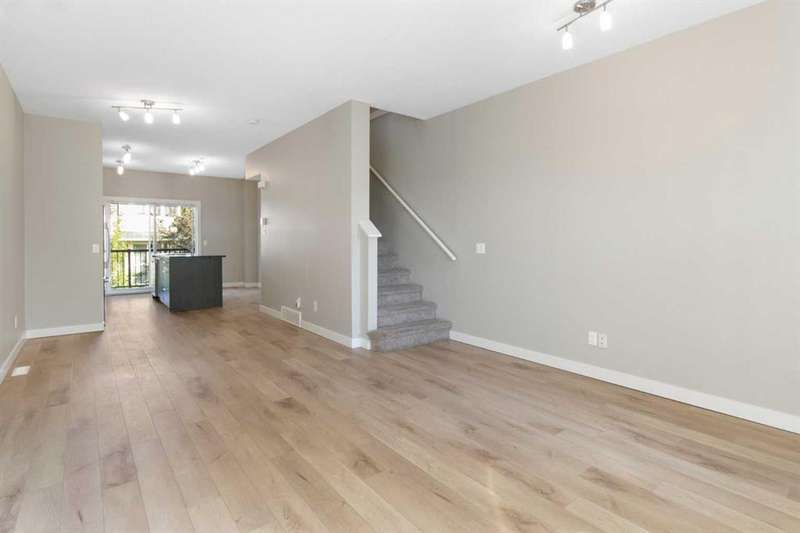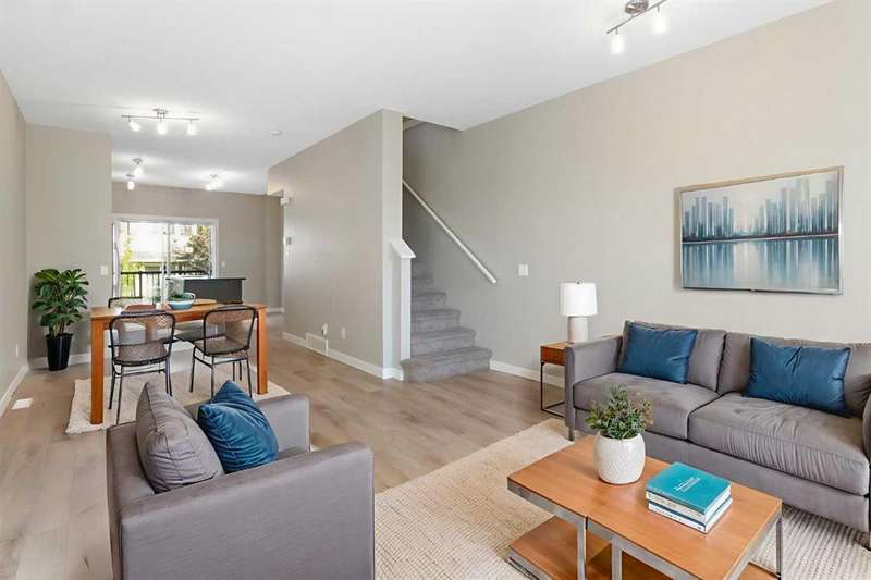 Welcome to your new home in the heart of Chestermere – a bright, beautifully designed three-level townhome that perfectly blends comfort, convenience, and lifestyle. This spacious unit offers two generous bedrooms plus a versatile den that can easily serve as a third bedroom, home office, or guest space, providing flexible living options to suit your needs. You'll love the South facing yard and the brand new laminate flooring throughout the home! Bathed in natural light throughout, the open-concept main living area is warm and inviting, ideal for both quiet evenings in and entertaining friends. Step out onto the peaceful balcony located just off the kitchen – the perfect spot for morning coffee or a relaxing evening meal as you soak in the calm surroundings. Situated in a well-managed, family-friendly complex with low condo fees, this home offers peace of mind and excellent value. Location truly sets this property apart. Just steps from your front door, you’ll find Safeway, McDonald’s, medical and dental offices, and a wide array of fantastic restaurants and amenities – everything you need is literally across the street. But perhaps the biggest highlight is Chestermere Lake, directly across the road. Enjoy paddleboarding, kayaking, swimming, or just taking in the stunning views. Beautiful walking and biking paths invite you to explore the outdoors year-round, making this an ideal location for those who appreciate both nature and convenience. Whether you're a first-time buyer, downsizer, or looking for an investment in a thriving community, this property offers an incredible opportunity to live where lifestyle and location meet.