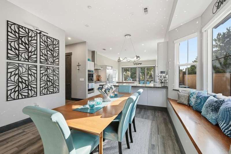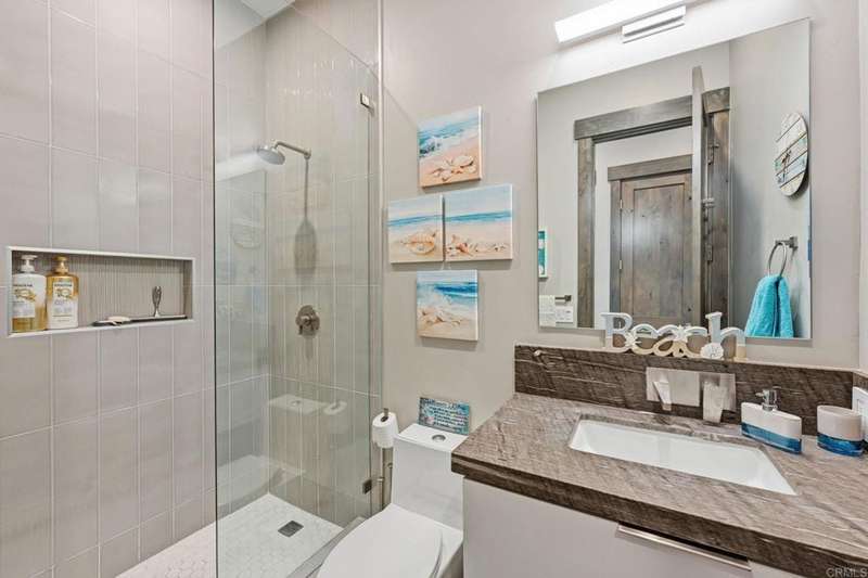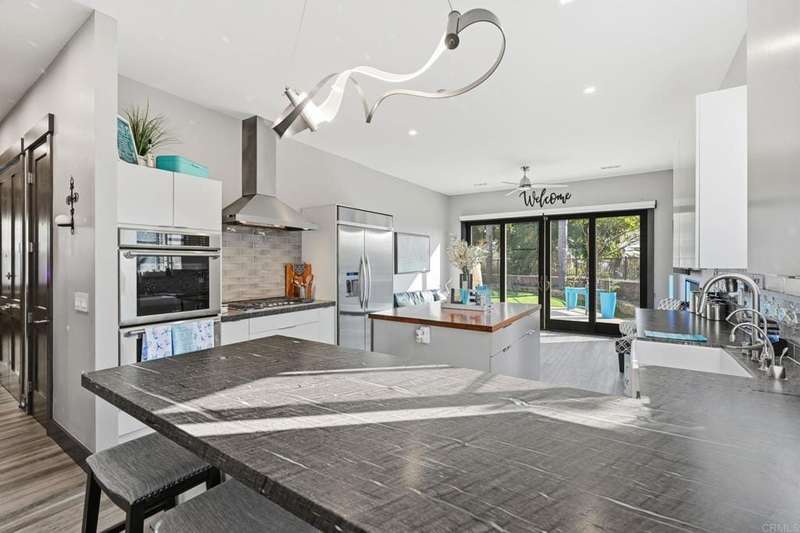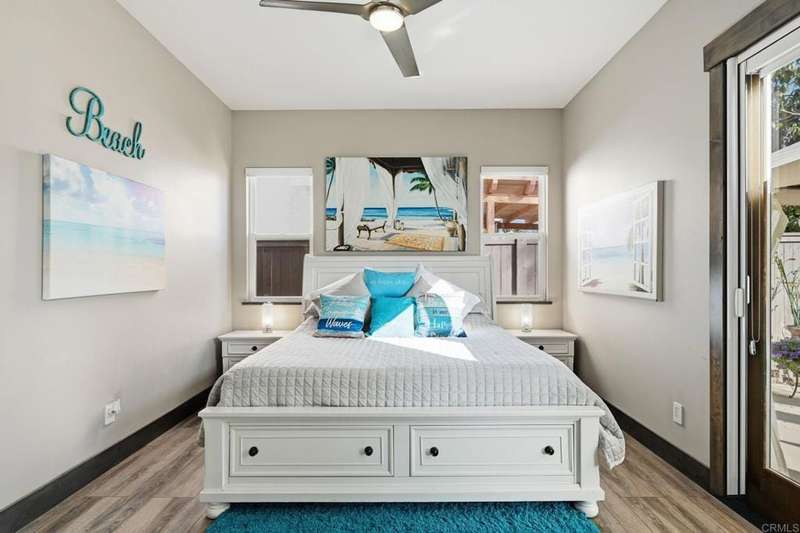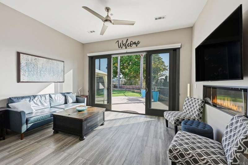 Experience the ultimate coastal California lifestyle in this stunning, fully furnished 3-bedroom, 2-bathroom home, just one mile from the beach. Designed for comfort and style, this home features a spacious primary suite plus two additional queen bedrooms (or a two-bedroom plus office option), all with ample closet space, including a walk-in closet with custom shelving. With high ceilings, ceiling fans, and five large flat screen TVs, the home is both airy and tech-savvy, complete with central air/heat, high-speed WiFi, and an EV charger. Enjoy a private garage gym, one-car garage parking, and an open-concept kitchen with modern stainless steel appliances, making it perfect for both relaxation and remote work. The private backyard oasis, overlooks the Encinitas Ranch Golf Course. Whether youre hosting a barbecue or lounging by one of the multiple fire pits, this space is designed for enjoyment. The backyard also features a covered lounge area, outdoor dining, and plenty of space for yard games and entertainment, all with expansive golf course and sunset views. This modern retreat is the perfect coastal escape, offering a luxurious and comfortable space for families, friends, or remote workers.
