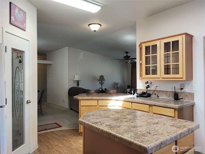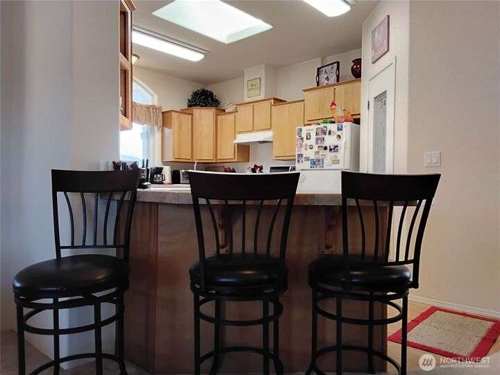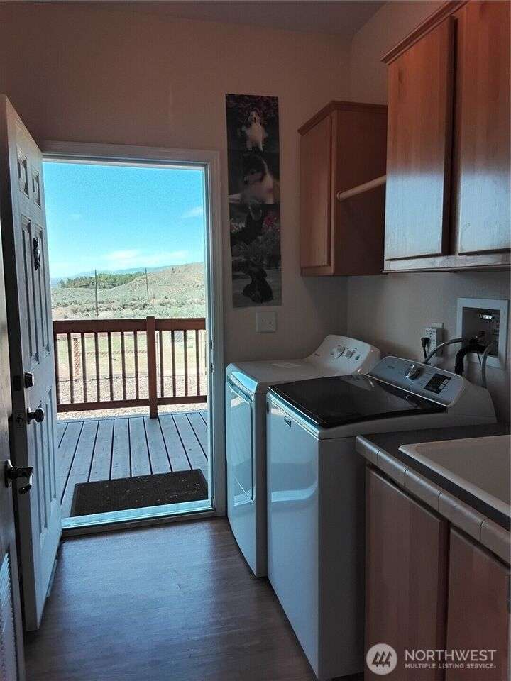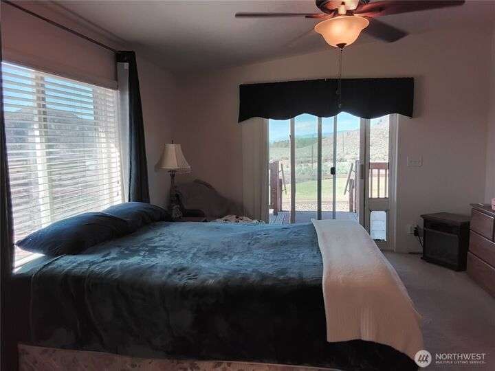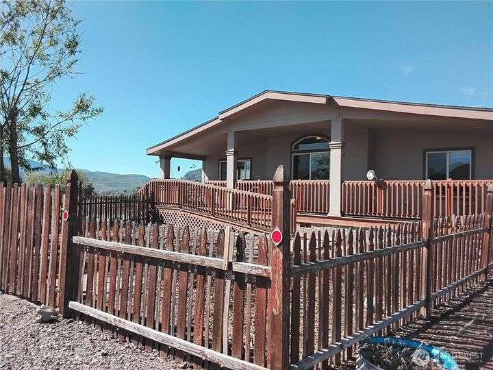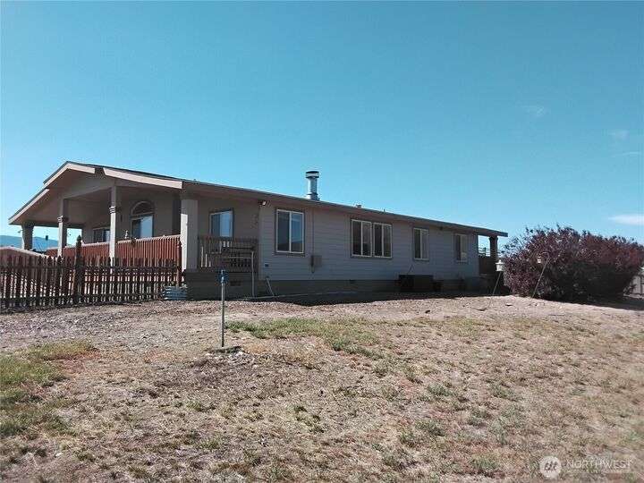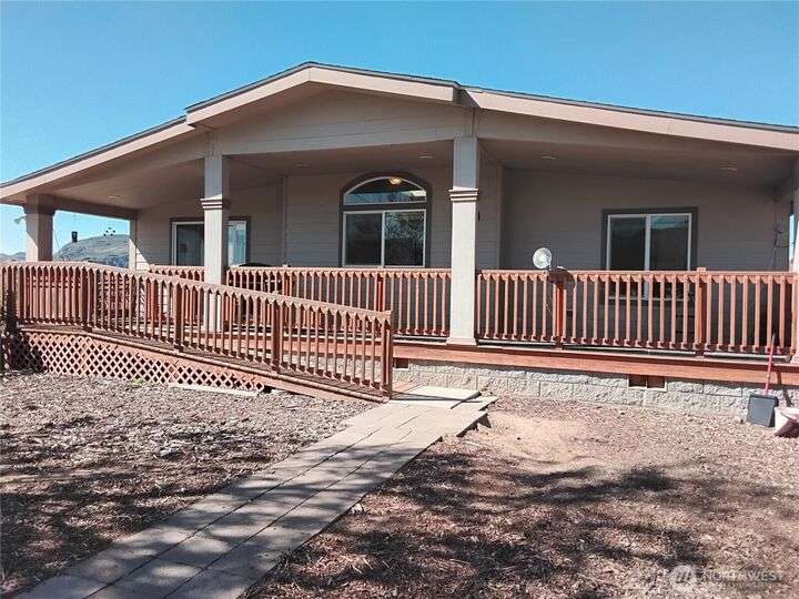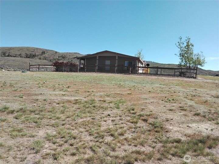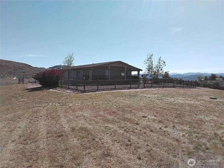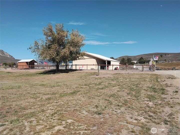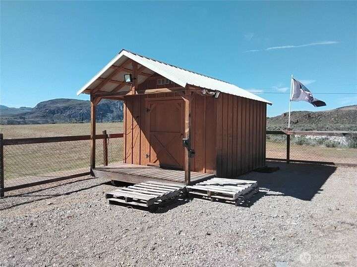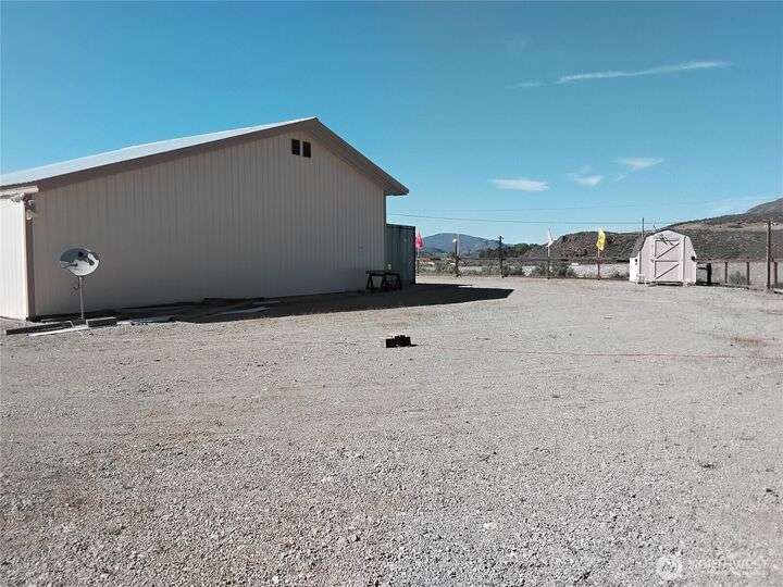 This 3.66-acre property offers views of the Okanogan Valley and Cascade Mountains. The spacious master suite features sliding doors that open to a covered porch, a walk-in closet, a soaking tub, double sinks, and a walk-in shower. The bright kitchen features double skylights, recessed lighting, an island with bar seating, an etched glass pantry door, and all appliances. Enjoy the great room with a stone wood-burning fireplace. The laundry room has a wash sink and a door that goes to a fully fenced yard. Bonus: a 1,250 sq ft insulated shop, fully fenced with spotlights, security system, climate-controlled cargo container, and two storage sheds. New septic tank!