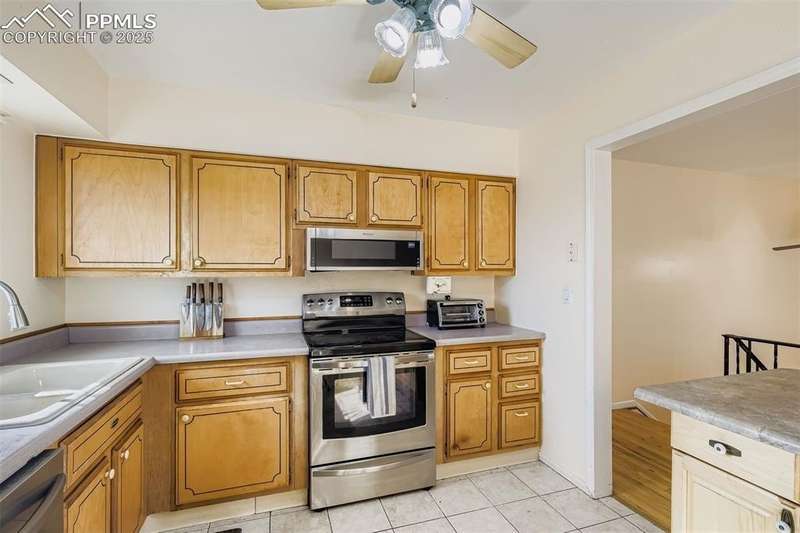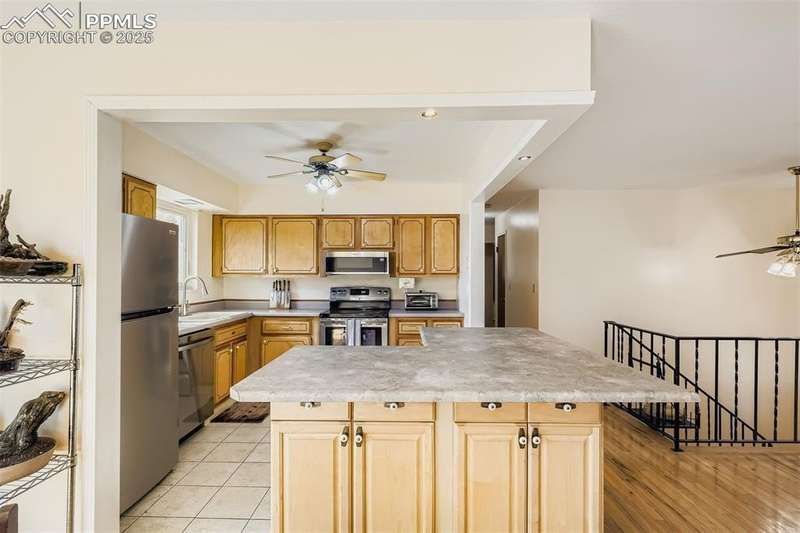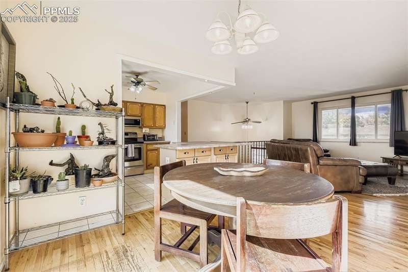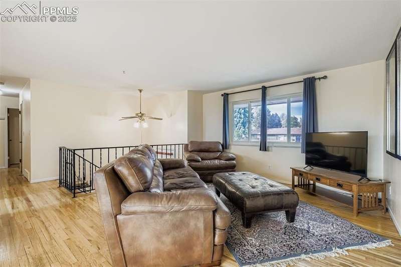Well-cared-for home ready for your buyers! Open, light, and bright great room concept. Hardwood flooring throughout much of the main level. The kitchen features an L-shaped island with maple cabinetry, a breakfast bar, and tile flooring, all completely open to the great room and dining area. Newer smooth-top oven/range, newer built-in microwave oven, and a brand-new dishwasher. All kitchen appliances are included. Multiple ceiling fans help keep the home cool during the summer months. The large, lower-level, carpeted family room includes a closet at one end, making it possible to create a 4th bedroom if needed. The washer and dryer are included in the laundry area. Storage under the stairs, along with an oversized (23x20) 2-car garage with attached shelving, cabinets, and workbenches. Enjoy summer barbecues on the deck. An additional patio area would be perfect for a hot tub, surrounded by mature trees and shrubs, with garden areas, walkways, and space for a gazebo or firepit. Enjoy mountain views from the back of the house. Nicely appointed, flat, fully fenced backyard. Close to Valley Hi Golf Course. Hurry, this home won’t last long!