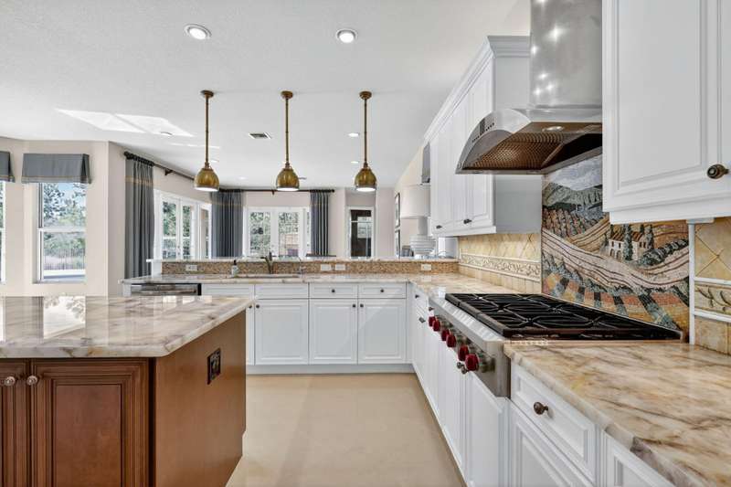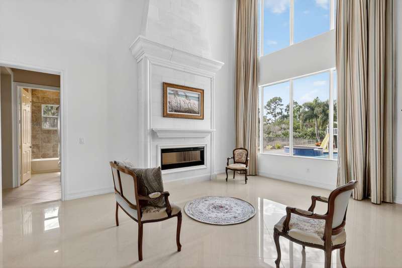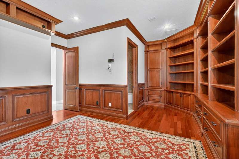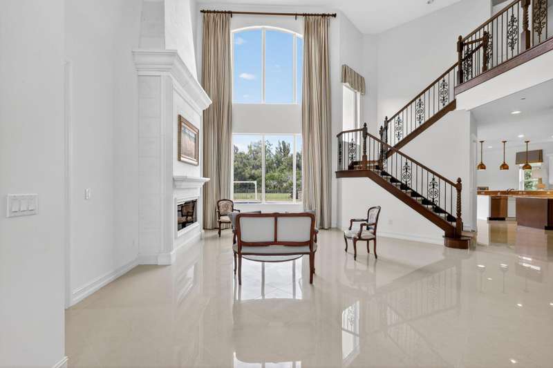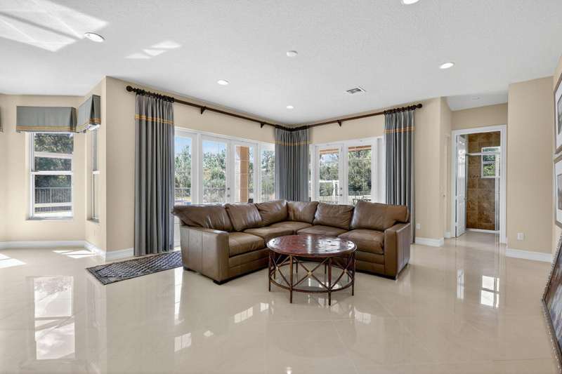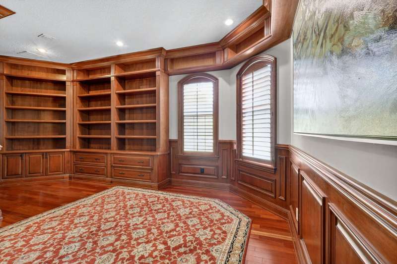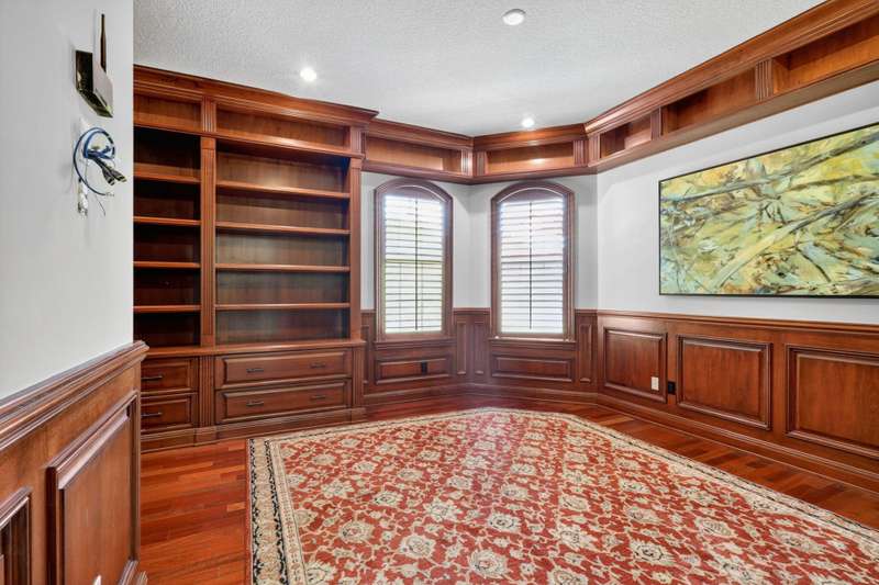 This half acre cul-de-sac home is finished to an impeccable standard using extremely high-end materials. Luxury features such as custom built wood library, custom closet built ins, crown moldings, high end appliances and illuminated kitchen island. 2 primary bedrooms with spa like bathrooms. It strikes a perfect balance of luxury craftmanship and functional design, inviting unforgettable gatherings and serene family moments. From the dramatic foyer, wrought iron stair case and chefs kitchen to the tranquil master spa and resort- style outdoor spaces, every detail exudes sophistication and comfort. Indulge in a luxurious primary suite featuring a private sitting area, his/hers vanities & closets. This elegant home is surrounded on two sides by preserve. 500 gallon propane tank generator