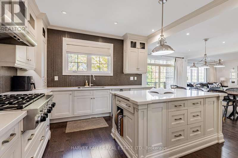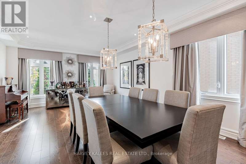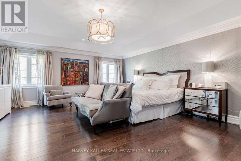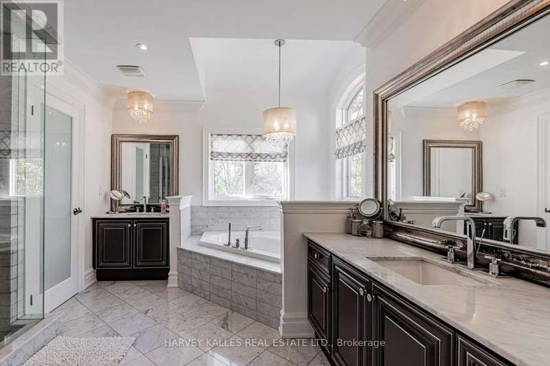 Magnificent one-of-a-kind family home nestled on one of the most sought-after streets in the prestigious Valleys of Thornhill community. Backing onto a tranquil ravine, this designer-decorated residence showcases a stunning saltwater inground pool with a water feature, built-in BBQ, and multiple lounge, seating, and dining areas across an expansive 80-ft-wide backyard oasis. The sun-filled interior boasts 9' main floor ceilings, hardwood floors, pot lights, crown moulding, and elegant upgraded fixtures throughout. Perfect for entertaining, the home offers spacious living and dining areas, a cozy family room, and a gourmet chef's kitchen featuring a butler's pantry, oversized island, Corian counters, tiled backsplash, and top-of-the-line built-in stainless-steel appliances. The large breakfast area walks out to a deck overlooking the private treed backyard. Enjoy convenient garage access through the laundry/mudroom. The luxurious primary retreat features a 5-piece ensuite, walk-in closet, and an adjoining home office or sitting room. Three additional bedrooms each include walk-in closets with custom built-ins. The impressive walk-out basement offers an office, recreation and exercise areas, ample storage, and two washrooms-ideal for use after a swim. Situated close to top-rated schools, 2 community centres, parks, restaurants, shopping, and public transit, this exceptional property blends elegance, comfort, and convenience in one perfect package. (id:6370)