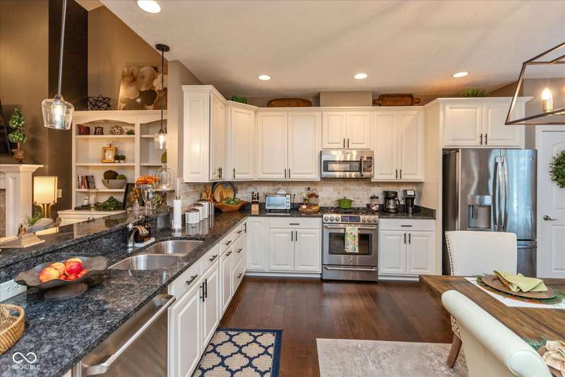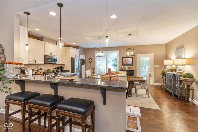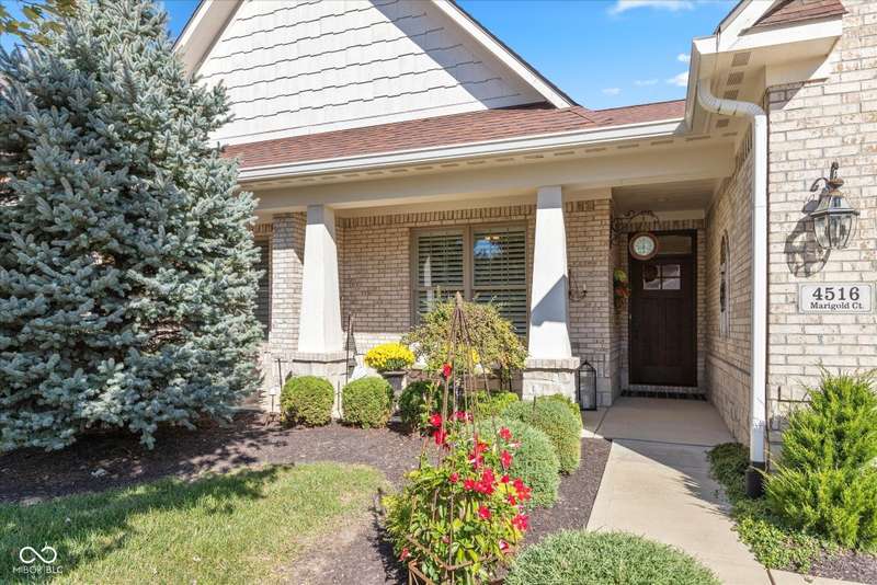 Nestled in the charming gated community of 4516 Marigold CT, GREENWOOD, IN, this attractive condominium offers a delightful residential experience. Imagine evenings spent in the great room, the vaulted ceiling creating a sense of spaciousness, while the fireplace provides a warm, inviting glow. The screened-in porch offers a bright, airy space to relax and enjoy the changing seasons. The kitchen is designed with both beauty and functionality in mind, featuring stone countertops and a backsplash that adds a touch of elegance, while the kitchen bar and kitchen peninsula offer convenient spaces for meal preparation and casual dining. Retreat to the bedroom, where a tray ceiling and crown molding add a touch of sophistication, while the bathroom offers a double vanity and a tiled walk-in shower, creating a spa-like experience. This property also features a covered porch, laundry room, and outdoor living space, providing ample opportunities to enjoy the outdoors. This 1863 square foot, three-bedroom, two-full-bathroom condominium, built in 2016, is a wonderful opportunity to enjoy a comfortable and carefree lifestyle.