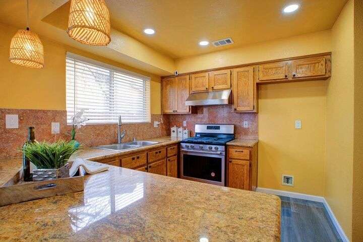 Welcome to this beautifully maintained home, offering ample space, modern updates, and ultimate comfort. Featuring dual living rooms, a formal dining area, and a breakfast nook, this home is perfect for both everyday living and entertaining. The high ceilings enhance the open feel, while the cozy fireplace adds warmth and charm. Recent upgrades include a brand-new HVAC system installed in 2022, new roof 2 yrs ago, fresh exterior paint just done in 2024, and newer laminate flooring on the first floor with plush carpet upstairs. Experience energy efficiency at its best with the many smart switches throughout the home in addition to the smart thermostat. The kitchen is a chef's dream, boasting granite countertops, an extended dining bar, and a new gas range and dishwasher. Enjoy outdoor living in the huge backyard featuring plenty of space for gatherings, gardening, and possibly an ADU. Mature asian pear and persimmon trees provide delectable fruits, and no rear neighbors means added privacy! The low-maintenance front landscaping adds to the home's curb appeal and smart garage door opener allows you to operate it remotely. Located in the highly sought-after Elk Grove School District. Don't miss out-schedule a tour today!
