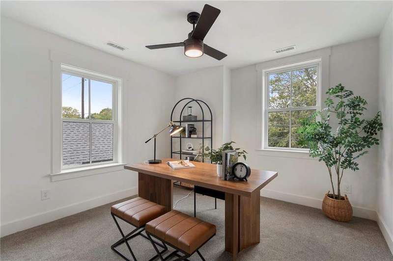 Another masterpiece by Garden Bench Development, this exceptional new home embodies the essence of modern sophistication. Defined by clean architectural lines, luminous interiors, and designer lighting with custom finishes throughout, it achieves a balance of elegance and ease that feels both refined and livable. The main level unfolds with natural flow, connecting open living and dining areas to a kitchen designed to impress. At its center, a striking island anchors the space-surrounded by bespoke cabinetry, curated materials, and generous room to cook, gather, and entertain. Every detail has been considered to create a home that lives beautifully day to day, yet transitions effortlessly for entertaining. Upstairs, spacious bedrooms and flexible living areas provide comfort and versatility, while the private rooftop deck offers sweeping views of Georgia State's stadium and the glittering city skyline-an unforgettable backdrop for evenings under the stars. A covered front porch and expansive, flat backyard-a rare luxury in this area-extend the living experience outdoors, capturing the spirit of Atlanta's indoor-outdoor lifestyle. Situated in the heart of Summerhill, this home places you steps from The Little Tart, Hero Doughnuts, and Halfway Crooks-surrounded by some of Atlanta's most dynamic dining, parks, and community energy. Modern design, skyline views, and the unmistakable craftsmanship of Garden Bench Development-this is urban living at its most inspired.