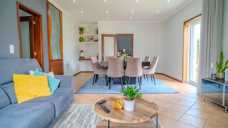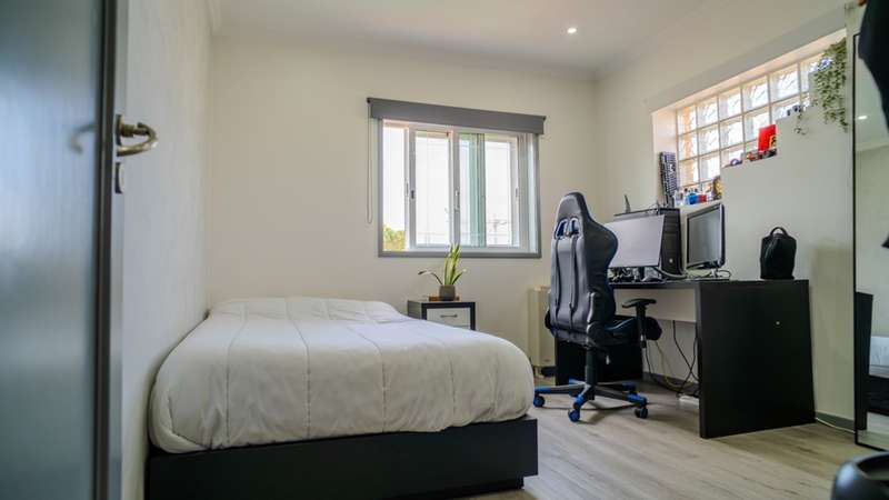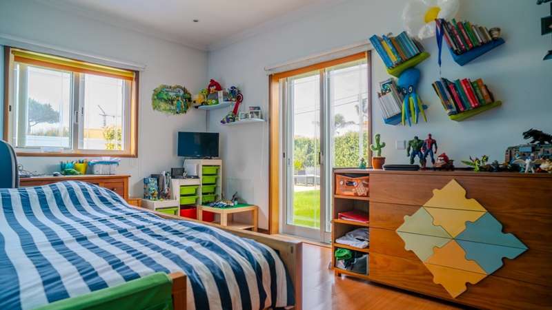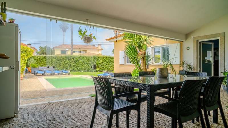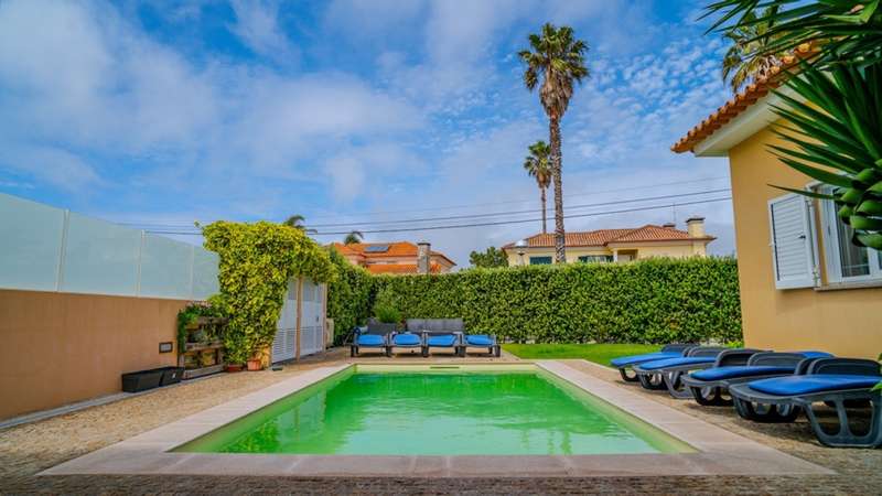 This four-bedroom house is located in a quiet residential area in Esmoriz, a 10-minute walk from the beach and surrounded by green areas. Comprising two floors, this house offers an excellent distribution of spaces and plenty of natural light. On the first floor there is a large living room with a wood-burning stove and access to the garden, an equipped kitchen with a laundry area and a service bathroom. This floor also includes three bedrooms with built-in closets, one of them en suite, plus a bathroom. On the upper floor there is a versatile and ample space, as well as a bedroom, storage and a terrace. This villa also has covered parking for two cars, a lawned garden and barbecue area, as well as a large swimming pool. Privileged location with good access to the center of Esmoriz, beaches, train station and quick connection to the A29. CHARACTERISTICS: Plot Area: 416 m2 | 4 478 sq ft Deployment Area: 225 m2 | 2 422 sq ft Building Area: 295 m2 | 3 175 sq ft Bedrooms: 4 Bathrooms: 3 Garage: 2 Energy efficiency: C FEATURES: Swimming pool; Garden; 750 meters from the beach.