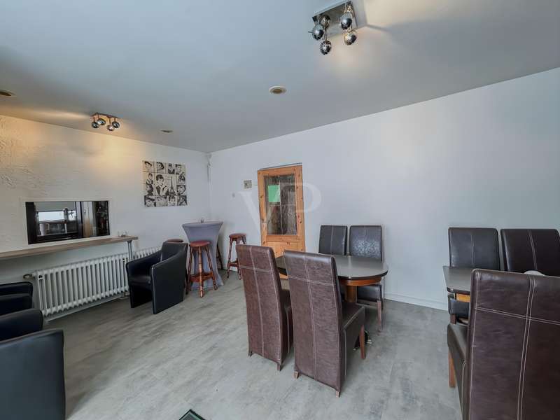 The residential and commercial building with a decorative Art Nouveau façade with rich ornamentation and profiling is located on a traffic-calmed central shopping street in Velbert-Mitte. It is almost rectangular and fully developed. The property has approx. 462 m² of living space spread over 7 units and approx. 154 m² of commercial space. The house has a full basement. There is an old shooting range in the basement, which was approved by the building authorities in 1978. The cellar also has a party room with integrated bar and WC as well as several storage rooms. A traditional restaurant has always been located on the first floor. It has a large dining room, a bar area and another separate lounge as well as kitchen and WC units, of course. The restaurant has approx. 154 m² of usable space. The residential areas on the floors above are accessed via the spacious staircase. The individual apartments can then be reached via a corridor. All apartments and the commercial unit are fully let. The house was built mainly in solid construction. The ceiling to the basement consists of a solid capped ceiling. The other ceilings were constructed as wooden beam ceilings. The statically relevant building components in the basement and on the ground floor consist of a post and beam construction made of steel, which allows for a variable room layout. Some apartments are currently still being renovated. We will be happy to provide you with further information on request Interested parties are cordially invited to gain a personal impression of the property and be convinced of its advantages.