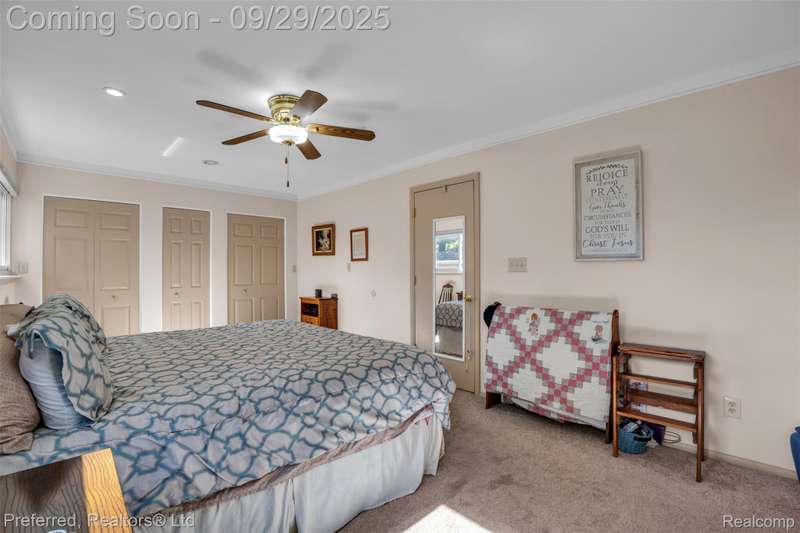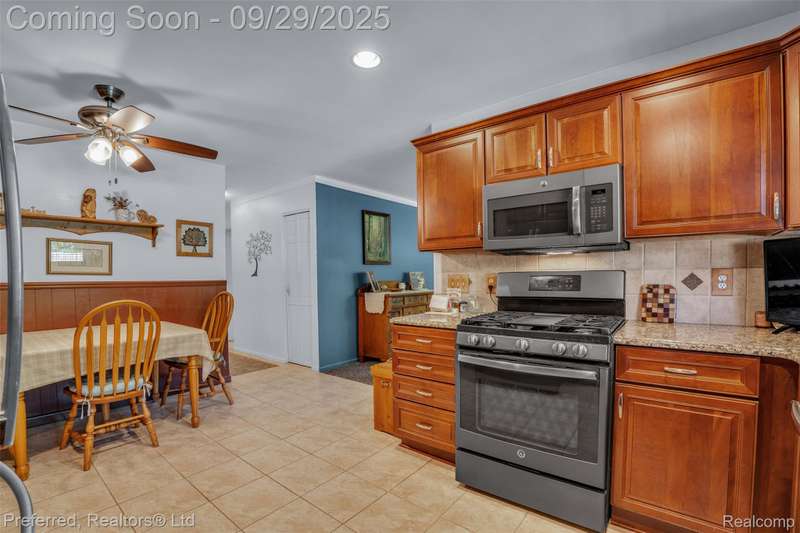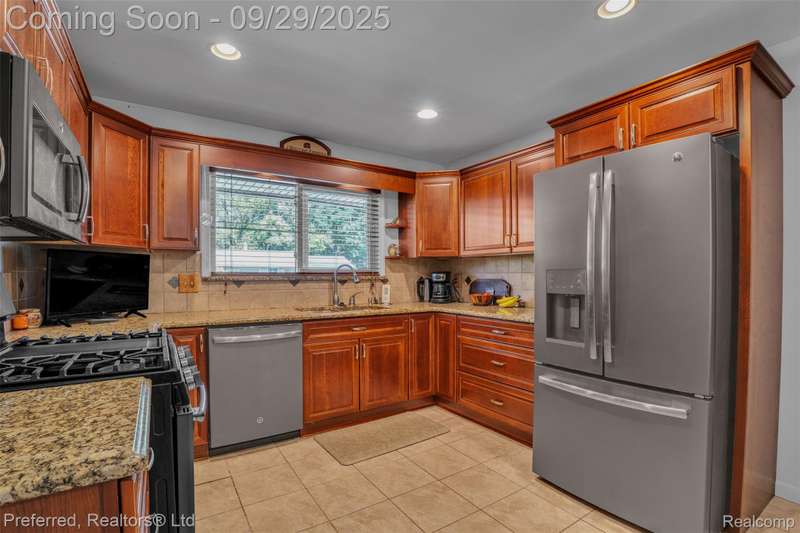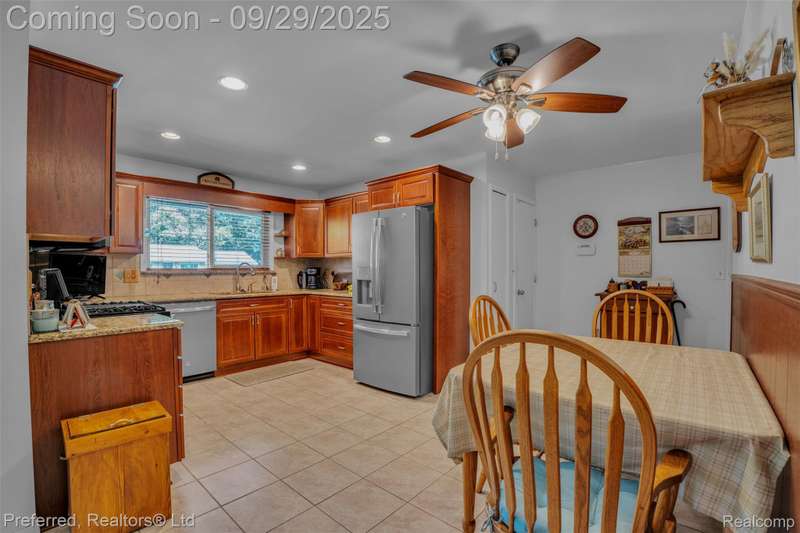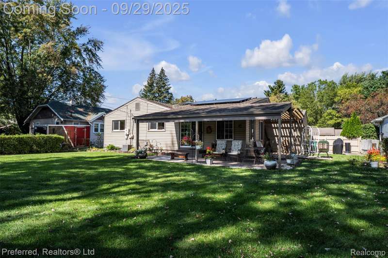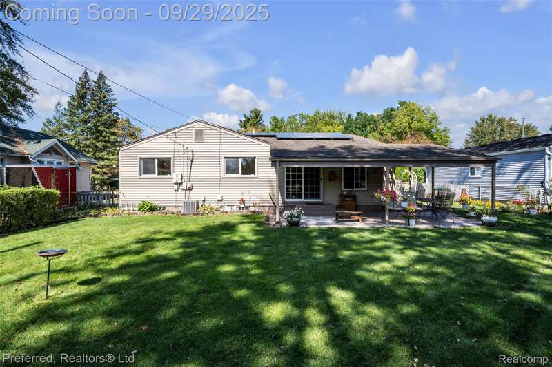 WOW! This place has it all! You enter into the very nice living room that leads to the beautiful, elegant kitchen with recessed lights, all appliances stay, tile floor, plenty of cabinets, storage and a pantry. Then you walk into the FR which is a very nice size with a FP. This was a 3 bed rm that was made into a 2 bed rm, a wall was removed to make a huge Master bedroom. There is a room used downstairs as a bed rm but does not have an egress window. Updated 1st floor bath rm. Enjoy those nice summer days and evenings on the awesome covered patio off the FR, looking out into the very manicured yard and also has a shed. Great yard for entertaining. The basement is finished with another very nice bathroom. there is plenty of storage and nice area for the kids, or gatherings. There is a refrigerator in the bsmt that will stay with the home, the freezer is excluded. There are solar panels that help reduce the electricity cost in the home, which is a great asset, being able to save money these days is huge! There are gutter guards to keep the gutters clean. If that is not enough, the house has been well maintained and is very clean