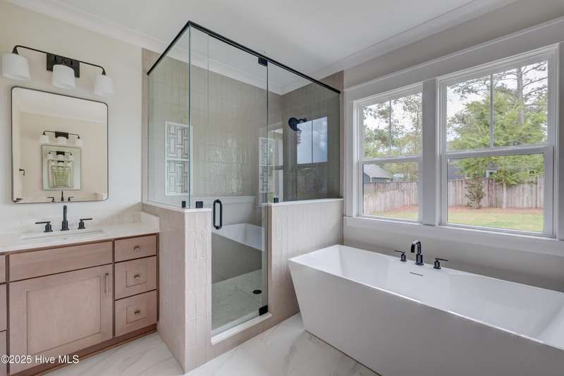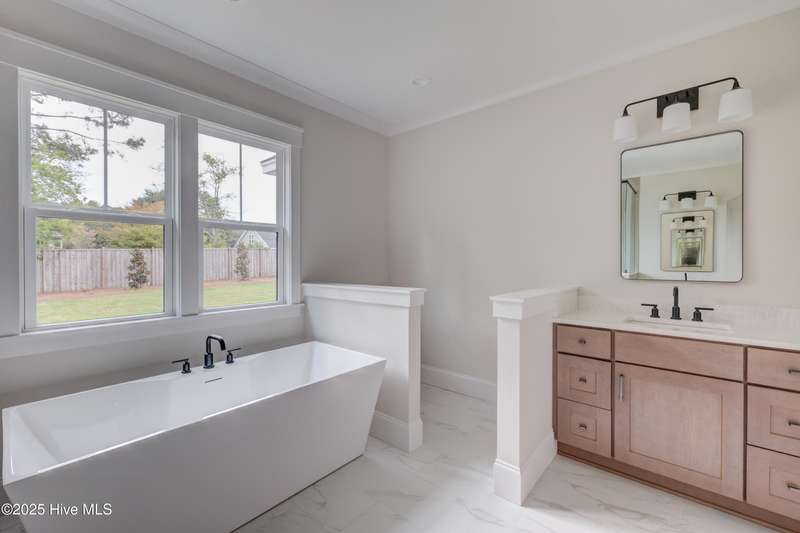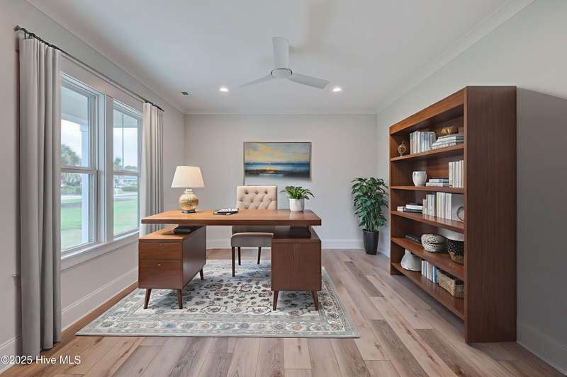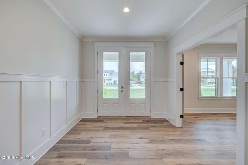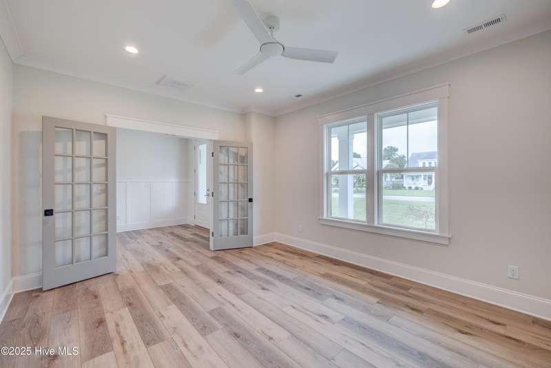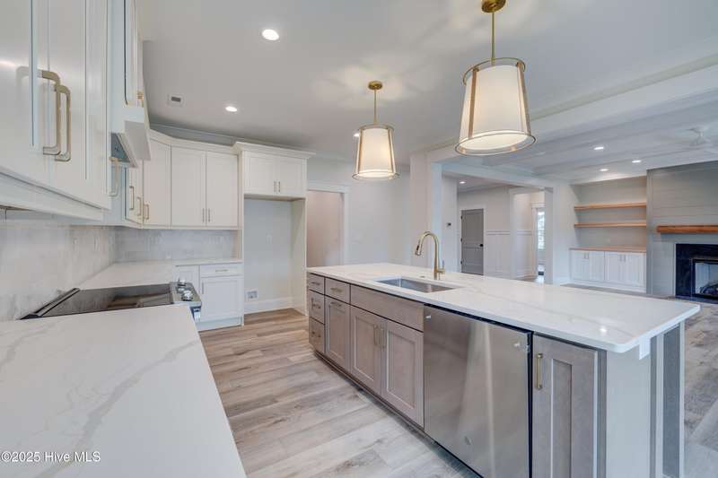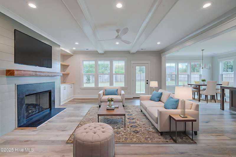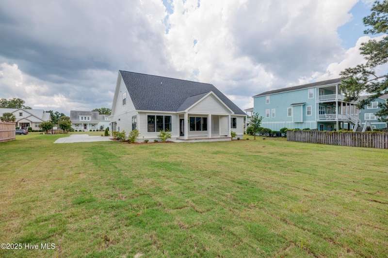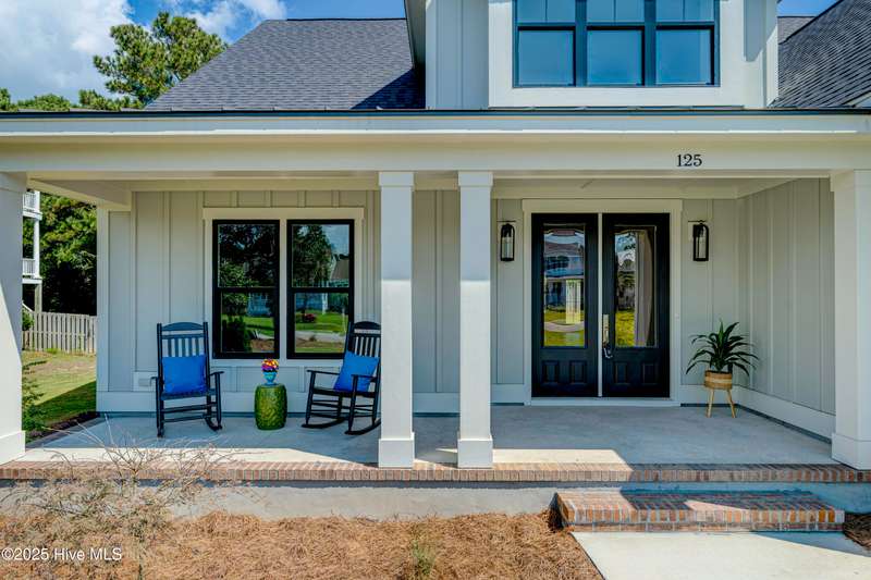 Welcome to this stunning new construction home in the sought-after coastal community of Pelican Sound! Nestled on nearly a half-acre, this rare find offers close to 3,000 sq feet of thoughtfully designed living space, featuring 4 bedrooms and 2.5 baths.From the moment you enter, the high end craftsmanship is evident with salt-finish concrete porches, wrapped beams, wainscoting, and a shiplap-wrapped fireplace with custom built-ins. The upgraded trim, high-end paint, and abundant storage add to the home's desirability, including dual HVAC units, high end appliances, spacious walk-in pantry, drop zone, wooden shelving in every walk-in closet, and two large walk-in attic spaces.The open layout flows effortlessly, filled with natural light and designed for everyday living.The first-floor primary suite is a private retreat with two generously sized closets and a spa-like bath featuring dual split vanities, an oversized soaking tub, and a large glass shower wrapped in high-end tile. The first floor additionally offers a large designated office with double glass doors. Upstairs, there are three bedrooms each with walk-in closets, along with a large dual-vanity bathroom and a walk-in laundry room. Two expansive walk-in attic spaces provide exceptional storage or potential for future finished square footage if desired. Step outside to a peaceful community where new construction is rare. Just minutes from the house you will be able to enjoy the community dock with boat slips and sweeping views of the Intracoastal Waterwaythe perfect spot to relax into the coastal lifestyle.Centrally located between Wilmington and Jacksonville, near Kiwanis Park, shopping, and beaches, this home offers the perfect balance of comfort, quality, and convenience.Note: Some photos have been virtually staged.