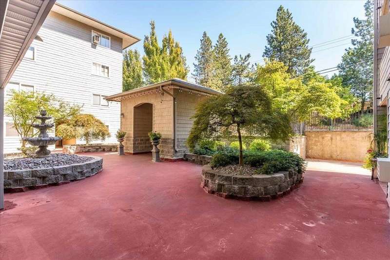 Enjoy effortless main-floor living in this beautifully maintained one-bedroom, one-bath condo located just steps from Providence Sacred Heart Medical Center, in the heart of the desirable Rockwood neighborhood. This light-filled corner unit features high-end finishes, including granite countertops, stainless steel appliances, LVP flooring, and washer & dryer included. The open layout is perfect for comfortable condo living. Situated in a gated community with exceptional amenities, including a heated driveway, secure underground parking with a dedicated space and elevator access. Step outside your door to a peaceful courtyard and the community workout room—everything is designed for convenience. The unit is ideally located within walking distance to South Hill parks, dining, shopping, and public transit, and just minutes to downtown Spokane and the major medical centers. Don't miss this exceptional opportunity for home ownership in one of Spokane’s most sought-after neighborhoods! It is move-in ready!