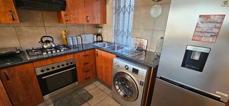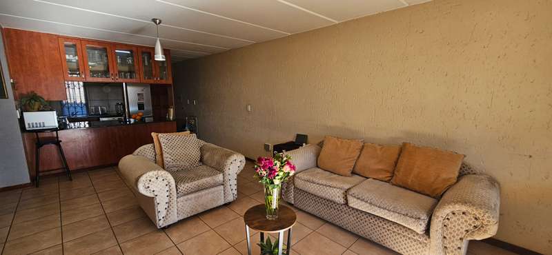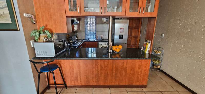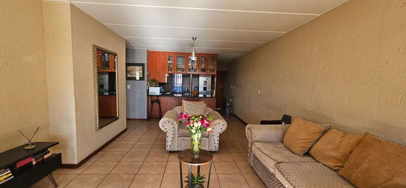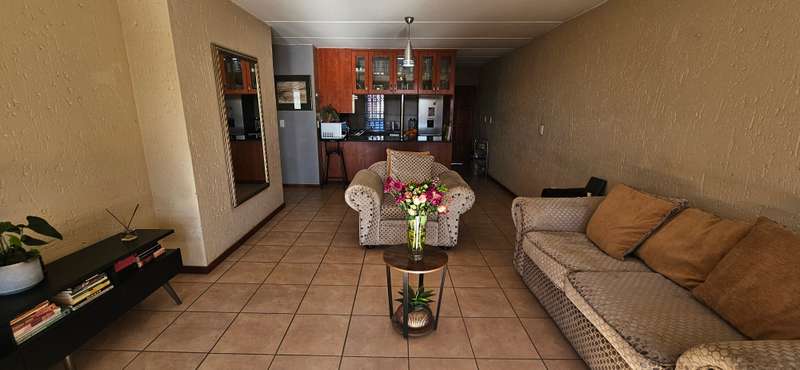 This ground floor unit is spacious and boasts a large open plan lounge and kitchen with granite tops, a gas hob, space for 2 appliances and ample cupboard space. There are 2 well sized bedrooms with built in cupboards and 2 bathrooms (MES). The unit is tiled throughout and a doors from the living area leads out to a undercover patio overlooking a small garden. There is also a small lock-up storeroom for all your extra storage needs. Complete with 2 carports and is well secured with easy access to amenities and main roads....Don't delay, call me today to arrange a viewing....