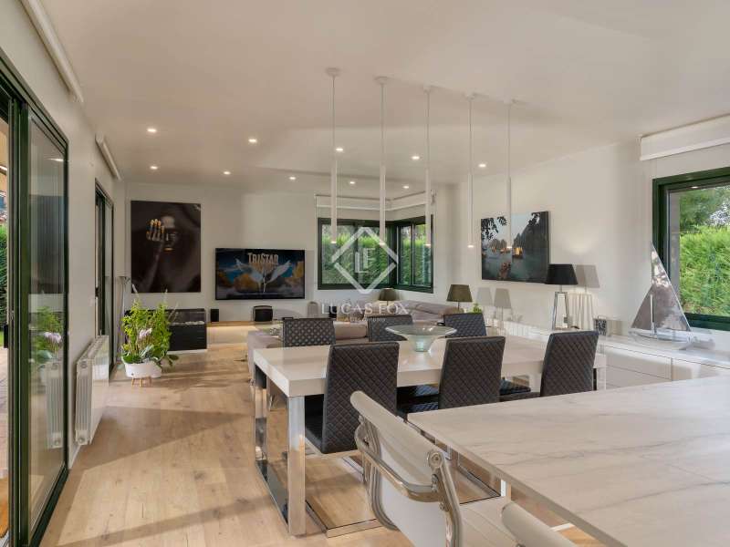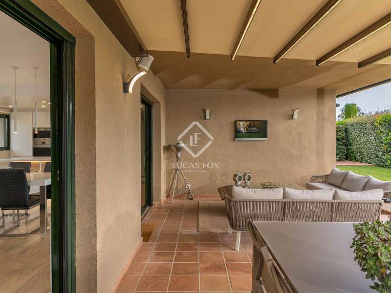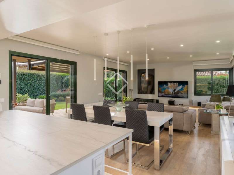Set within the peaceful surroundings of the prestigious Torremirona Golf Resort in Alt Empordà, this thoughtfully renovated single-storey home combines practical design with quiet elegance. Every detail of the renovation has been considered to offer both comfort and functionality in a relaxed, natural setting. The interior layout is welcoming and well-balanced. Upon entering, a light-filled entrance hall opens into a spacious living and dining area, designed in an open-plan configuration that encourages connection and ease of movement. A bioethanol fireplace adds subtle warmth and a focal point to the room. Adjacent to the living space, the modern kitchen is integrated seamlessly, functional and well-appointed, ideal for everyday cooking and entertaining alike. The home offers three comfortable bedrooms; the main bedroom features an en-suite bathroom and a walk-in wardrobe, offering a private space separate from the rest of the home. Two further bathrooms, one with a bathtub and the other with a walk-in shower, serve both guests and family members with convenience. Outside, the property continues to impress with a covered porch that provides a sheltered space for outdoor meals or quiet afternoons. The garden is spacious and well-maintained, with carefully placed lighting that allows it to be enjoyed well into the evening. A dedicated barbecue area makes this space especially suited for informal gatherings or relaxed weekends at home. Additional features include a large exterior storage room, a covered parking area for two vehicles with an automatic gate, and practical smart-home elements such as Wi-Fi-controlled irrigation and climate systems. The house also benefits from ducted air conditioning and heating, propane-powered central heating, and double-glazed windows that ensure thermal and acoustic efficiency. This home offers a quiet lifestyle in a secure and well-established community, surrounded by nature and just a short drive from the coast and the historic towns of the Empordà region. Please contact us for more information.