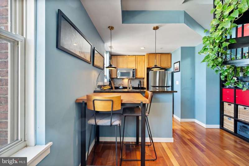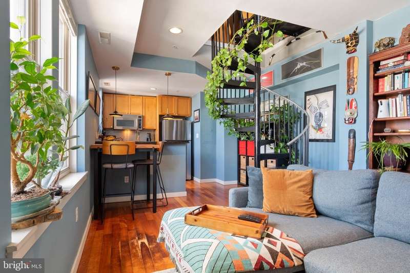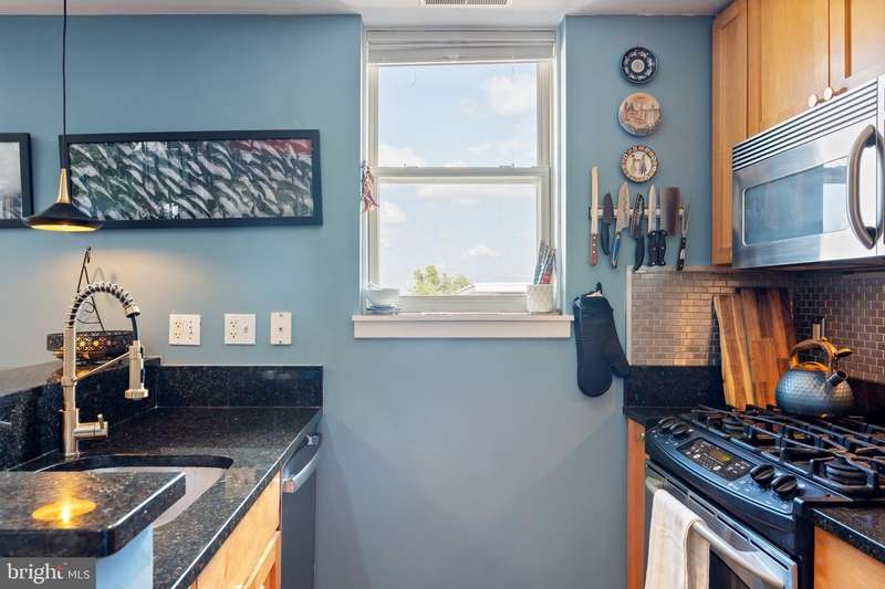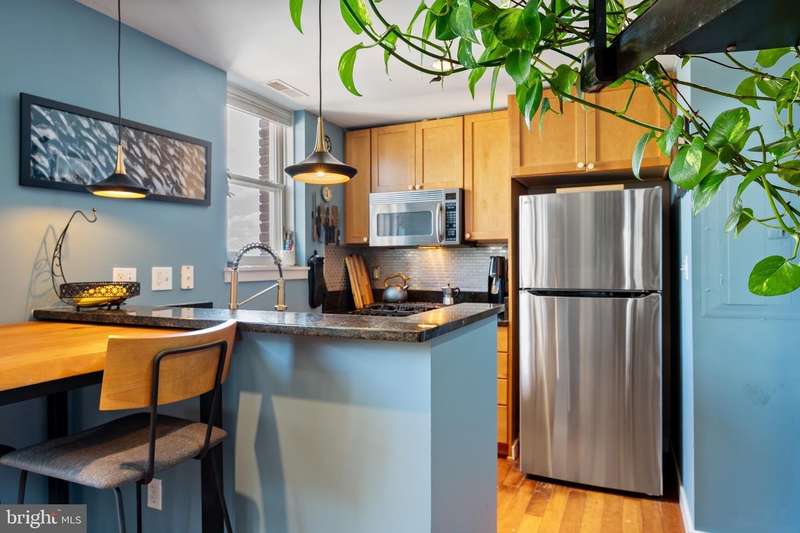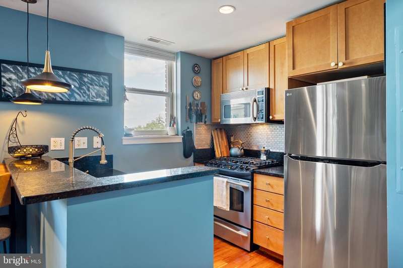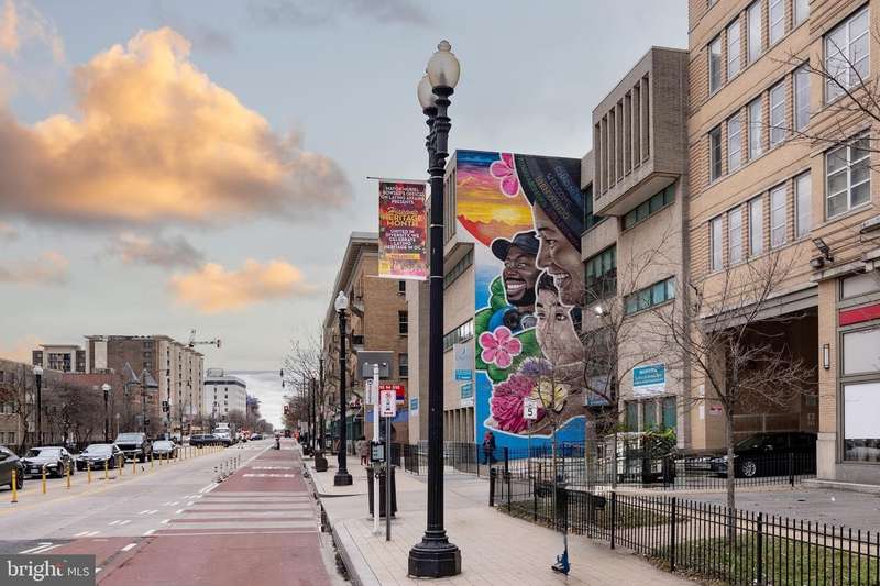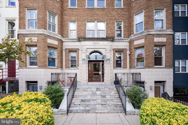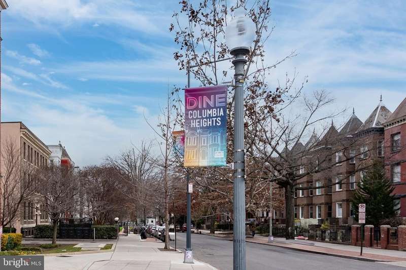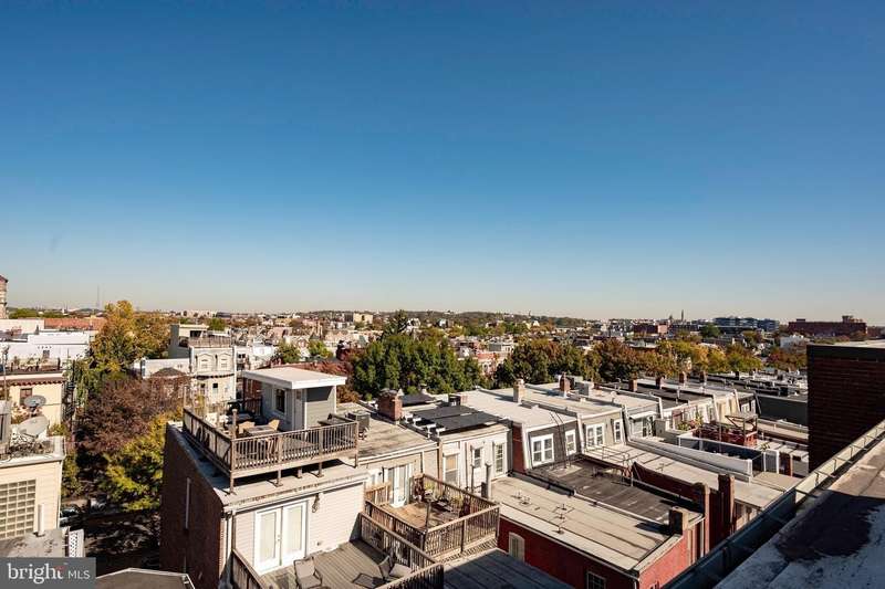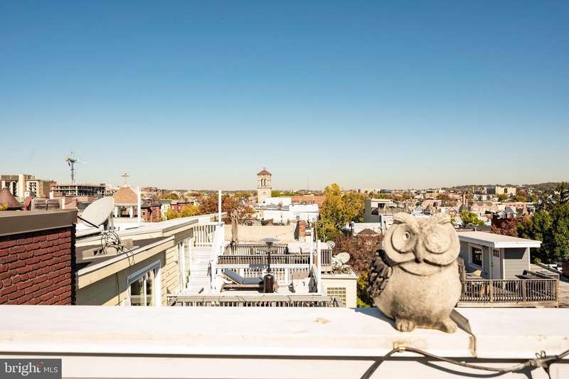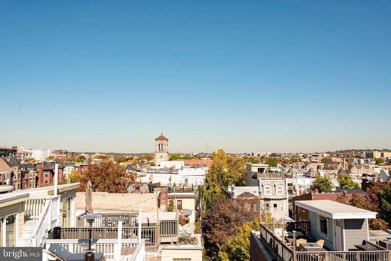 PRIVATE rooftop deck and PRIVATE garage parking for one car. This top-floor one-bedroom, one-bath condo has it all! The living area features hardwood floors, a gas fireplace, and large, bright windows. The updated kitchen includes a gas stove, brand-new fridge and dishwasher. The bedroom offers in-unit laundry and extra closet space. A spiral staircase leads to an office area and the private rooftop deck with stunning 360-degree views. Behind the building is your spacious private garage with extra storage, prepped for an electric vehicle. Ideally located between Columbia Heights and U Street, you're steps from dining, shopping, and entertainment, with quick access to two metro stations. And yes, it's a well-run, pet-friendly building with a low condo fee!