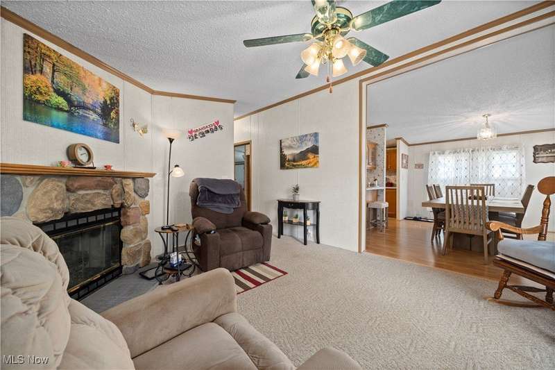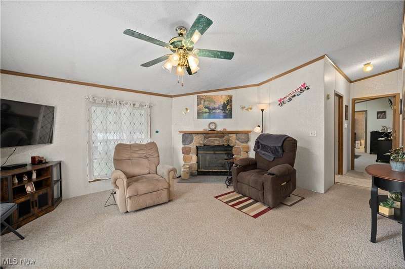This spacious 3-bedroom, 2.5-bath manufactured home in Elyria offers 1,765 sq ft of comfortable, modern living. Enjoy peace of mind with major updates-roof, HVAC, and hot water tank all less than 2 years old. The beautiful deck and patio (under 2 years old) create the perfect outdoor space for relaxing or entertaining. Inside, you'll love the large kitchen with plenty of storage and counter space, cozy electric fireplace, and open layout. The owner's suite features a soaking tub, separate shower, and double vanity for a spa-like retreat. With generous bedrooms and convenient half bath for guests, this home blends style, space, and updates-move-in ready and waiting for you!