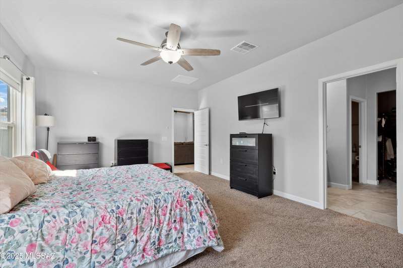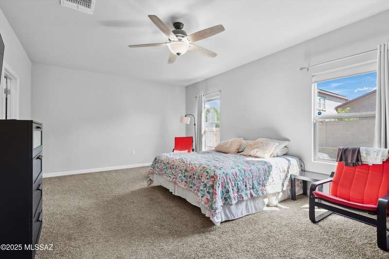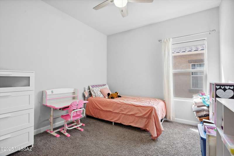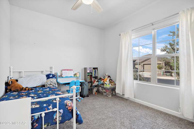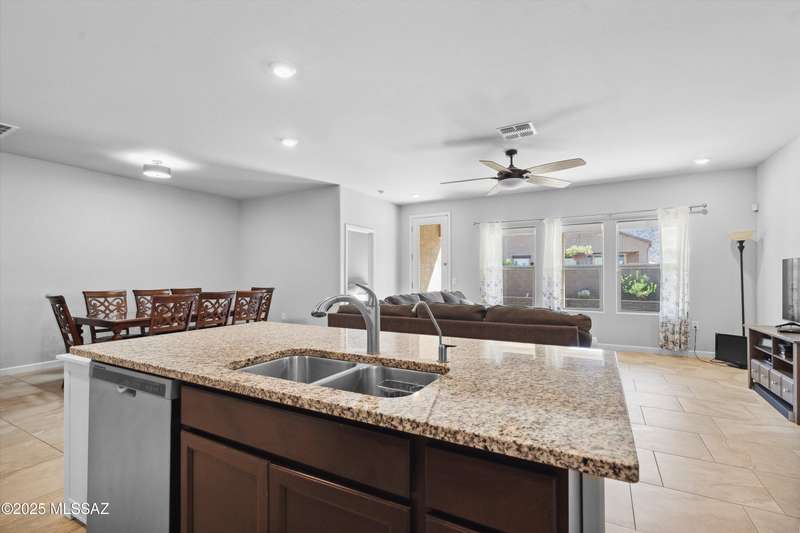 Welcome to Saguaro Bloom, a vibrant community offering resort-style living with a clubhouse, two pools with lap lanes and lagoon entry, a splash pad, fitness center, scenic pocket parks, and expansive sports courts. This 4-bedroom, 2-bath home features a bright, open-concept design with a open kitchen, large island, and easy flow into the dining and living areas. The spacious primary suite includes dual vanities, a walk-in shower, and a generous closet. Enjoy a fully landscaped backyard with a covered patio -- perfect for morning coffee, evening gatherings, or weekend entertaining.