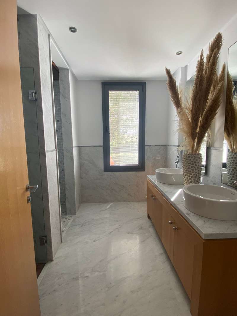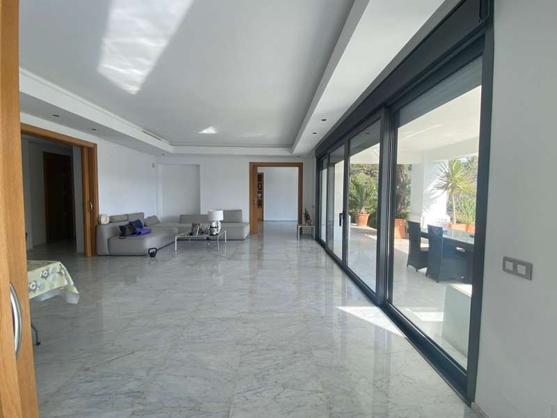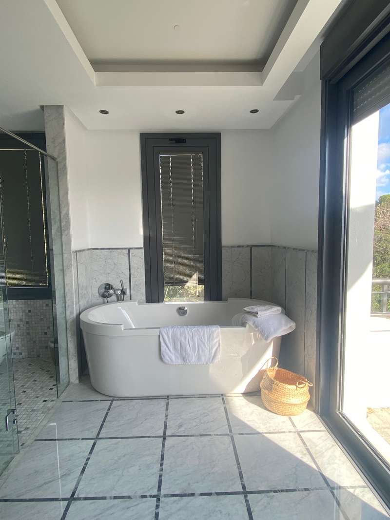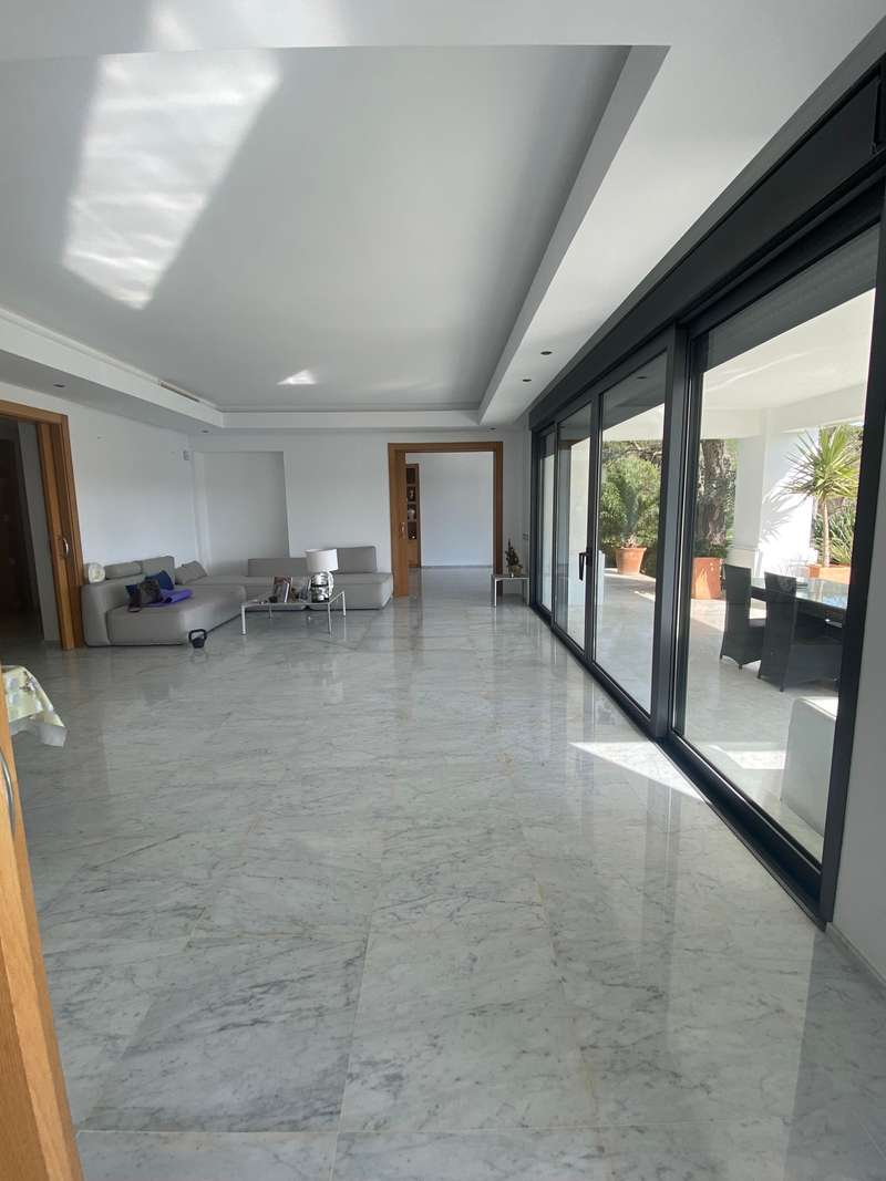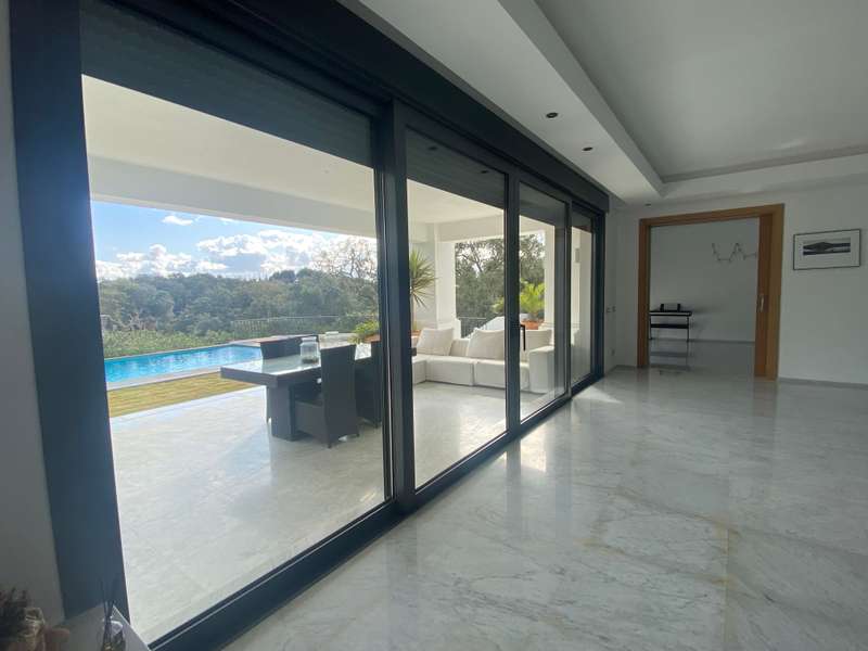 This fantastic villa is located in one of the most privileged and safest areas, thanks to its access gate in Los Altos de Valderrama, Sotogrande. In its surroundings, you will find five of the top golf courses in the area, and from its terraces, you can witness the greens of Real Club Valderrama Golf, one of the best courses in Europe. Additionally, in less than 5 minutes, you can find the prestigious Sotogrande International School. The house has been built with the best quality materials on a 2,120 sq m. plot, featuring air-conditioning, heated floors, pre-installation for a sound system, and a fully equipped kitchen. Upon entering the villa, a majestic hall welcomes you with a wide and open double-height ceiling, supplying great natural light thanks to its wonderful southeast-facing orientation. From this hall, you can access the stairs to the first floor, where you will find three of the bedrooms, two of which are en-suite. The villa is sold with a renovation and interior design