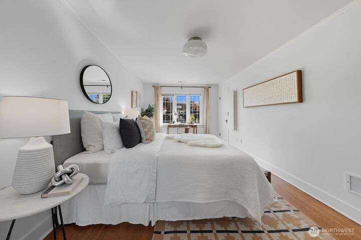 Nestled on a tree-lined boulevard in Queen Anne, this rare corner residence at Barcelona Court blends timeless Anhalt charm with modern comforts. One of the largest homes in the community, it features period details like hardwood floors, arched doorways, and abundant natural light from its southwest exposure. The spacious layout includes a formal dining room, stylish kitchen with stainless appliances, and two generous upstairs bedrooms. Enjoy the serene courtyard with lush landscaping, tranquil fountain, and semi-private patio/BBQ area. Includes 1-car garage and ample storage. Just blocks to cafes, parks, schools, and the Farmers Market—classic Queen Anne living at its best!