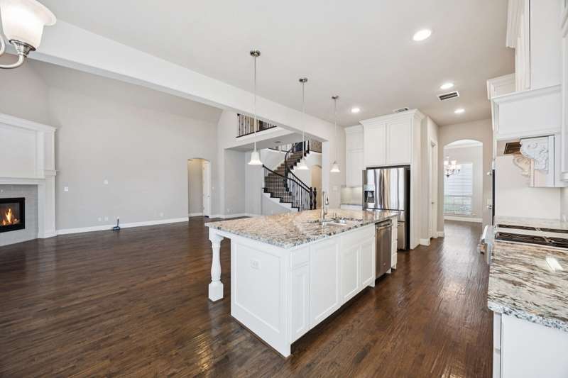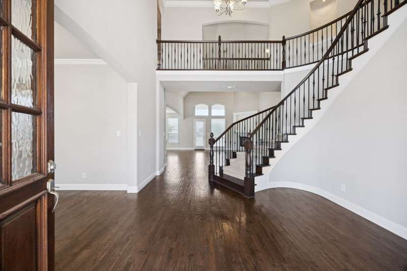 Welcome to this beautifully designed North facing home that blends timeless architecture w-contemporary updates in the highly desirable neighborhood of Phillips Creek. Step inside to a grand foyer featuring soaring ceilings, an elegant curved staircase w-wrought-iron railing, & rich hardwood floors that flow seamlessly throughout the main living areas. The open-concept design creates a sense of space and light. The family rm is a true showpiece, boasting a dramatic vaulted ceiling, cozy gas fireplace & a wall of windows that frame the backyard views. This space flows effortlessly into the gourmet kitchen, complete w-white cabinetry, granite countertops, stainless steel appliances, a double oven, & an island w-pendant lightingperfect for both entertaining & everyday living. Luxurious primary suite retreat w-spa-inspired en-suite bath & walk-in closet. Upstairs, youll find three generously sized bedrooms & two full baths, providing comfort and flexibility for family and guests. A spacious game room offers the perfect spot for family fun, casual gatherings, or a play area, while the dedicated media room is designed to deliver the ultimate movie-night experience. This home perfectly balances elegance, functionality, and comfortan ideal choice for modern living. Neighborhood has clubhouse, state-of-the-art fitness facility, fishing pond, walking trails, 2 pools, splash pad, Bocce ball, Volleyball, Texas backyard BBQ area, playgrounds & more! Get to know your neighbors in this active community that hosts many monthly events including movies and concerts in the park, food trucks, sunrise yoga, holiday events, scavenger hunts, and more! This is more than a neighborhood, this is a LIFESTYLE! HOA dues include front yard maintenance and ADT security system! This prime location is minutes from DNT, Hwy 121, Hidden Cove Marina featuring bike trails, kayaking, BBQ, cabins, boating, basketball, volleyball. Close to restaurants, shopping, Grandscape, The Star & Shops at Legacy.