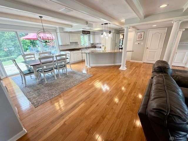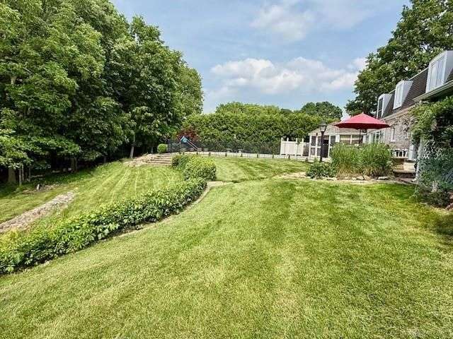Stunning 2 story 4-5 bedrooms, 4.5 baths. Full basement with large family room, new flooring 23, remodeled half bath/laundry room plus 2 additional rooms. First floor has beautiful open kitchen with grant countertops and 5x8 island. Large pantry, Breakfast area has coffee space and bar closets. Great room has stone surround wood fireplace and built in bookshelves, wood beams. Beautiful hard wood flooring new 23, throughout kitchen, breakfast area and great room. Dining room has built in China cabinet. Living room with wood fireplace, Grand staircase and back staircase 2nd floor, offers media room with Wet bar, refrigerator. Main bedroom suite has walk in closet, full bath with walk in shower plus additional study room. 2nd guest bedroom has private full bath. Additional 3rd bathroom with large tub and shower. Beautiful .6 acre with rolling lot, woods, backing to creek, in ground pool with safety fence and large pool house with gas fire pit. Pool 8 feet. Pool pump new 23, filtration system rebuilt 24, Main drain replaced 23. 2 Natural gas forced heat new Jan 23. Condenser for central air new 21. Gutter guard and downspouts new 22 ,Tool shed roof 22. 2 car attached garage. This is a joyful home that has been loved. Pool just opened so it's cleaning yet!