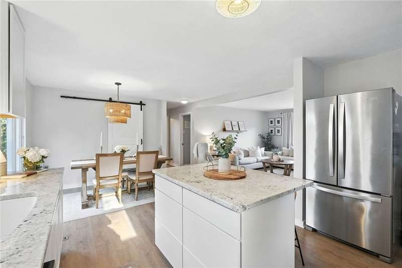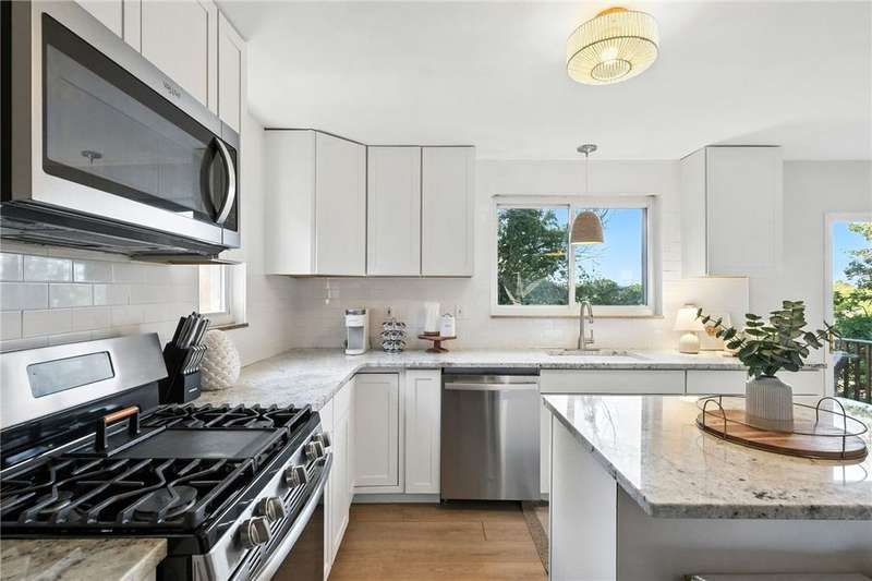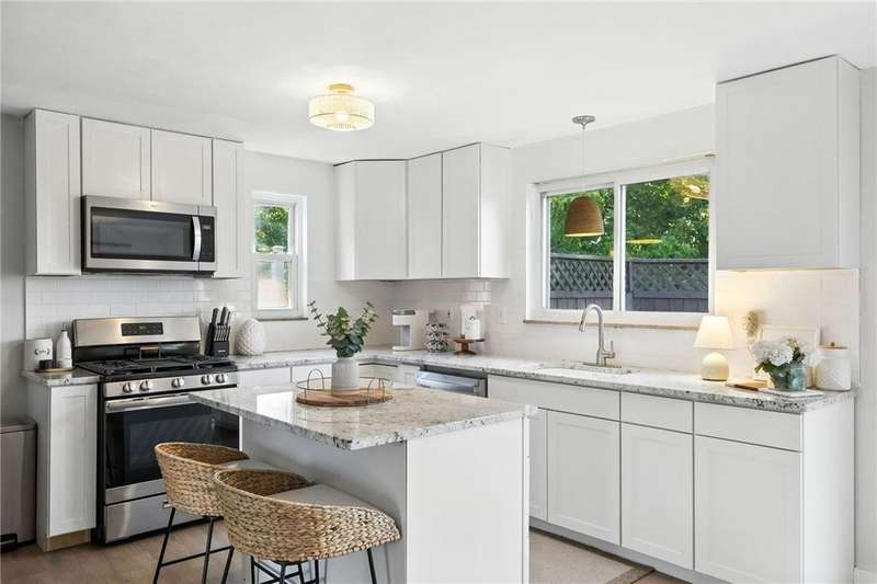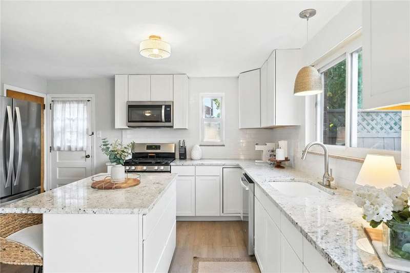 THE most adorable home in town! Charming brick on the outside and All-New Interior!! Engineered wood floors flow through the open ranch-style layout, creating a seamless, modern feel. The beautifully updated kitchen features a quartz island and countertops, stainless steel appliances, a spacious pantry, and convenient access to a large deck for outdoor entertaining. Two generous bedrooms offer comfort and versatility, while gorgeous custom tile baths add a touch of luxury. Outside, a table-top fenced yard and a covered patio provide low-maintenance beauty and privacy?the perfect outdoor retreat in a compact oasis. This home combines stylish updates with practical efficiency, making every inch count. Must-see for first-time buyers, downsizers, or anyone craving charm with contemporary comforts. Schedule your tour today!