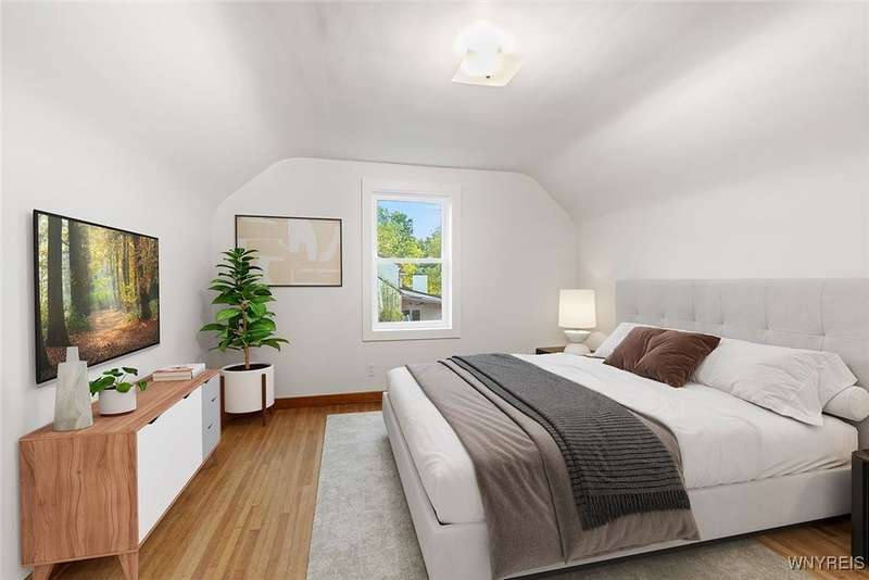 Welcome home to this charming 3-bedroom, 1-bath property that offers the perfect blend of convenience and natural beauty. While the home sits along a main road, step out back and you'll feel worlds away. The rare 1-acre lot opens to your own private woods with winding trails?an ideal retreat for morning walks, peaceful afternoons, or simply enjoying the sights and sounds of nature. It's a backyard sanctuary that provides privacy and a unique lifestyle you won't easily find elsewhere.Inside, you'll find hardwood floors, a freshly painted interior, an updated bath, and an efficient eat-in kitchen. Some photos have been virtually staged to highlight this welcoming layout, with just the right mix of comfort and functionality. Upstairs offers even more possibilities: a large bedroom and an unfinished second floor space that provides excellent storage or the opportunity to finish into a cozy hideaway. At the top of the stairs, a spacious open flex area is perfect for a home office, reading nook, hobby corner, or anything you can imagine.An oversized two-car garage is ideal for keeping snow off the cars this winter or utilizing as a workshop. Ideally located between Orchard Park, West Seneca, and East Aurora, this home is just minutes from the expressway, shopping, restaurants, recreation, and the Bills Stadium. Whether you're relaxing in your wooded backyard sanctuary, tinkering in the garage, or heading out to enjoy all that the area has to offer, this home provides the best of both worlds?seclusion and accessibility.