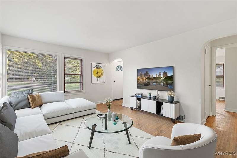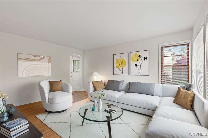 Welcome home to this charming 3-bedroom, 1-bath property that offers the perfect blend of convenience and natural beauty. While the home sits along a main road, step out back and you'll feel worlds away. The rare 1-acre lot opens to your own private woods with winding trails?an ideal retreat for morning walks, peaceful afternoons, or simply enjoying the sights and sounds of nature. It's a backyard sanctuary that provides privacy and a unique lifestyle you won't easily find elsewhere.Inside, you'll find hardwood floors, a freshly painted interior, an updated bath, and an efficient eat-in kitchen. Some photos have been virtually staged to highlight this welcoming layout, with just the right mix of comfort and functionality. Upstairs offers even more possibilities: a large bedroom and an unfinished second floor space that provides excellent storage or the opportunity to finish into a cozy hideaway. At the top of the stairs, a spacious open flex area is perfect for a home office, reading nook, hobby corner, or anything you can imagine.An oversized two-car garage is ideal for keeping snow off the cars this winter or utilizing as a workshop. Ideally located between Orchard Park, West Seneca, and East Aurora, this home is just minutes from the expressway, shopping, restaurants, recreation, and the Bills Stadium. Whether you're relaxing in your wooded backyard sanctuary, tinkering in the garage, or heading out to enjoy all that the area has to offer, this home provides the best of both worlds?seclusion and accessibility.Stop by the open house Saturday, September 27th from 1pm-3pm and see this unique property in person!