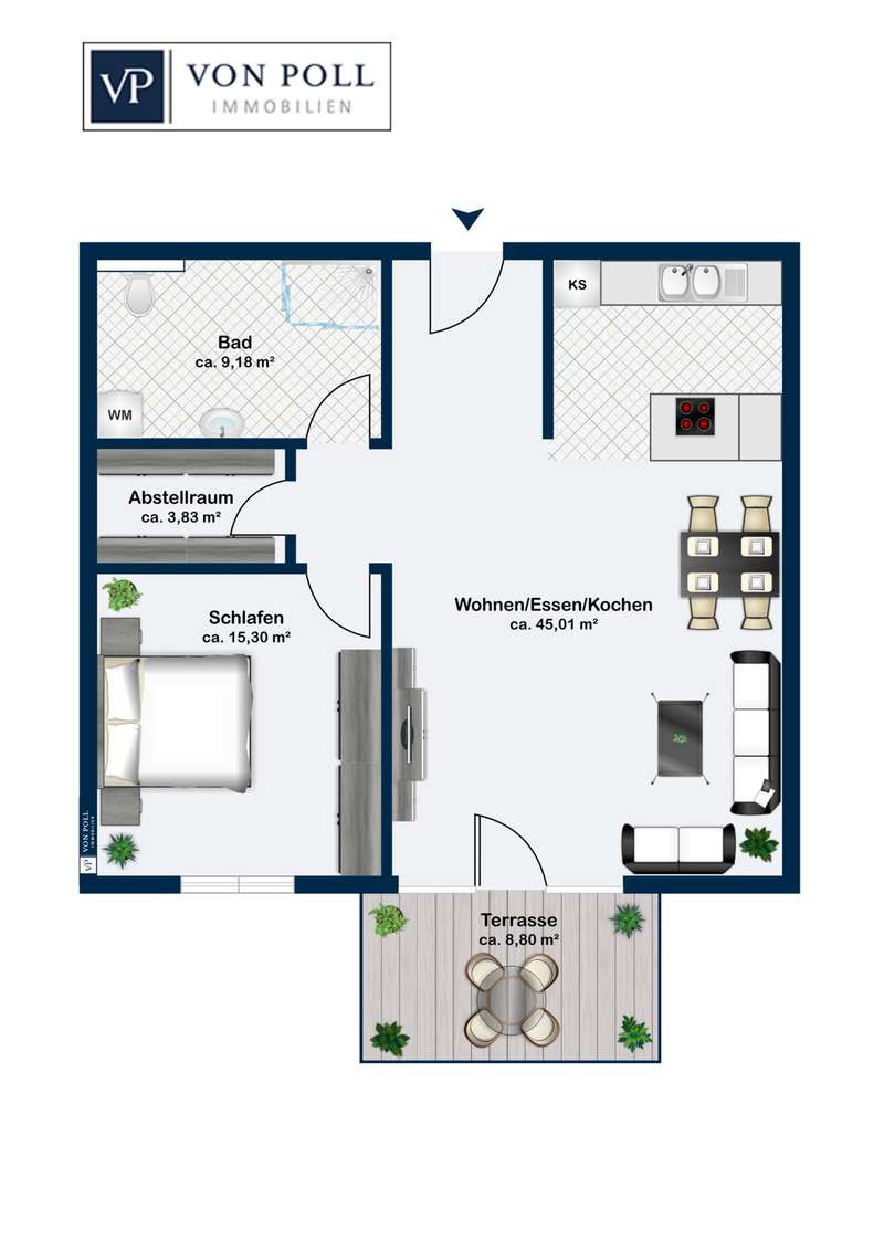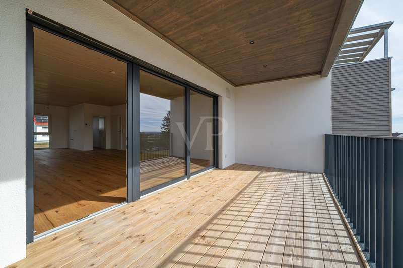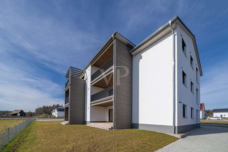 This modern new-build project is situated in a quiet and natural location in Flachslanden and impresses with its efficient KfW 40 standard and high-quality overall fittings. The complex comprises a total of just nine apartments, which are characterized by well thought-out architecture and first-class construction quality. The units offer an attractive selection of floor plans: 2-room, 3-room and spacious 4.5-room apartments that provide an ideal home for singles, couples and families alike. The project has already been completed, so nothing stands in the way of moving in! Both young and old will find a new home here. The entire complex and the apartments have been designed to be barrier-free. All floors are accessible via the central elevator. In addition, all bathrooms feature a level-access shower. The external bicycle boxes are also accessible at ground level and offer additional storage space. The timber construction gives the building a natural, warm appearance and also ensures a high level of energy efficiency. In order to guarantee standard living in the future, the new nine apartments were built using sustainable construction methods. Thanks to regenerative energy sources such as a photovoltaic system with storage, the local heating supply and the ventilation system with heat recovery, the apartments can definitely be described as future-proof and independent. The newly created floor plans impress with their clear room layout. In addition, the generous amount of light creates an atmosphere of harmony and elegance. The floor-to-ceiling south-facing windows provide a view of the greenery and convey a boundless feeling of living. Your own four walls offer a large, open area for living, dining and cooking. Attached to this are the respective retreat areas with plenty of space for work, guests and sleeping. Almost all bathrooms also have natural light. A floor-level shower with glass shower partition is naturally provided in all bathrooms. The 4.5-room apartments also have a bathtub. Lingering on the garden terraces and the well-proportioned south-facing balconies is particularly enjoyable. As soon as you enter your new apartment, you should feel the security and warmth that make a home. Particular attention was paid to the quality of the furnishings. High-quality real wood parquet has been laid in the living and sleeping areas and the bathrooms are tiled in modern anthracite. All residential units have additional storage space in the bicycle boxes and two free parking spaces. This new-build project in Flachslanden is ideal for anyone who wants to combine modern living with sustainability and a high level of comfort. A perfect home for people who value quality, energy efficiency and a residential location close to nature. See this pioneering project for yourself at a personal viewing appointment on site. We look forward to seeing you!