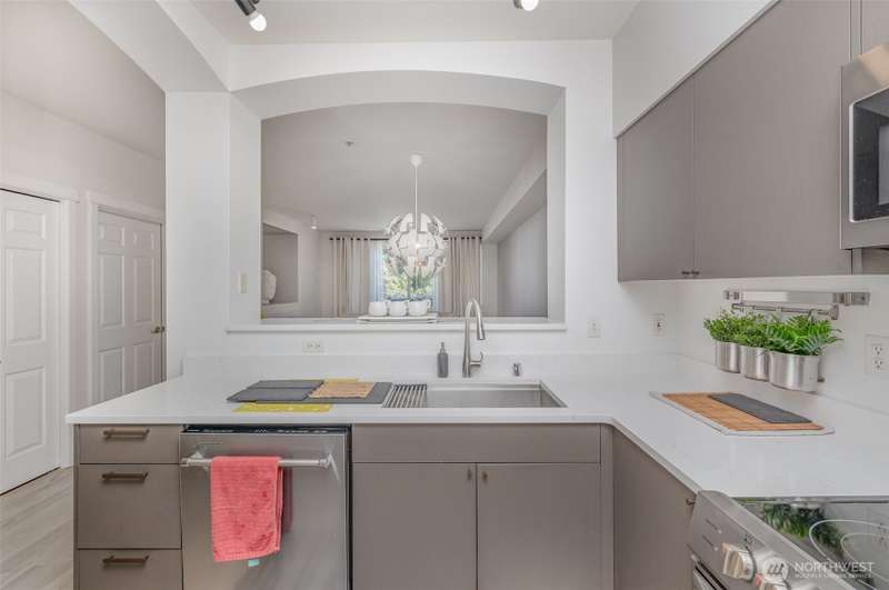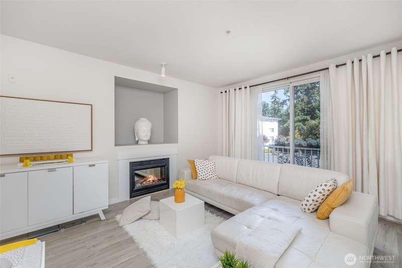 Welcome to this spacious 1-bedroom, 1-bathroom condo at ParTerra in Newcastle! With a sleek, modern feel and a great color palette throughout, this home is move-in ready. The stylish kitchen boasts stainless steel appliances, ample counter and cabinet space, and a convenient pass-through to the living room. The living area features a cozy fireplace, while the large primary bedroom offers plenty of space for a seating area, office, or extra storage. The spa-like bathroom includes dual sinks and a separate shower. Enjoy the convenience of underground parking and access to fantastic community amenities—playground, hot tub, and gym. Perfect for those seeking a serene, modern lifestyle with top-tier amenities!