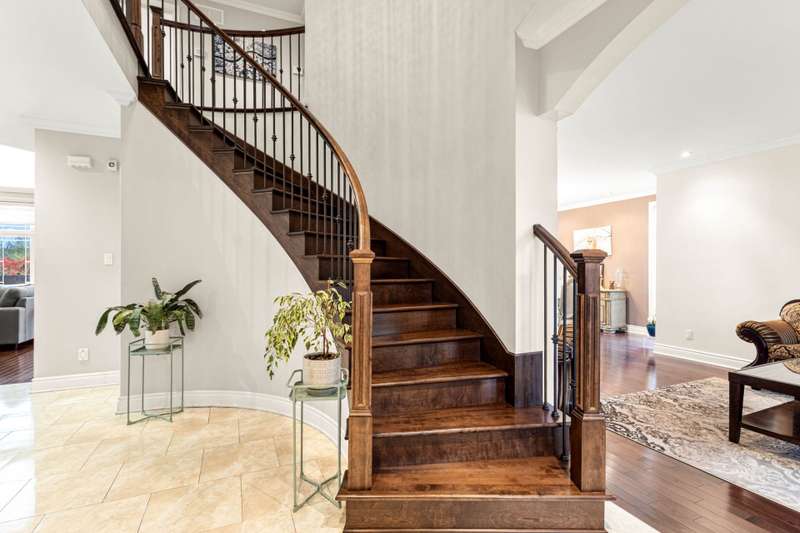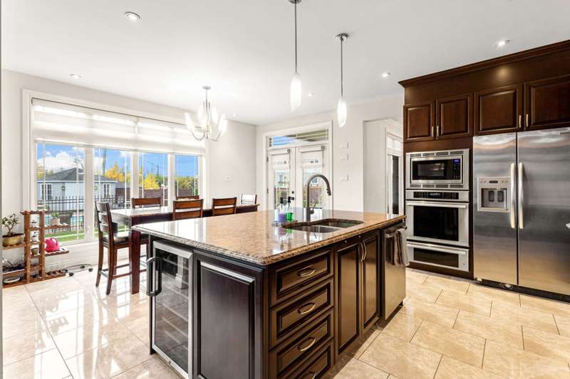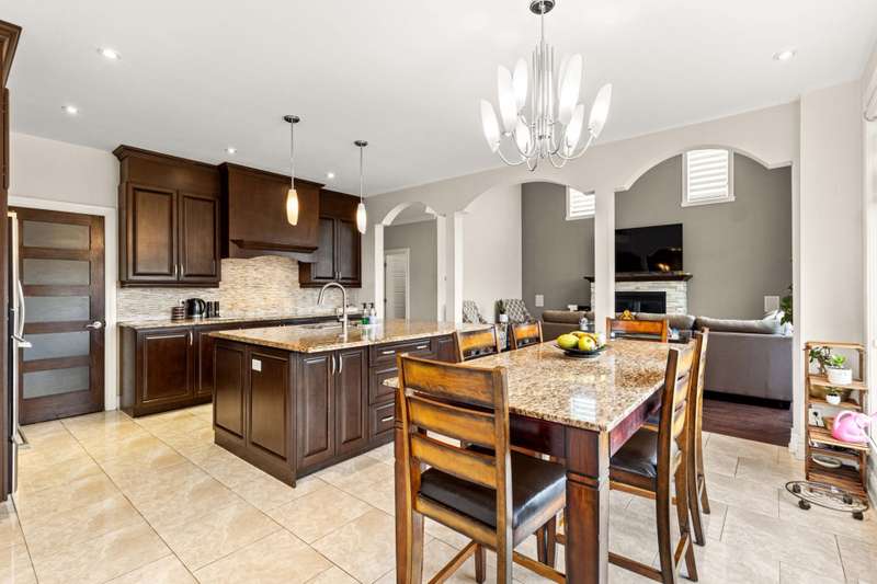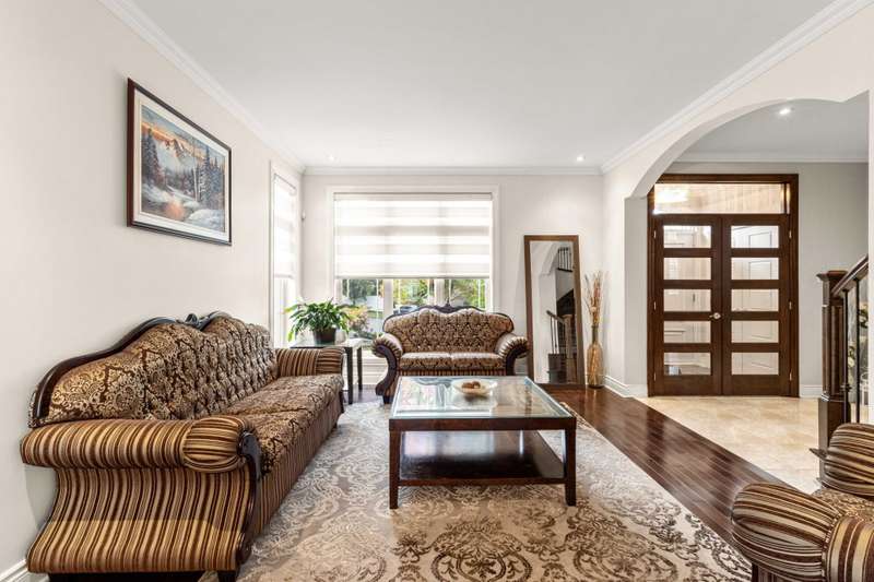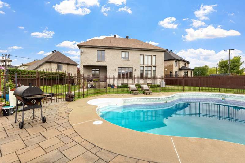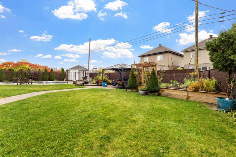 Welcome to this custom-built luxury home offering over 4,400 sq. ft. of living space on a landscaped corner lot of 11,000+ sq. ft. Featuring a stone facade, brick on all sides, paving-stone driveway, and elegant curb appeal. Inside, a grand entrance with ceramic floors and a circular staircase opens to an airy main floor with an open-concept kitchen, dining, and family room with cathedral ceilings and large windows. Includes 5 bedrooms, 4 full baths, 1 powder room, high-end finishes, finished basement, fenced yard with no rear neighbours, and a heated inground pool. Near parks, schools, and amenities.