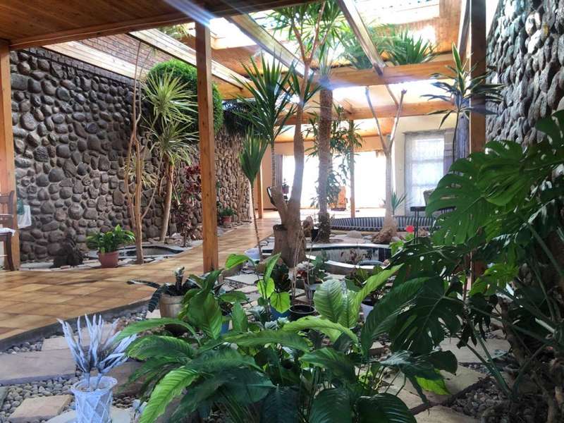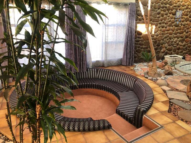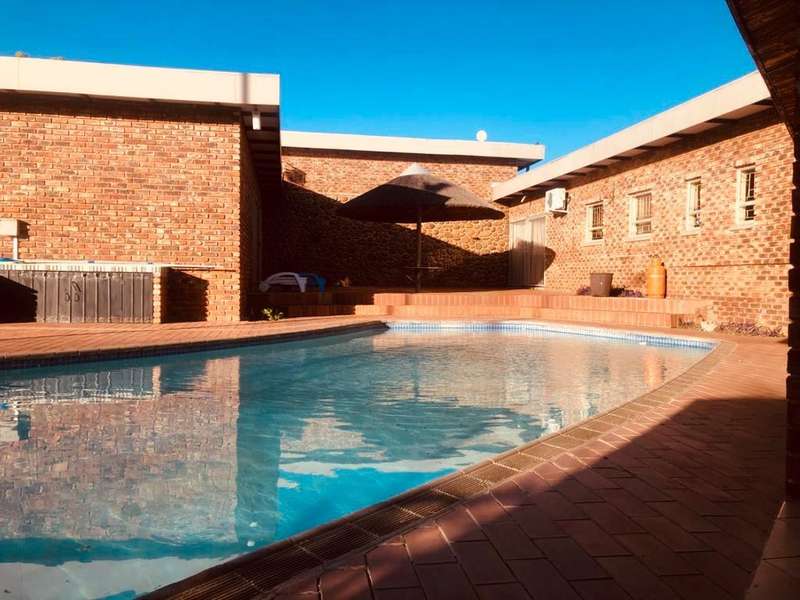 One of kind home with elegant entrance hall, central atrium, gentleman's study, formal dining room, well-sized living room and neat kitchen with granite tops, an electric and gas hob as well as eye level oven. Well-spaced north-facing bedrooms, consisting of a main bedroom with walk-in closet, air conditioning unit, dressing room and full en suite bathroom, 3 guest rooms sharing 2 bathrooms as well as a 4th guestroom with it's own en suite bathroom. Entertainment on this spacious property will only be a joy with a lovely braai area, entertainment room as well as shimmering blue pool and tennis court. Double tandem garage allows for safe parking for all vehicles and toys with wheels. Should you wish to experience the feeling of a smallholding in this upmarket suburb, you can spend some time in the green house, fruit orchard or vegetable garden - with half a hectare in size it would be easy!