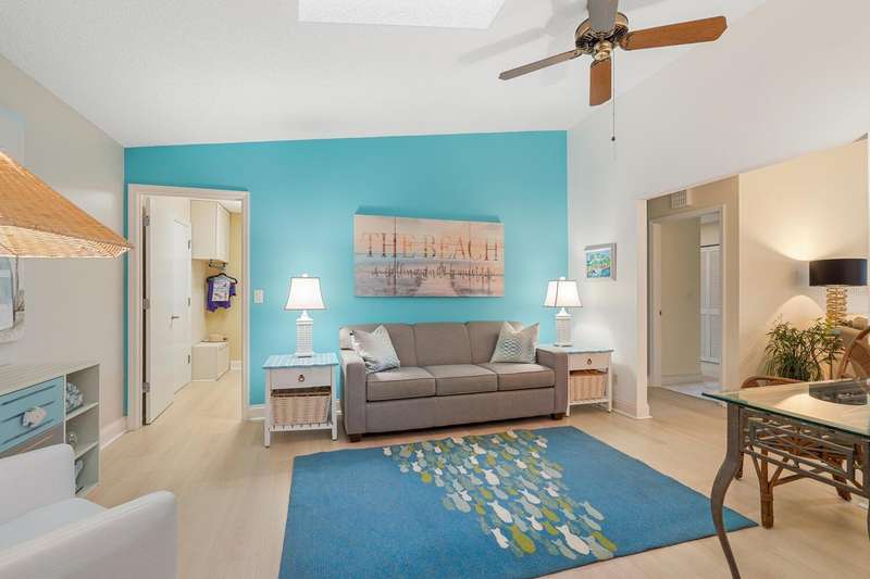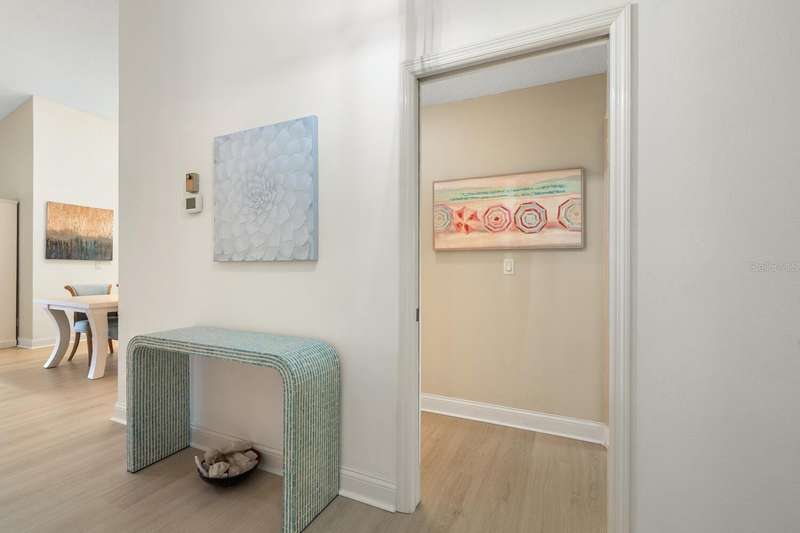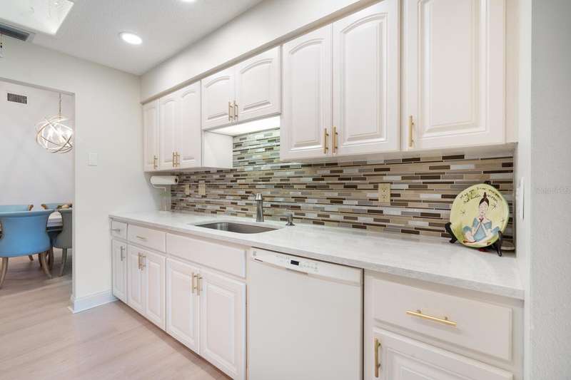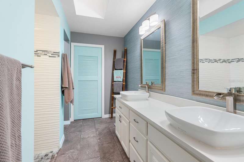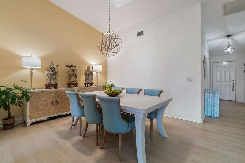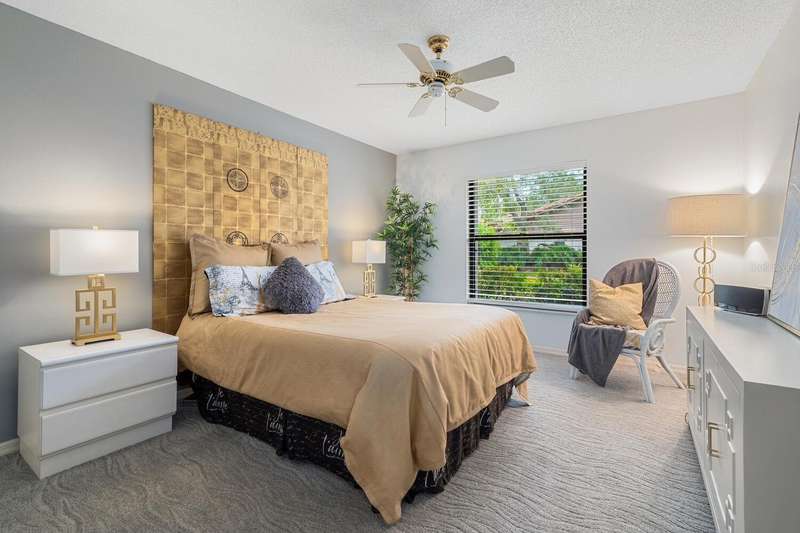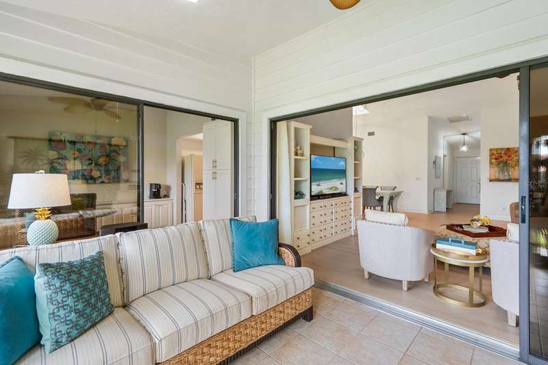 Welcome to this beautifully updated and thoughtfully designed villa in the highly desirable 55+ maintenance free community of Lakeshore Village in Sarasota. Just minutes from world-famous Siesta Key Beach and the vibrant downtown area, this 2-bedroom, 2-bath plus family room/den offers 2024sf of comfortable, stylish living with serene lake views. The open concept living space is highlighted by light-colored Karastan luxury vinyl flooring that runs seamlessly throughout the main areas, creating a fresh, airy atmosphere that’s both tasteful and practical. The living area features vaulted ceilings and skylights, enhancing the sense of openness and natural light. This space flows into the Four-Season Florida room, where walls of glass provide tranquil views of Heron Lake. The updated kitchen features Cambria quartz countertops, a glass tile backsplash, and brush gold hardware. A GE stainless steel 5-burner range and matching hood add style and function, while a tray ceiling with whimsical crystal ball accents adds a touch of personality. The breakfast nook includes built-in cabinets, quartz counters, and a large picture window overlooking the lake. The smart split-bedroom floor plan offers privacy for both owners and guests. The primary suite is a true retreat, complete with brand-new carpet, a large window with lake views, and sliders leading to the Florida room. You’ll love the two spacious walk-in closets, and renovated bath, accessed via a modern barn door, featuring dual above-counter sinks, Cambria quartz counters, walk-in shower, and a skylight that fills the space with natural light. The spacious guest suite, tucked away behind a pocket door, includes a private bath for added privacy. Off the foyer, double pocketing doors open into a charming family room designed in a coastal style with vaulted ceilings, skylight, offering even more living space or extra sleeping space for guests. The community offers resort-style amenities including clubhouse, tennis and pickle ball courts, heated salt water pool, group activities, all in a pet free environment.