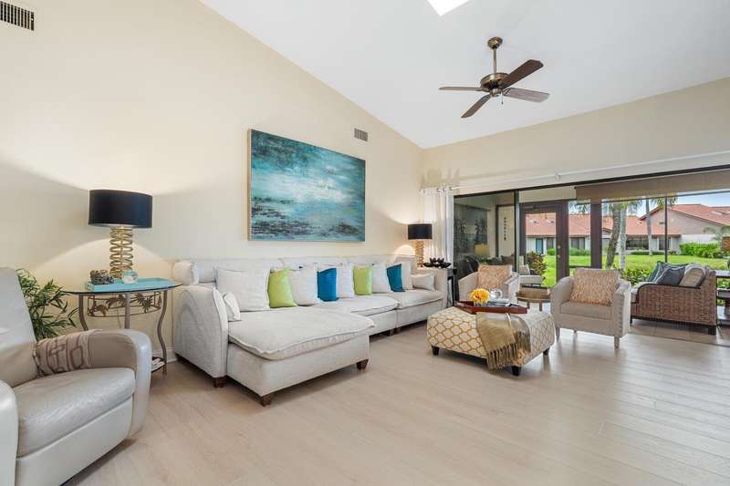 Welcome to this beautifully updated and thoughtfully designed villa in the highly desirable 55+ maintenance free community of Lakeshore Village in Sarasota. Just minutes from world-famous Siesta Key Beach and the vibrant downtown area, this 2-bedroom, 2-bath plus family room/den offers 2024sf of comfortable, stylish living with serene lake views. The open concept living space is highlighted by light-colored luxury vinyl flooring that runs seamlessly throughout the main areas, creating a fresh, airy atmosphere that’s both tasteful and practical. The living area features vaulted ceilings and skylights, enhancing the sense of openness and natural light. This space flows into the Four-Season Florida room, where walls of glass provide tranquil views of Heron Lake. The updated kitchen features Cambria quartz countertops, a glass tile backsplash, and brush gold hardware. A GE stainless steel 5-burner range and matching hood add style and function, while a tray ceiling with whimsical crystal ball accents adds a touch of personality. The breakfast nook includes built-in cabinets, quartz counters, and a large picture window overlooking the lake. The smart split-bedroom floor plan offers privacy for both owners and guests. The primary suite is a true retreat, complete with brand-new carpet, a large window with lake views, and sliders leading to the Florida room. You’ll love the two spacious walk-in closets, and renovated bath, accessed via a modern barn door, featuring dual above-counter sinks, Cambria quartz counters, walk-in shower, and a skylight that fills the space with natural light. The spacious guest suite, tucked away behind a pocket door, includes a private bath for added privacy. Off the foyer, double pocketing doors open into a charming family room designed in a coastal style with vaulted ceilings, skylight, offering even more living space or extra sleeping space for guests. The community offers resort-style amenities including clubhouse, tennis and pickle ball courts, heated salt water pool, group activities, all in a pet free environment.