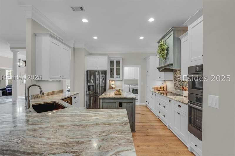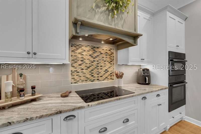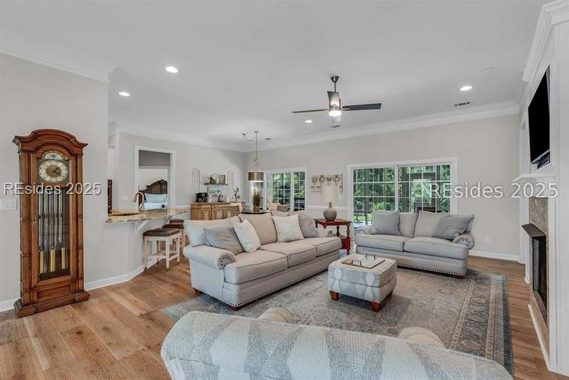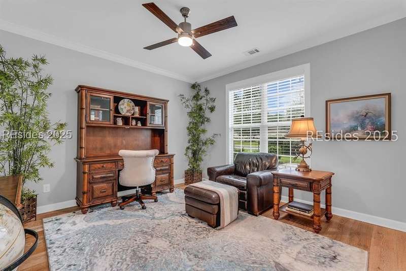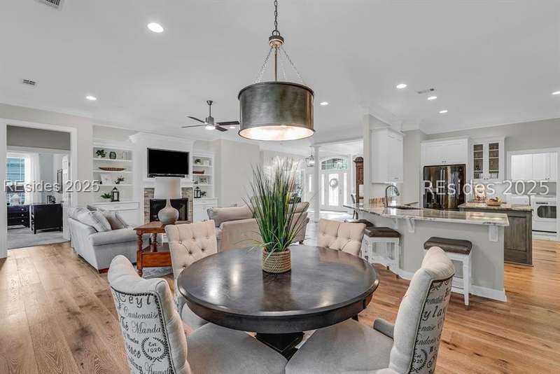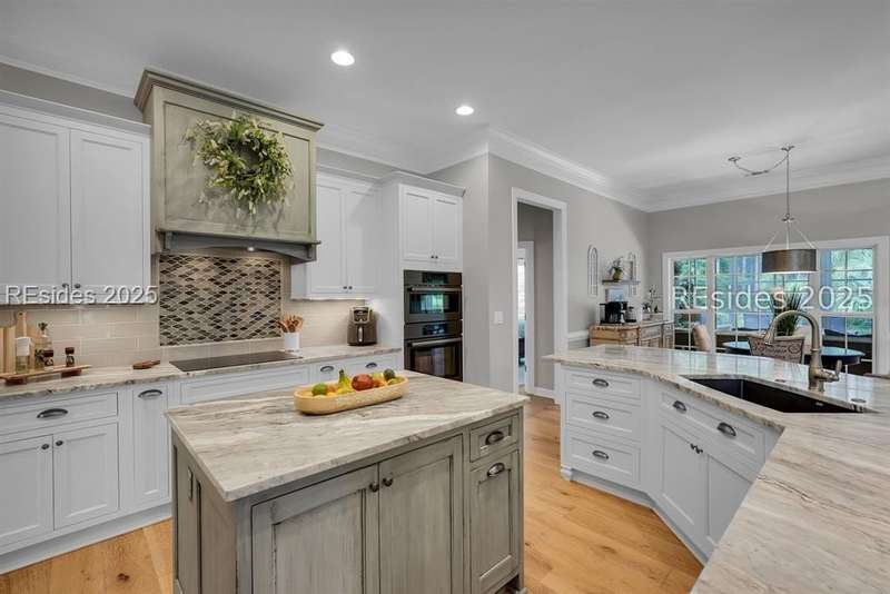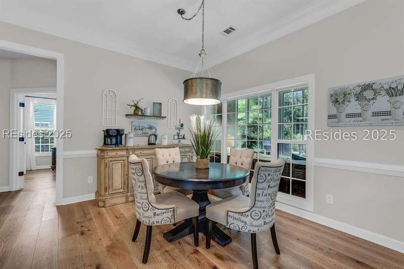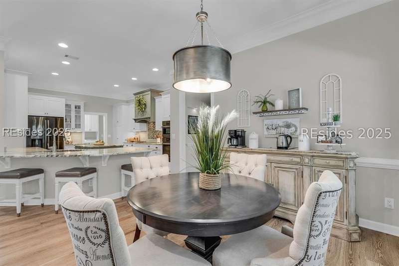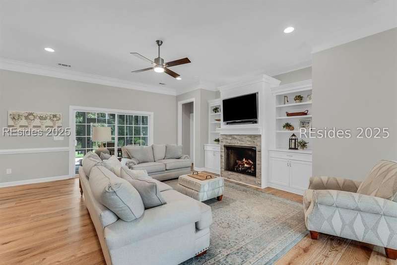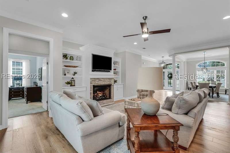 Beautifully updated Chartwell model in desirable Baynard Park. This impeccably maintained home welcomes you with a landscaped yard and beveled-glass entry. Light-filled, open-concept living with crown molding and wood floors throughout the main level. Dining room and French-doored office/den at the front, flowing into a family room with gas fireplace and custom built-ins. Chefs kitchen features 42" cabinets with soft-close doors and above and below cabinet lighting, pull-outs, granite counters, large island, tile backsplash, counter height seating, breakfast nook, and high-end appliances including a 5-burner cooktop with custom hood and built-in convection oven/microwave. Primary suite offers raised vanities, tiled shower, soaking tub, tile flooring, and custom walk-in closet. Two guest rooms share a full bath. A convenient half bath located off the family room. Bonus room above garage is perfect for a 4th bedroom or flex space. Enjoy the screened porch with vinyl insets, tiled patio, large, fenced yard and private nature preserve views. Oversized 2-car+ garage with storage and utility sink completes this exceptional home.