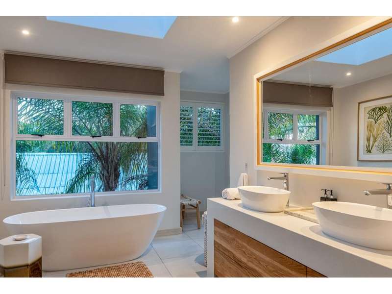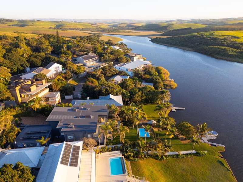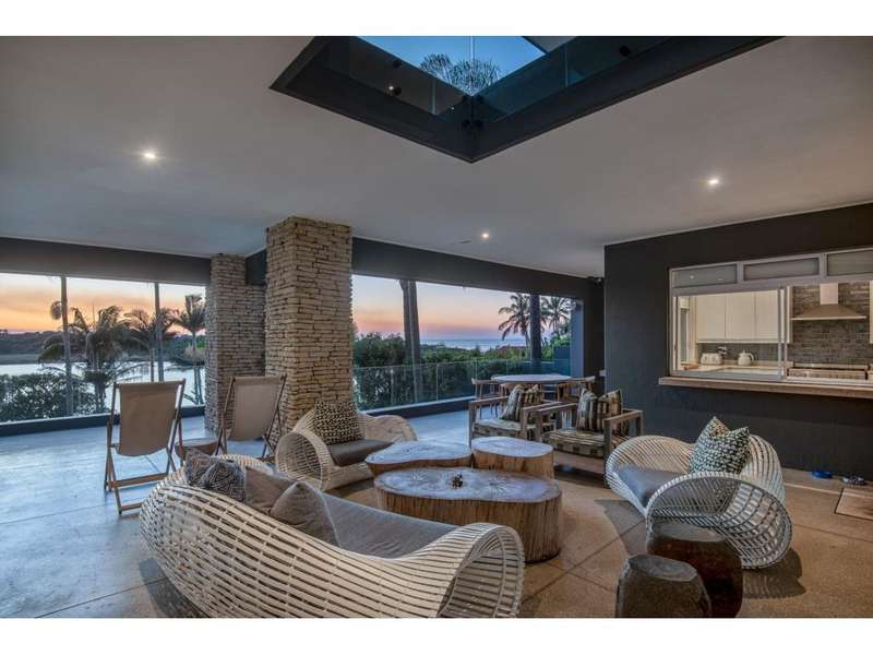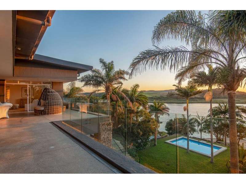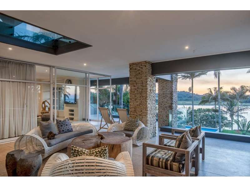 Exclusive to Chas Everitt - Welcome to an extraordinary lagoon-front estate that epitomises luxury and elegance. This once-in-a-lifetime property offers breathtaking views, unparalleled comfort, and exquisite design, perfect for those seeking an exceptional lifestyle. Fit for royalty, the Princess Charlene of Monaco occupied this property for 3 months whilst on an extended visit to South Africa. Grand Entrance As you enter the home, a magnificent, grand entrance hall greets you, featuring a broad staircase that elegantly divides the house into its upper and lower levels. Ascend the staircase to find the luxurious sleeping quarters, or descend to the expansive living areas designed for entertainment and relaxation. Upper Level The upper level houses four beautifully appointed bedrooms. The main bedroom is a sanctuary of indulgence, boasting an en-suite bathroom complete with a freestanding bathtub, double basins, double alfresco showers, and a private toilet. One additional bedroom enjoys a full en-suite bathroom, whilst the remaining two bedrooms share a spacious full bathroom, ensuring comfort and privacy for all residents. All of the bedrooms offer doors leading out to a generous covered balcony which enjoys sweeping lagoon, ocean and coastal forest views. Middle Level The middle level is dedicated to seamless living and entertainment. It features a sophisticated dining area, a cosy TV room for intimate gatherings, and a lively games room for family fun. The front of the home showcases a covered balcony, offering stunning views of the lagoon, while the back of the home includes a protected entertainment area which features a built-in pizza oven and is perfect for year-round enjoyment. The gourmet kitchen is a chef's dream, equipped with a gas hob, electric oven, and extractor. A massive scullery provides ample space for all appliances and additional storage, making meal preparation and clean-up a breeze. Lower Level The lower level is a versatile self-contained flatlet, ideal for guests or extended family. It features a kitchenette, dining area, lounge, en-suite bedroom, and a bunk room with three adult-sized bunk beds. The flatlet also includes a games room and a bathroom with a toilet, basin, and shower. A protected patio overlooks the meticulously maintained gardens and pool area, creating a serene retreat. Outdoor Paradise Step outside to discover an idyllic alfresco dining area at the bottom of the lawn, perfectly positioned to take in the tranquil lagoon views. The property?ÇÖs gardens and pool area are impeccably maintained, offering a lush, private oasis and there is a private jetty on the lagoon for mooring any lagoon-going craft. Additional Features This magnificent property is complete with three garages, a generous carport, ample uncovered parking, a full solar and inverter system, domestic quarters, a comprehensive alarm system, and CCTV for added security. The house is being sold fully furnished and equipped, including two boats and a jet ski, providing the ultimate in luxury living and recreation. Don?ÇÖt miss this rare opportunity to own a truly exceptional lagoon-front estate, where every detail has been meticulously crafted to offer the finest in luxury living.