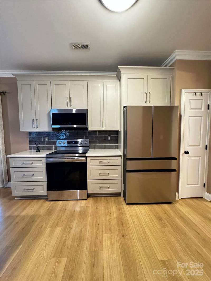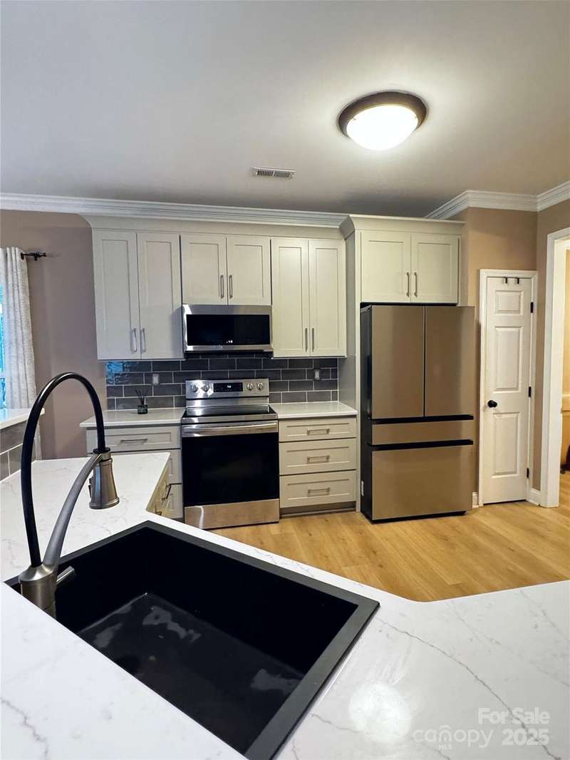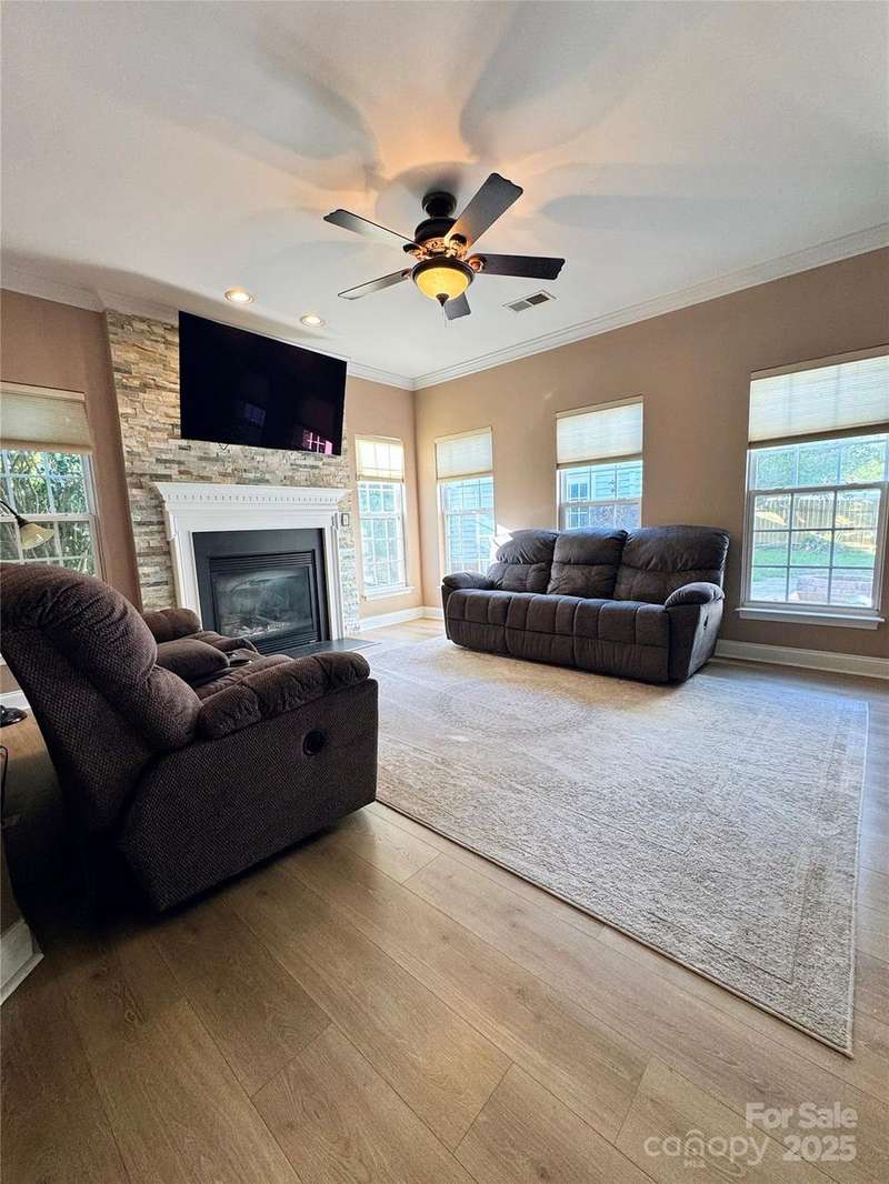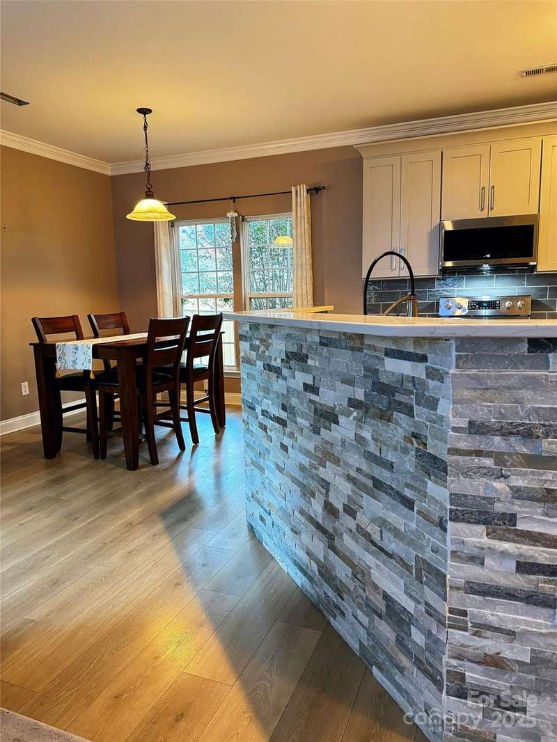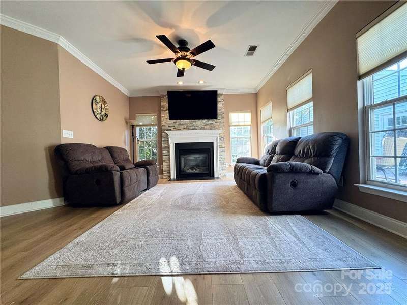 Motivated sellers for this charming 3 bedroom 2 1/2 bath in desired Huntersville neighborhood, Tanners Creek. Features include a main floor private office, new 6-foot privacy fence installed in 2025. gas log fireplace, nine-foot ceilings on first level along with updated Mohawk flooring, slow close 42-inch kitchen cabinets with slow close drawers, quartz countertops and ledge stone accents along the bar and fireplace. A new roof was installed at the home and the detached garage in 2021. Enjoy a quick walk to the HOA managed pool and dog park. This is a prime corner lot located near the front of the neighborhood. The home is central to schools, freeways, the airport and wonderful shopping centers.