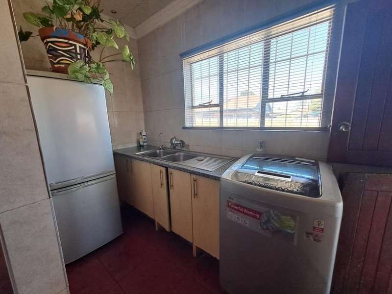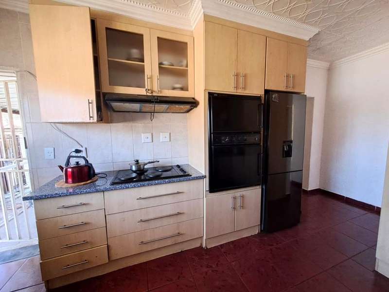 Low maintenance 3-Bedroom House for Sale in Masada! Welcome to this beautiful family home in the peaceful neighborhood of Masada. As you step inside, you'll be greeted by a spacious open-plan lounge and dining area, perfect for entertaining. The living space opens directly to a double garage, offering convenience and easy access. The modern kitchen is a chef?ÇÖs dream, boasting ample cupboard space, a scullery, and a separate laundry area. The sunny bedrooms are adorned with stylish laminated flooring, elegant chandeliers, and modern ceilings, creating a warm and luxurious atmosphere. The main bedroom features an en-suite bathroom, while a second full bathroom serves the remaining bedrooms. Outside, the property sits on a generous 1000m?? stand, offering plenty of space for the whole family. Additional features include two carports, an alarm system, burglar bars, and outside security beams, ensuring peace of mind. This home is the perfect combination of comfort, security, and style. Don?ÇÖt miss out?Çöschedule a viewing today!