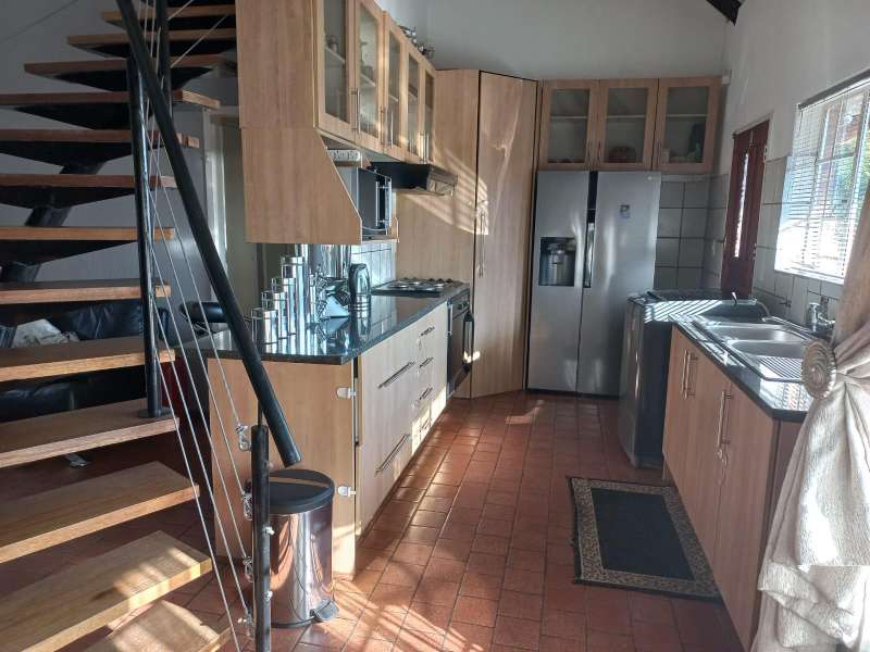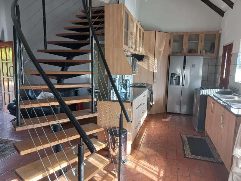 Located on the North part of Suideroord, this thatched home offers a warm reception with open plan tiled lounge with fireplace, dining and fitted kitchen.
