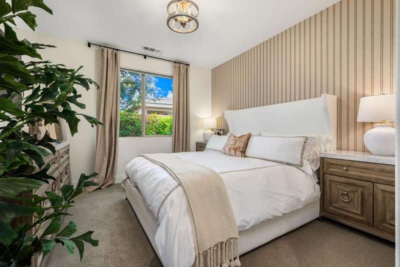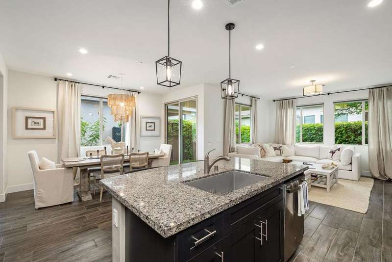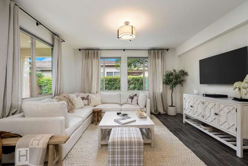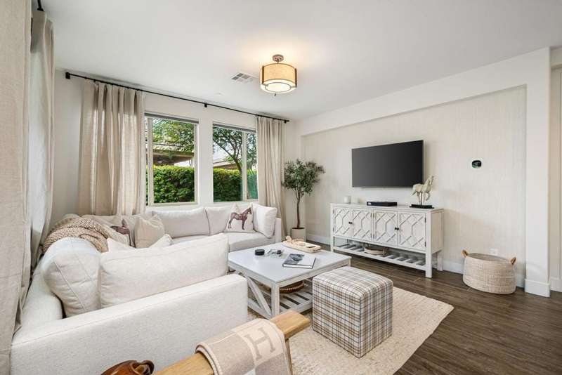 Located in the 55+ area of the Trilogy Polo Club community and close to the clubhouse, this 2019 TURNKEY open-concept 'Muros' Resort Collection model includes upgrades such as tile flooring throughout most of the home, ceiling fans, upgraded espresso cabinetry with soft-close doors and drawers, custom painted interior doors and more! Suited for entertaining, the kitchen features GE stainless steel appliances, 5-burner gas range, prep island (with pendant lighting and bar seating), Frigidaire refrigerator/freezer, granite island & quartz countertops, decorative subway tile backsplash and a single basin sink. The spa-inspired primary bath has an oversized floor to ceiling tiled shower stall with a bench, his & hers undermount sinks and Moen fixtures. Upper and lower cabinetry, as well as two desk spaces in the open office area, can be used to work on projects or to check emails. An extended wrap-around pavered patio with two seating areas in the backyard is perfect for enjoying a morning cup of coffee or a glass of wine as the sun sets in the evening. The attached two car garage has four storage shelving racks for your belongings. Low HOA dues=$245/mo. Opt. club membership transfer fee=$1,875 (vs. new membership of $12,500). Club amenities include tennis/pickleball courts, fitness center, resort & lap pools, poker/billiards room, and artisan/culinary studios. Community also features putting green, bocce ball court, large chess game area, picnic areas, etc.