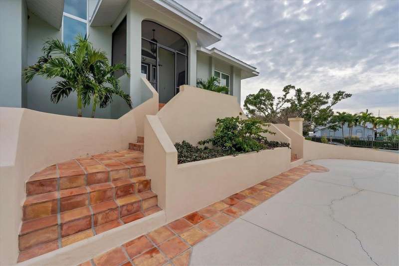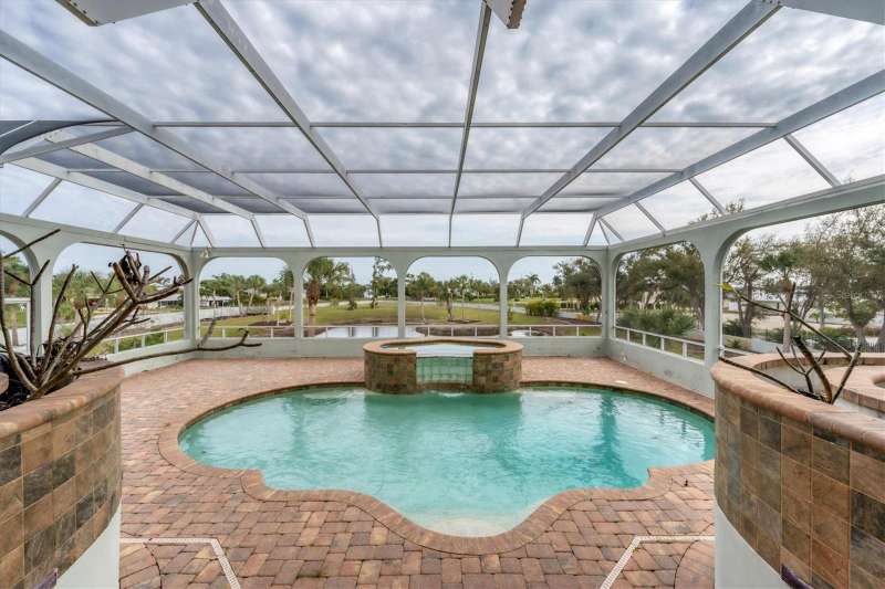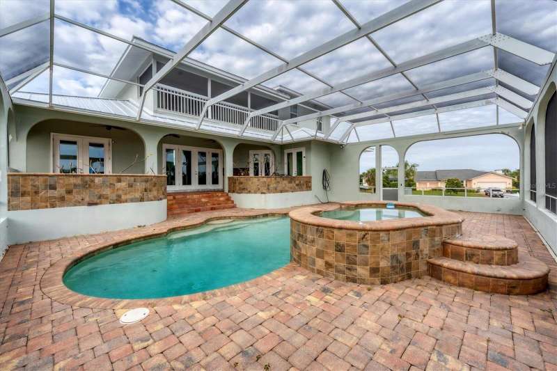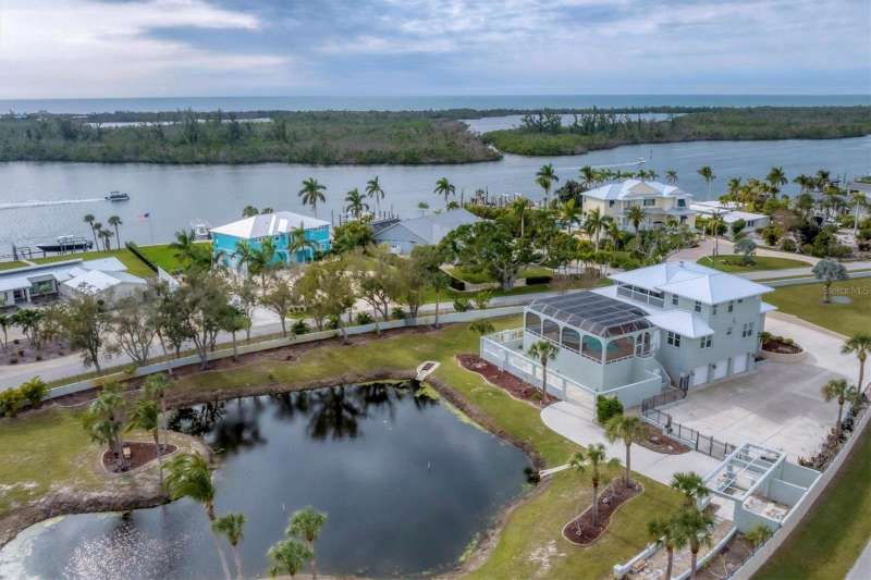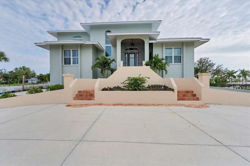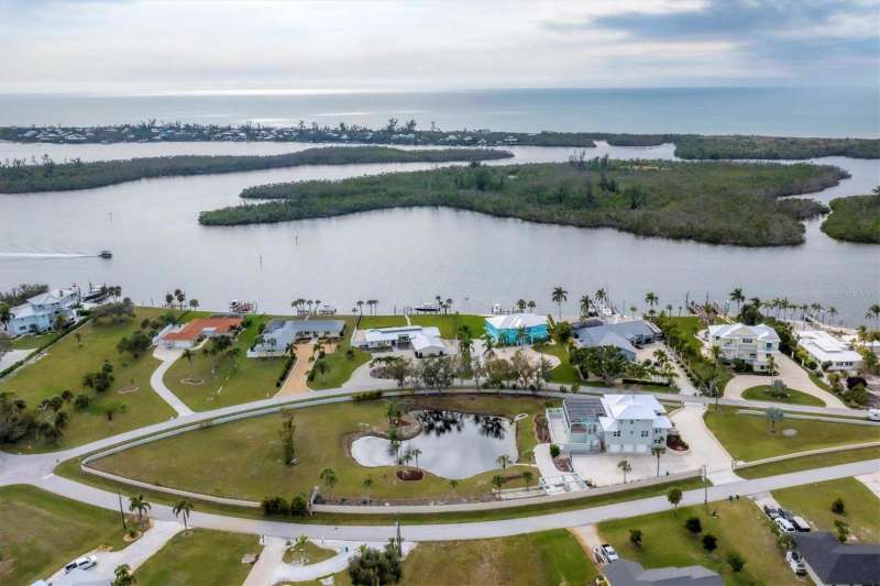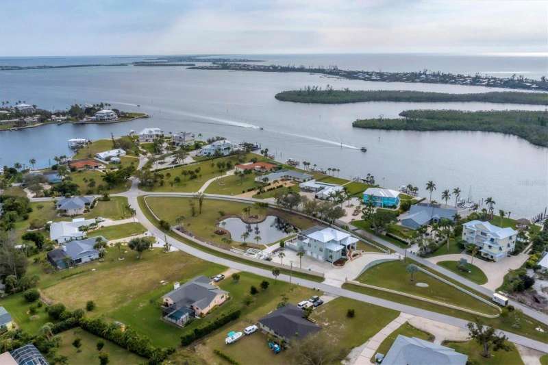 Significant renovation work has just been completed and new photos are now on MLS. Incredibly rare walled compound in the historic Vanderbilt developed neighborhood of Cape Haze. Beautiful Mediterranean style home is across the street from the Intracoastal Waterway with sensational partial views and a brand new standing seam metal roof. The spectacular property grounds include about 1.76 acres that could be subdivided for a second home to be built or split off. There's an expansive circular driveway, oversized three-bay garage, a private manicured lagoon with fountains, a gazebo/picnic area, 2,000 square foot screened lanai with an elevated pool and eight person spa that affords views of the water, all surrounded by 1,500 feet of privacy wall. The grand interior features about 3,500 sq.ft., three bedrooms and bathrooms, private office/den, 22 foot ceilings, and a completely renovated kitchen with custom cabinetry. Some drywall work is still needed in the garage ground level. Its a great situation for someone wanting to have a like-new home with their own custom design style and not have to wait more than two years for a new construction. The elegant neighborhood showcases tree-lined streets with towering banyans and large-acreage properties. A short walk to the Association kayak launch or quick boat trip to the 400 ft of private beach that's next to the Don Pedro State Park. Enjoy the ultimate coastal lifestyle being just minutes from Boca Grande, miles of pristine sandy beaches, three full service marinas, essential shopping, plentiful dining options, dozens of golf courses, and world-class fishing and boating.