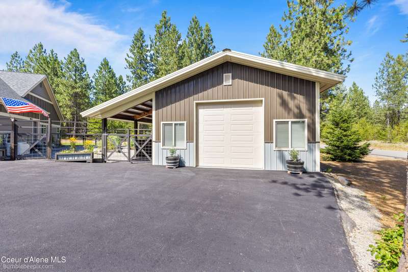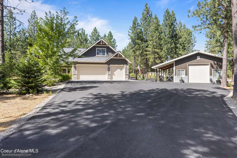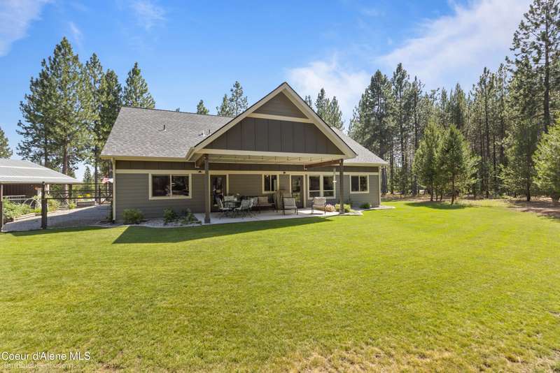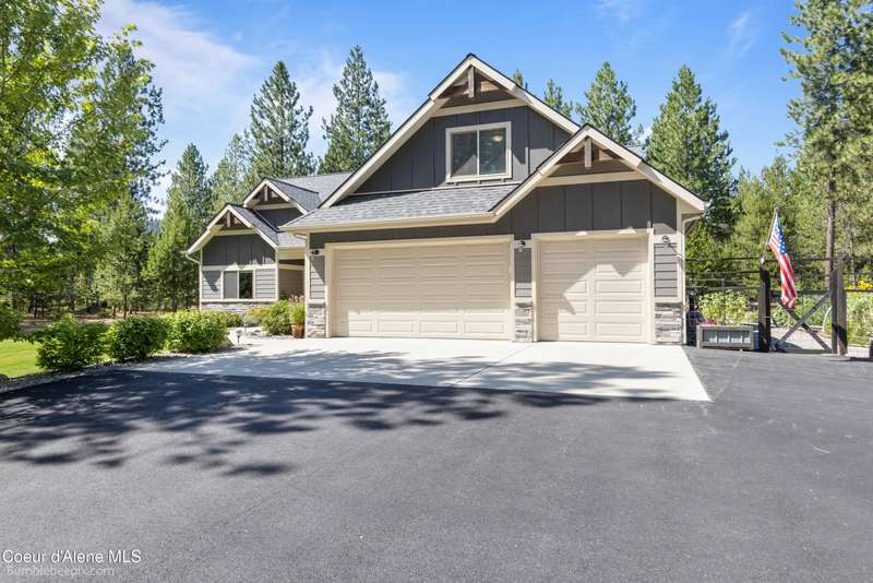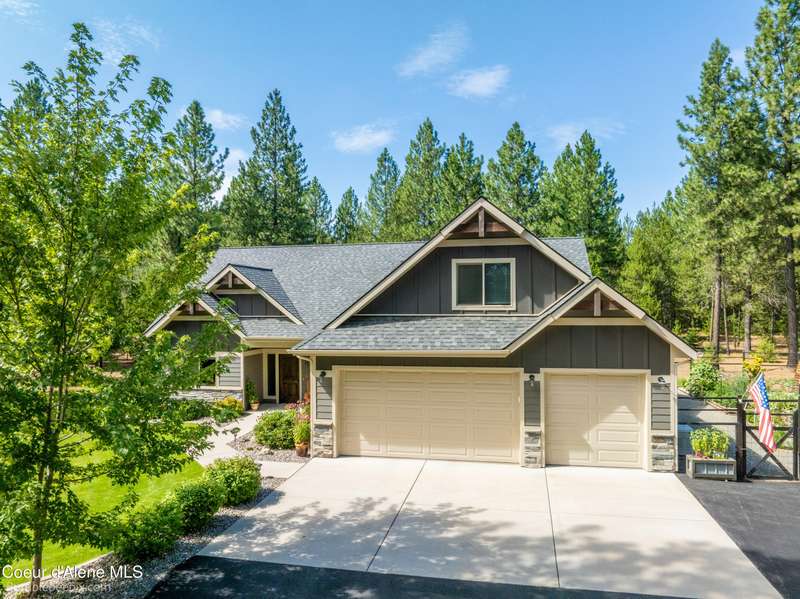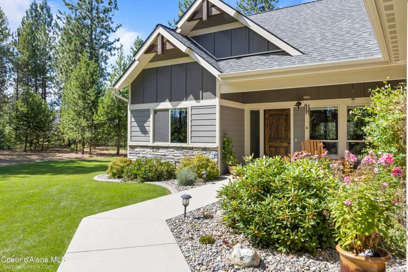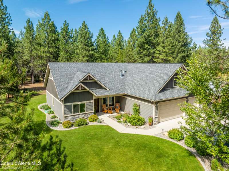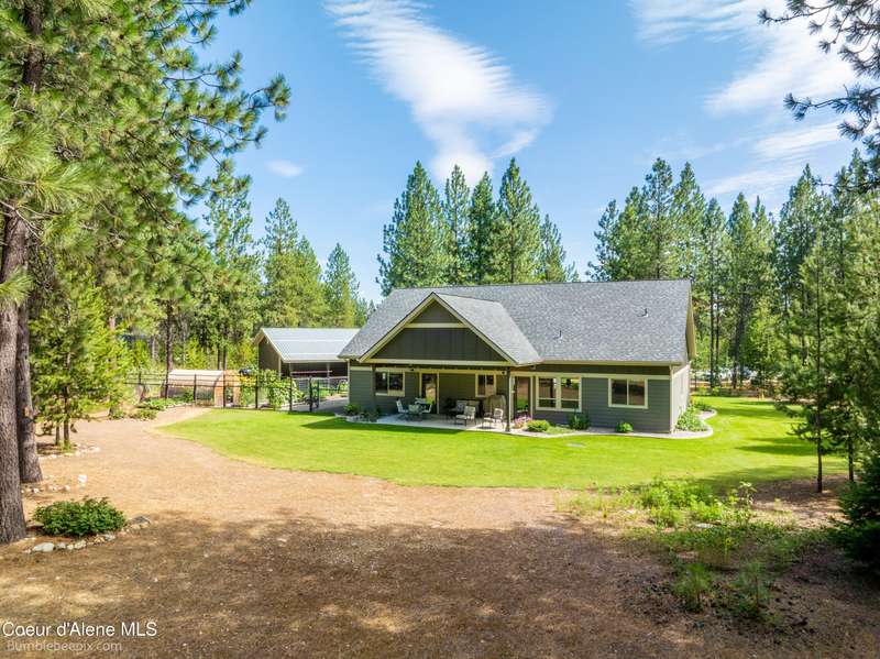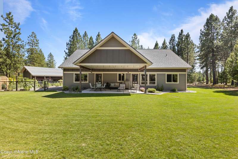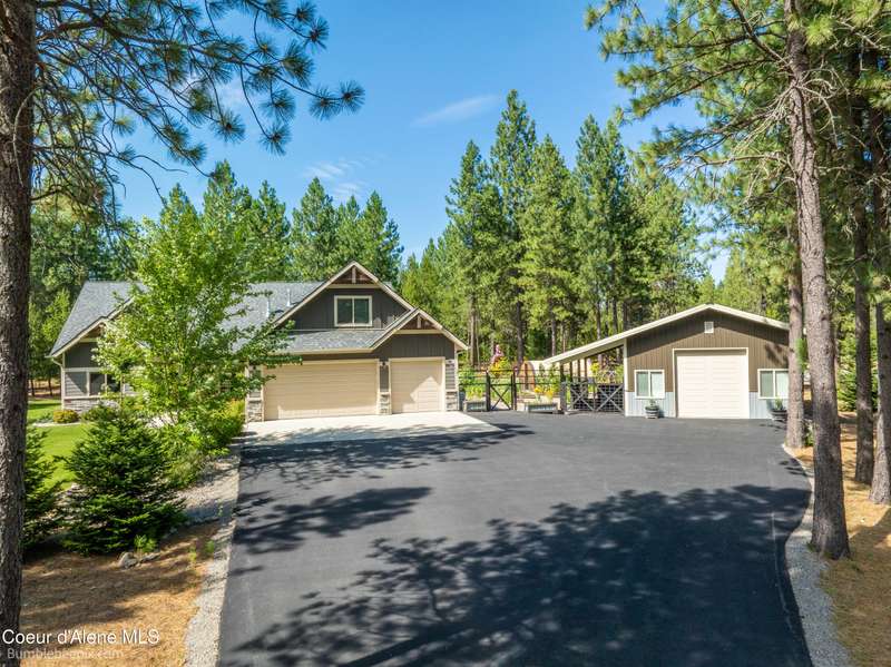Welcome to this beautifully maintained 3 bedroom, 2 bath craftsman-style home on 4.5 peaceful acres in Rathdrum. Built in 2019, this single-level home offers a perfect blend of modern comfort and serene country living. The interior features an open, functional layout with quality finishes throughout. Step outside to a spacious covered back patio—ideal for relaxing or entertaining—overlooking a nicely landscaped yard, garden area, and surrounding natural beauty. Enjoy abundant wildlife, a quiet setting, and room to roam. A 24x30 shop provides ample space for hobbies, storage, or your next project. This is North Idaho living at its finest—private, peaceful, and just the right touch of refined