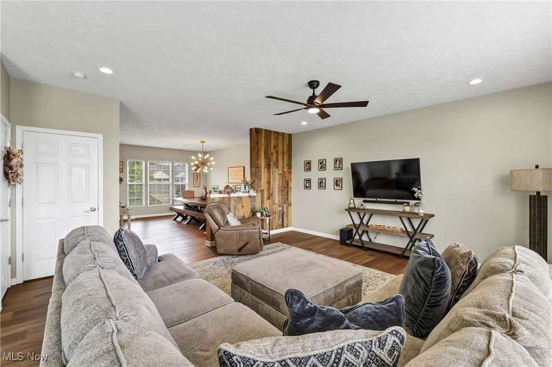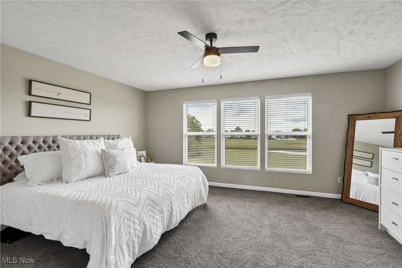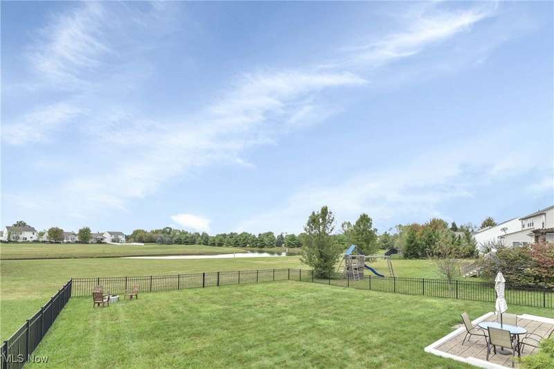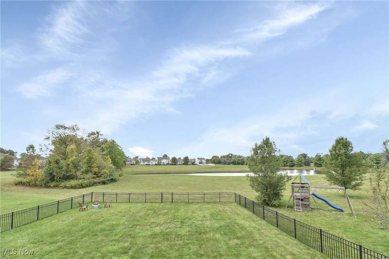 Welcome to this beautiful, move-in-ready home located in the popular Keswick neighborhood. The large, oversized stairwell, open floor plan, and high ceilings make the space feel even more spacious. Newer lighting has been installed in every room, featuring premium and recessed fixtures. The eat-in kitchen boasts an island and upgraded cabinets with crown molding, along with a new glass slider leading to the back patio. It includes all Samsung appliances: a dishwasher, refrigerator, gas range, and a new microwave. The second floor features a laundry room (washer and dryer included) and an exceptionally large master bedroom suite. This suite offers a separate bath and shower, dual sinks, and a large walk-in closet. Additionally, there are three more spacious bedrooms, each with walk-in closets. The finished basement is perfect for entertaining, equipped with a custom wood pallet wet bar, a third full bathroom, and a workout area, making it an ideal man cave retreat. There is plenty of extra storage space in both the garage and basement. Enjoy breathtaking views from the back patio, which overlooks a large backyard with direct access to the pond, providing opportunities for fishing and enjoying nature. The expansive outdoor space offers a perfect setting for relaxation and entertaining, highlighted by stunning sunsets each evening. Improvements include: Roof 23', Gutters 24', Kitchen Slider with built-in blinds 23', Main floor flooring 23', Carpet throughout 24', Master bedroom shower 24', Sump pump with battery backup 22'
