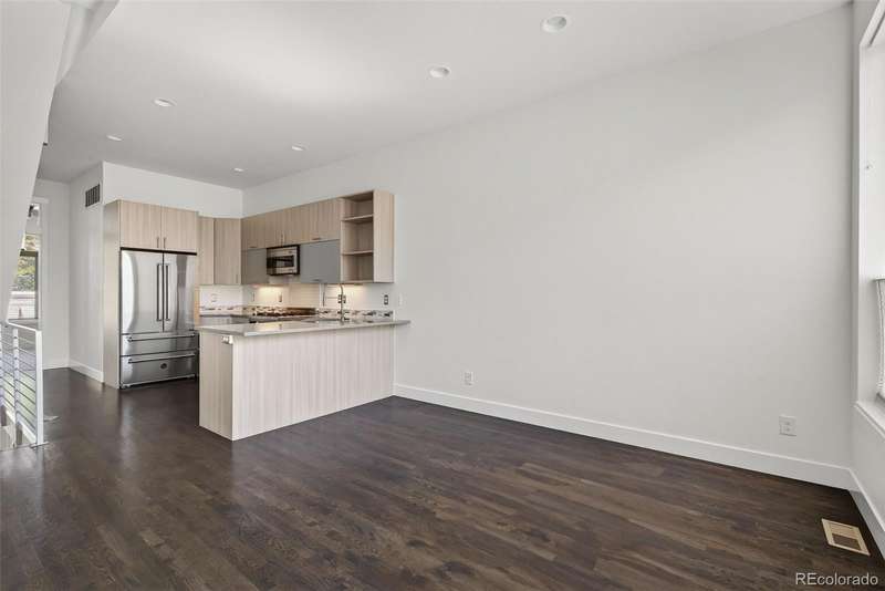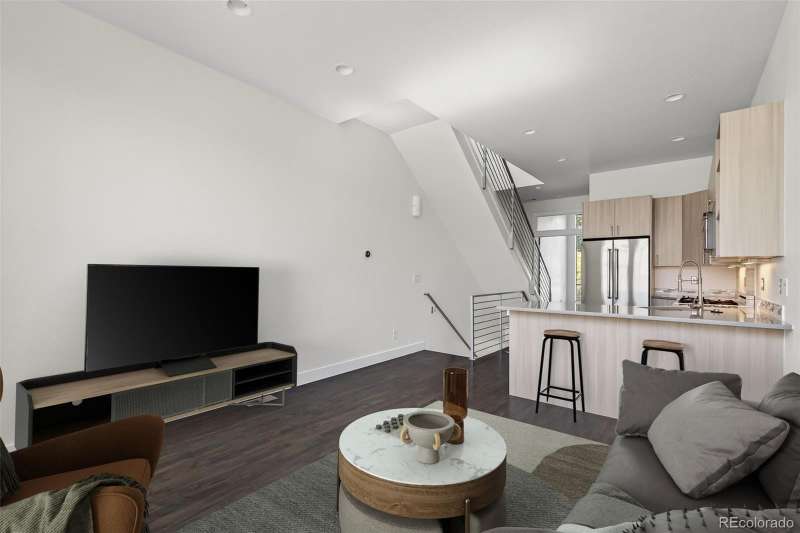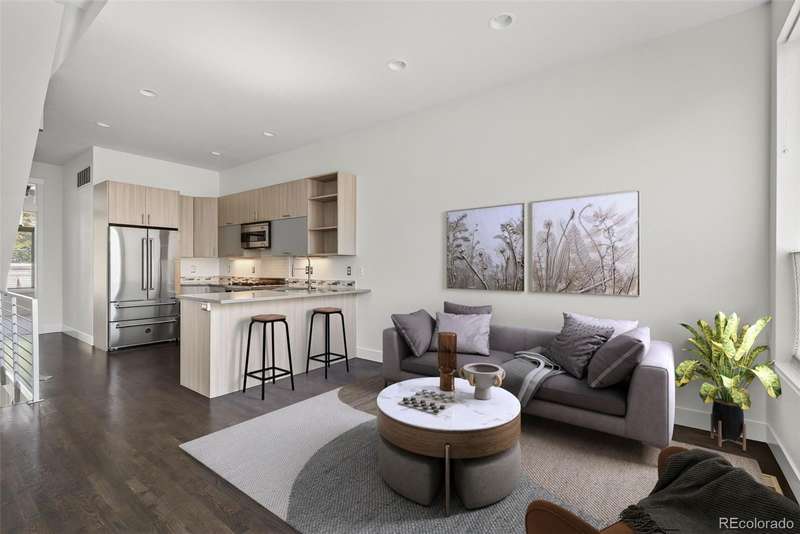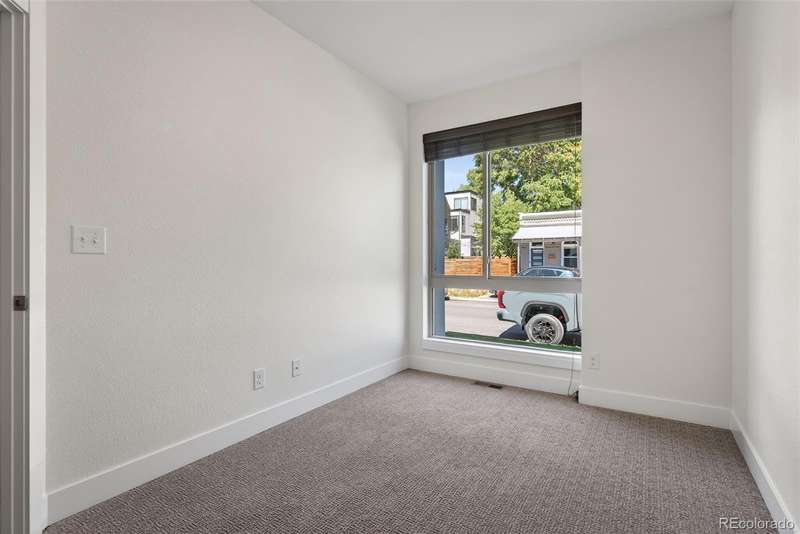 Fabulous contemporary row home in the heart of Lower Highlands! This stylish 2-bedroom, 2-bath residence offers a modern floor plan with exceptional finishes and a prime location. The entry level features a spacious bedroom or potential office, with walk-in closet, full laundry, a three-quarter bath, and convenient access to the attached 1-car garagean invaluable amenity in LoHi. The garage is oversized and includes a storage and access to crawlspace for additional storage. The upper level showcases an open-concept layout with hardwood flooring, expansive windows that flood the home with natural light, and a chefs kitchen complete with quartz countertops and premium Bertazzoni appliances. The primary suite includes dual closets and a private three-quarter bath. Retreat to the rooftop deck, ideal for entertaining or relaxing with panoramic views of the Denver skyline, complete with a gas hookup for grilling. Surrounded by dining, shopping, and entertainment, this home combines modern design, comfort, and unbeatable location. The seller has recently painted the entire home, refinished the hardwood floors, and replaced all of the carpet. No HOA - party wall agreement covers water, landscaping and snow removal. Average $100/month.