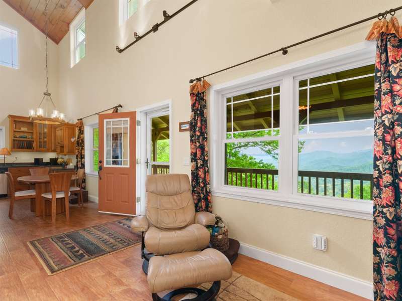 Nestled in the serene Hills of Cataloochee subdivision at over 3,500 feet elevation, this modern mountain cabin offers an unparalleled retreat in the heart of North Carolina's breathtaking mountains. Boasting three spacious bedrooms and three full bathrooms, the home features an open floor plan with soaring cathedral ceilings, creating a bright and airy ambiance perfect for both relaxation and entertaining. The expansive 8' x 38' covered front deck invites you to unwind while soaking in endless, year-round long range mountain views that stretch across the horizon. Designed for modern comfort, the cabin blends rustic charm with contemporary finishes, ensuring a cozy yet luxurious escape. Enjoy paved access for convenience and proximity to Cataloochee Ranch, skiing, and the scenic Blue Ridge Parkway, offering endless outdoor adventures. Short Term Rentals allowed.