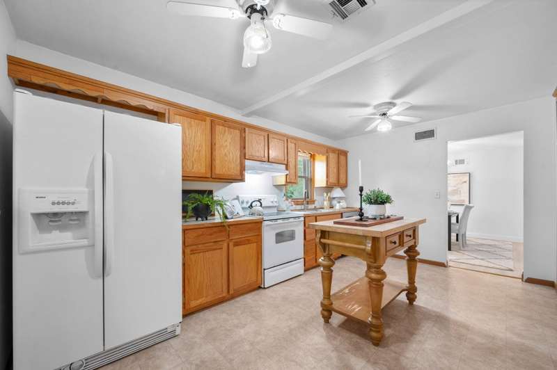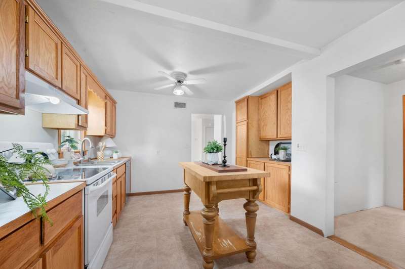 This charming brick ranch presents a rare opportunity to own a spacious, well-cared-for home on nearly half an acre in a quiet, established neighborhood. With 4 large bedrooms, 2 full bathrooms, and over 1,700 square feet of living space, this property offers both immediate comfort and long-term potential. Whether you're a first-time buyer, growing household, or savvy investor, this home delivers impressive value at an accessible price point. Inside, the home features a smart layout with a split bedroom plan, ideal for privacy and flexibility. The formal dining room offers space for family meals and gatherings, while the generously sized kitchen has been updated to include modern finishes, ample storage, and laminate countertops. A dedicated pantry and full suite of appliances, including a dishwasher and disposal, add to the home's practicality. The bedrooms are comfortably sized, and the primary suite includes a private bath with shower. All living areas are located on one level for ease of access, with carpeted floors throughout the living room and bedrooms, and durable vinyl in the kitchen. Main floor laundry and central electric HVAC provide day-to-day convenience, and ceiling fans help keep energy costs in check. The exterior of the property is equally impressive, with mature landscaping, and a backyard perfect for kids, pets, or entertaining. The oversized detached garage includes extra room for a workshop, storage, or additional parking. Situated in the Wichita School District with Pleasant Valley Elementary and Middle Schools nearby, and easy access to shopping, dining, and main roadways, this homes location adds to its appeal. With no HOA fees and low annual taxes, this is a standout opportunity to secure a solid home with room to personalize and grow. Move in as-is or update over time to build equity either way, youre getting a property with great bones in a highly livable area.