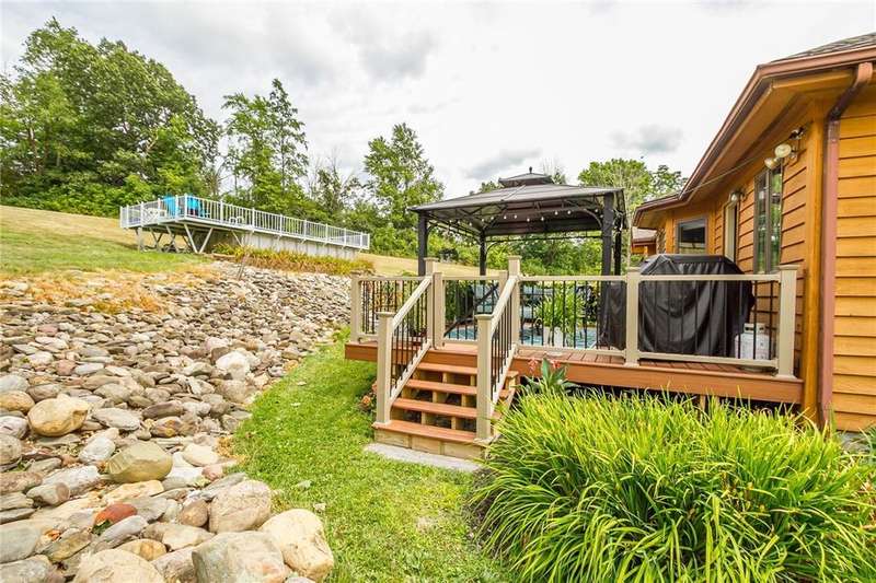 **THIS BEAUTIFUL HOME BLENDS MODERN COMFORT WITH NATURAL CHARM, OFFERING SPACIOUS LIVING AREAS AND STUNNING ELEVATED VIEWS WITH A SPRAWLING ALMOST 2 ACRES** INCREDIBLE FULL SIZE SPORT COURT FOR ALL OF THE SPORTS ENTHUSIASTS IS TO DIE FOR, OR FOR THE CAR ENTHUSIASTS COULD ALSO BE EASILY CONVERTED INTO GARAGE SPACE ACCOMODATING APPROXIMATELY 8-10 CARS!!!!** THE EXTERIOR FEATURES A WARM WOOD FINISH, GORGEOUS LUSH LANSCAPING AND IMPECCABLE STONEWORK SURROUNDS THE ENTIRE HOME**BACK DECK OVERLOOKS PARTIALLY FENCED YARD, POOL AND TOTAL PRIVACY* INTERIOR WELCOMES YOU WITH HIGH CEILINGS AND OPEN- CONCEPT LAYOUT* PLENTY OF NATURAL LIGHT* KITCHEN IS DESIGNED FOR BOTH FUNCTION AND STYLE, AMPLE COUNTER AND COOKING SPACE IDEAL FOR ENTERTAINING, BEAUTIFUL HARDWOODS AND DOUBLE SIDED FIREPLACE * OFFICE/DEN, AND OVERSIZED BEDROOMS* PRIMARY SUITE INCLUDES DOUBLE VANITY AND JACUZZI TUB* THIS HOME HAS IT ALL, AND IS THE PERFECT CHOICE FOR ANYONE SEEKING A PEACEFUL RETREAT WITHOUT SACRIFICING MODERN CONVENIENCES*TRULY BREATHTAKING, WITH VIEWS FOR DAYS, THIS IS NOT ONLY A DREAM HOME BUT AN ENTIRE LIFESTYLE*