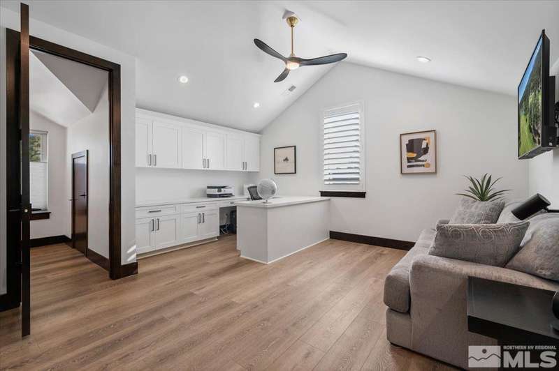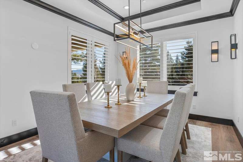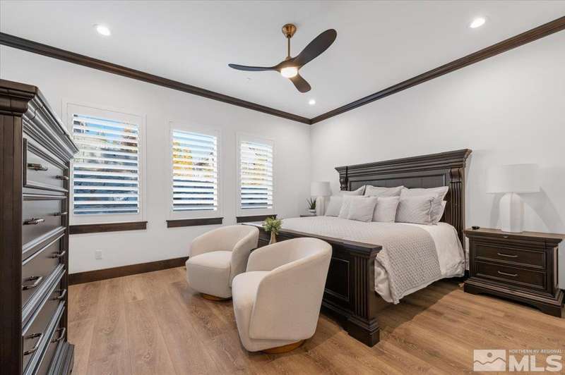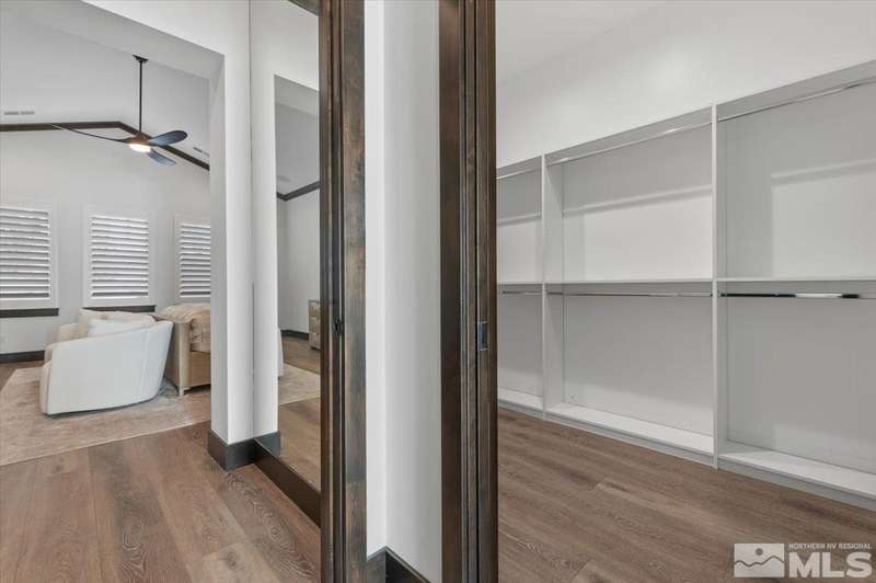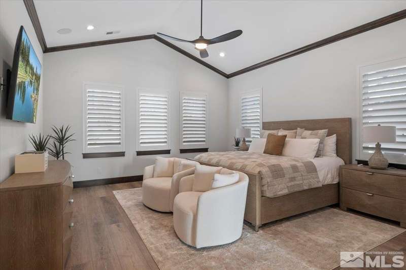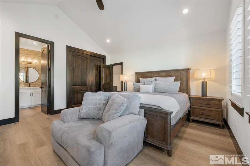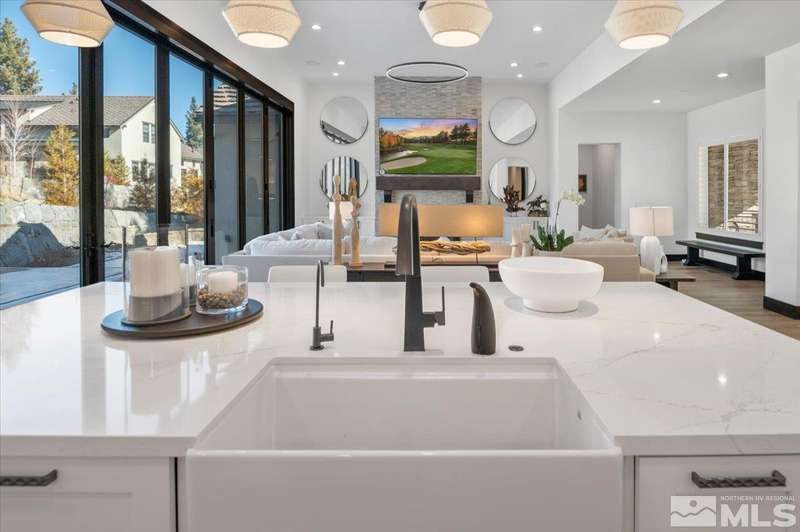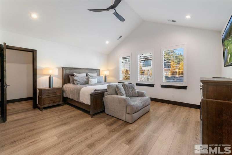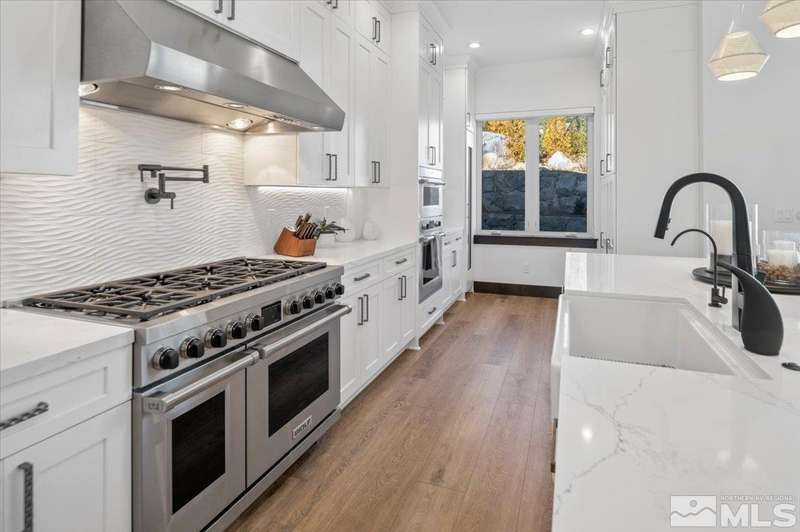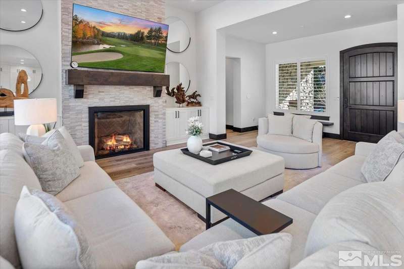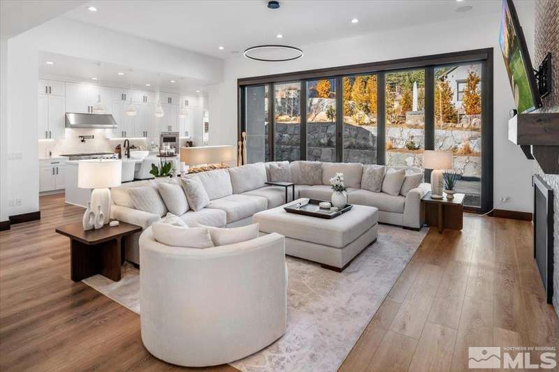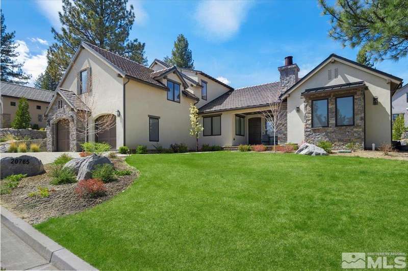 Built in just 2022, this meticulous modern Montreux stunner showcases nearly $700K in the finest upgrades. High-end finishes include an innovative folding glass wall, upscale Wolf, Sub-Zero, & Bosch appliances, Knotty Alder doors and custom millwork, steam shower, automated Hunter Douglas blinds, outdoor fireplace w/ heaters, epoxy garage floors, and so much more. Primary on main level. Quiet cul-de-sac setting amongst the tall pines. Shows like a Model!, One of Parc Foret’s most popular floor plans, this home features an Open-Concept Kitchen/Great Room, Formal Dining, Primary Suite, Guest Suite, Powder Bath, and Laundry/Mud Room all on the main level. Two additional Guest Suites (one with impressive desk built-ins) and large Bonus Room reside upstairs. The storage overflow is unbelievable; perfect for traditional storage or creative flex space. The highly-upgraded Kitchen is a culinary dream, with a built-in Sub-Zero refrigerator, Bosch dishwasher and trash compactor, plus a Wolf 8-burner range with two ovens and pot filler, and a separate Wolf wall oven, built-in microwave, and warming drawer. Exceptional custom cabinetry with pull-out, soft-close drawers. Adjacent Pantry area provides significant storage, plus a Sub-Zero wine fridge. The Primary Suite offers dual walk-in closets, steam shower, and jetted tub. The spacious 3-car tandem garage is outfitted with epoxy flooring, a Modine heater, and sink station. Upgraded home systems include security & sound, keyless entry, two tankless water heaters, water softener and filtration, and 3-zone HVAC for ultimate efficiency. Located in prestigious Montreux Golf & Country Club, this 24/7 manned-gated luxury community surrounds an 18-hole, Jack Nicklaus Signature Championship Course (Par 72), with world-class Clubhouse amenities. This home on 20765 Parc Foret Court is near miles of nature trails along Galena Creek, and is just 20 minutes to both the Mt. Rose Ski Resort and Reno-Tahoe International Airport, and a short 30-minute drive to beautiful Lake Tahoe.