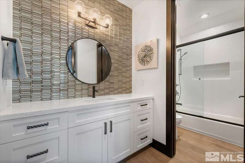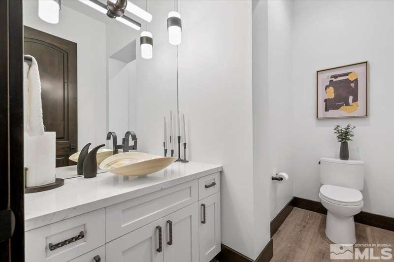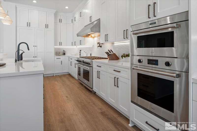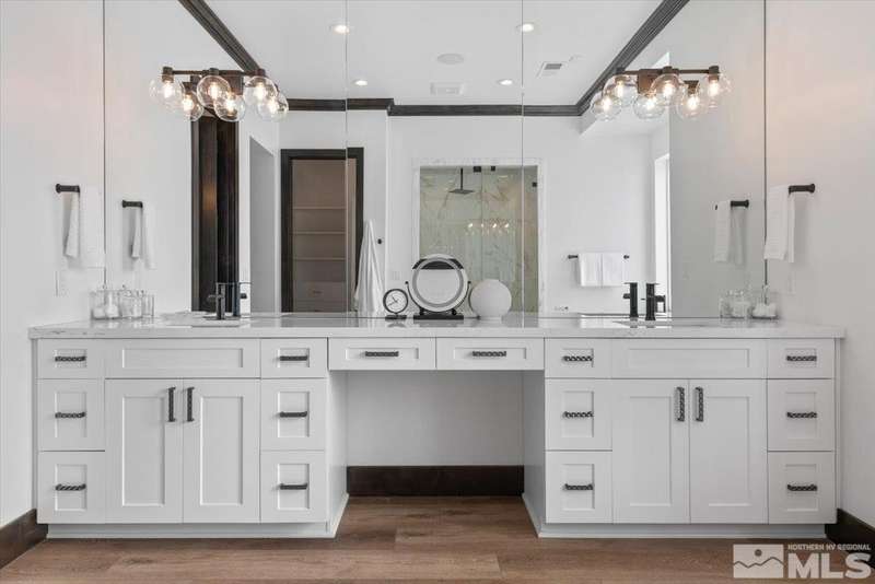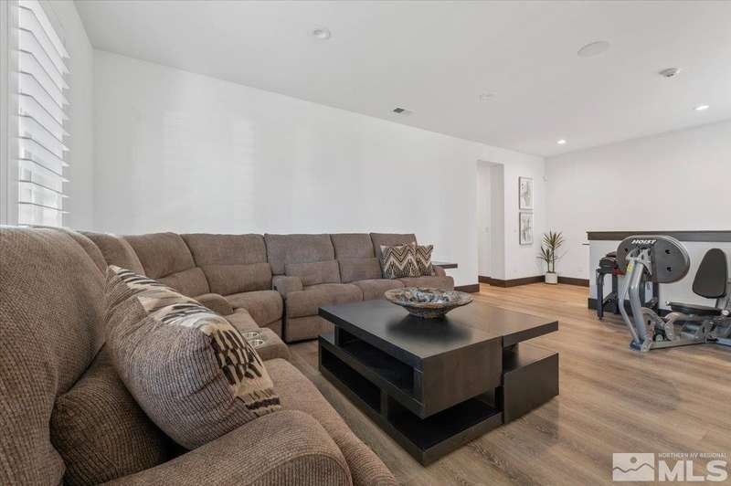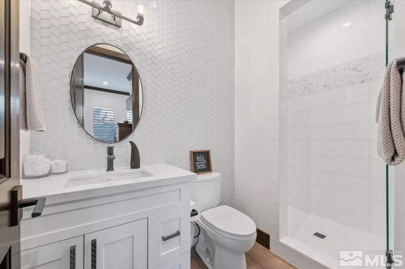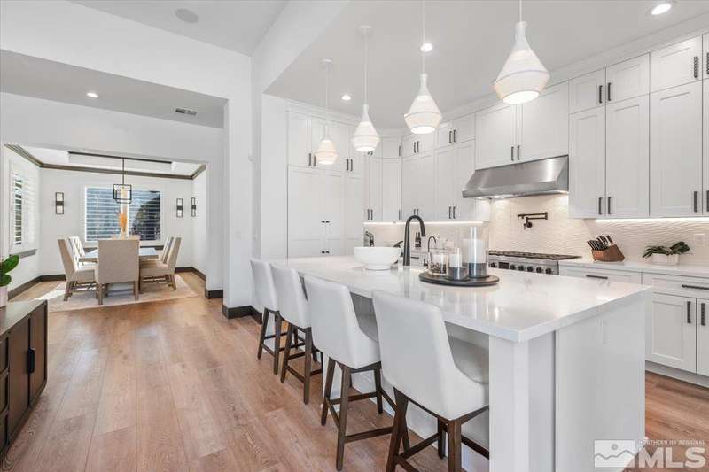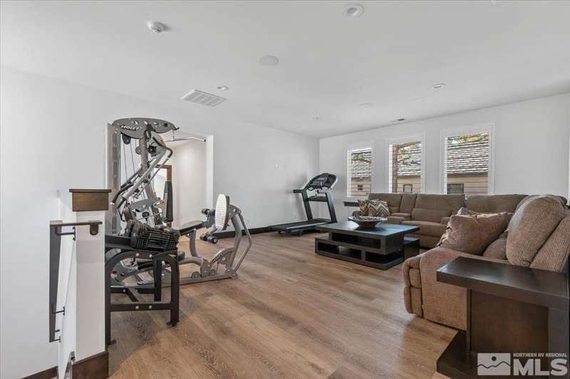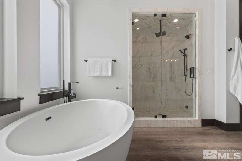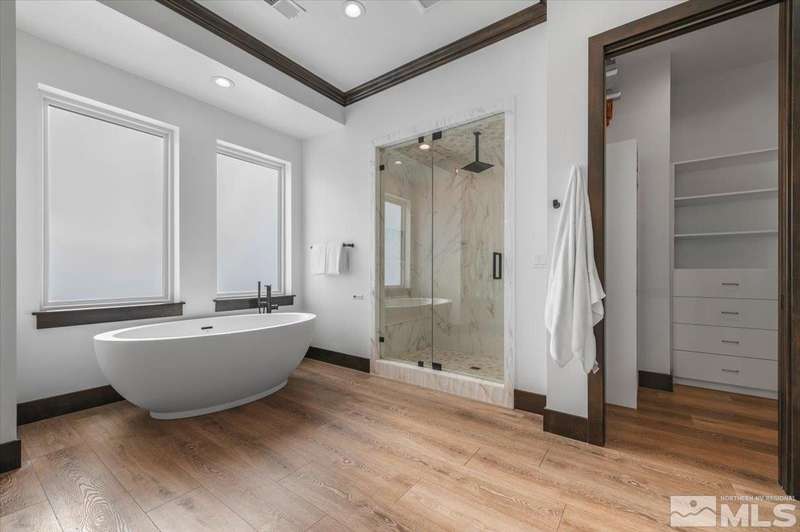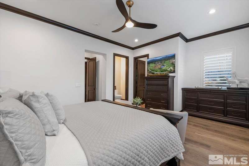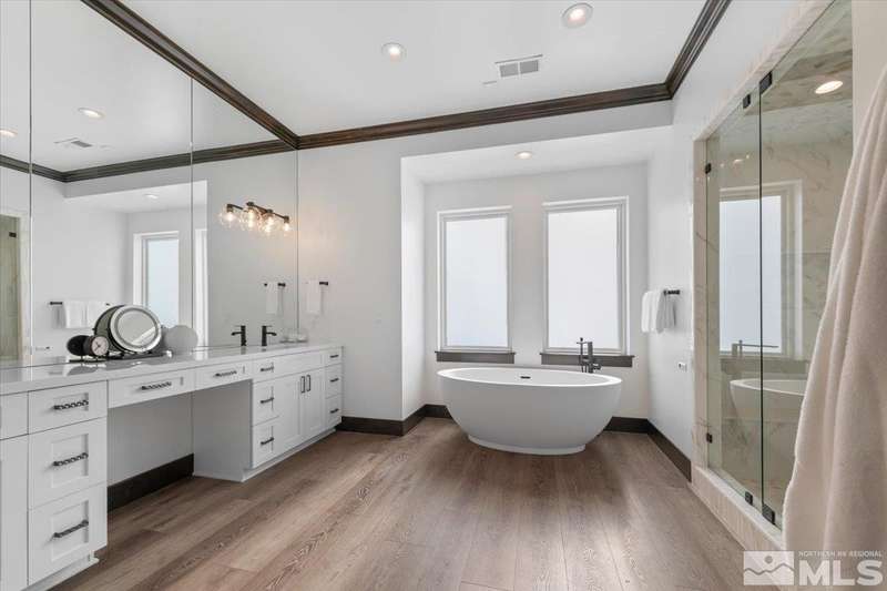 Built in just 2022, this meticulous modern Montreux stunner showcases nearly $700K in the finest upgrades. High-end finishes include an innovative folding glass wall, upscale Wolf, Sub-Zero, & Bosch appliances, Knotty Alder doors and custom millwork, steam shower, automated Hunter Douglas blinds, outdoor fireplace w/ heaters, epoxy garage floors, and so much more. Primary on main level. Quiet cul-de-sac setting amongst the tall pines. Shows like a Model!, One of Parc Foret’s most popular floor plans, this home features an Open-Concept Kitchen/Great Room, Formal Dining, Primary Suite, Guest Suite, Powder Bath, and Laundry/Mud Room all on the main level. Two additional Guest Suites (one with impressive desk built-ins) and large Bonus Room reside upstairs. The storage overflow is unbelievable; perfect for traditional storage or creative flex space. The highly-upgraded Kitchen is a culinary dream, with a built-in Sub-Zero refrigerator, Bosch dishwasher and trash compactor, plus a Wolf 8-burner range with two ovens and pot filler, and a separate Wolf wall oven, built-in microwave, and warming drawer. Exceptional custom cabinetry with pull-out, soft-close drawers. Adjacent Pantry area provides significant storage, plus a Sub-Zero wine fridge. The Primary Suite offers dual walk-in closets, steam shower, and jetted tub. The spacious 3-car tandem garage is outfitted with epoxy flooring, a Modine heater, and sink station. Upgraded home systems include security & sound, keyless entry, two tankless water heaters, water softener and filtration, and 3-zone HVAC for ultimate efficiency. Located in prestigious Montreux Golf & Country Club, this 24/7 manned-gated luxury community surrounds an 18-hole, Jack Nicklaus Signature Championship Course (Par 72), with world-class Clubhouse amenities. This home on 20765 Parc Foret Court is near miles of nature trails along Galena Creek, and is just 20 minutes to both the Mt. Rose Ski Resort and Reno-Tahoe International Airport, and a short 30-minute drive to beautiful Lake Tahoe.